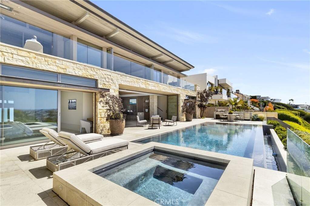 This unparalleled custom residence in the sought-after enclave of Irvine Terrace delivers the pinnacle of contemporary coastal luxury, commanding front-row views of Newport Harbor, Balboa Island, the Pacific Ocean, and Catalina Island. The inspiring design reflects the talents of architect Carlton Graham, alongside the craftsmanship of Steve Davidson Construction and Tom Waters. Natural elements that echo the home's extraordinary setting are seamlessly incorporated throughout the two-level floorplan, encompassing four en suite bedrooms, a total of five full bathrooms, two half bathrooms, and approximately 6,232 square feet of living space. The main level is defined by striking architectural presence, with walls of floor-to-ceiling glass and disappearing doors framing a cinematic harbor panorama animated by passing yachts, fiery sunsets, and shimmering evening reflections across the water. A sophisticated great room with a fireplace and adjoining dining room, seamlessly transitions to a showpiece kitchen appointed with an island, premium appliances, white oak ceilings, and limestone floors and wall accents. The luxe primary suite, privately situated on the main level, is replete with a heated view deck spanning the width of the home and a built-in BBQ bar. The lower level features a dramatic lounge and media room with a full wet bar, a glass-enclosed office, and a temperature-controlled wine cellar with a full-size beverage refrigerator. Accordion doors lead to a terrace boasting an infinity-edge pool, elevated spa, and an outdoor kitchen with a professional-grade grill. With an extraordinary coastal setting and seamless indoor-outdoor design, the home reflects the finest elements of Corona del Mar living in Irvine Terrace, moments from Fashion Island's world-class retail and dining, Newport Beach Country Club, and the Newport Harbor Yacht Club.