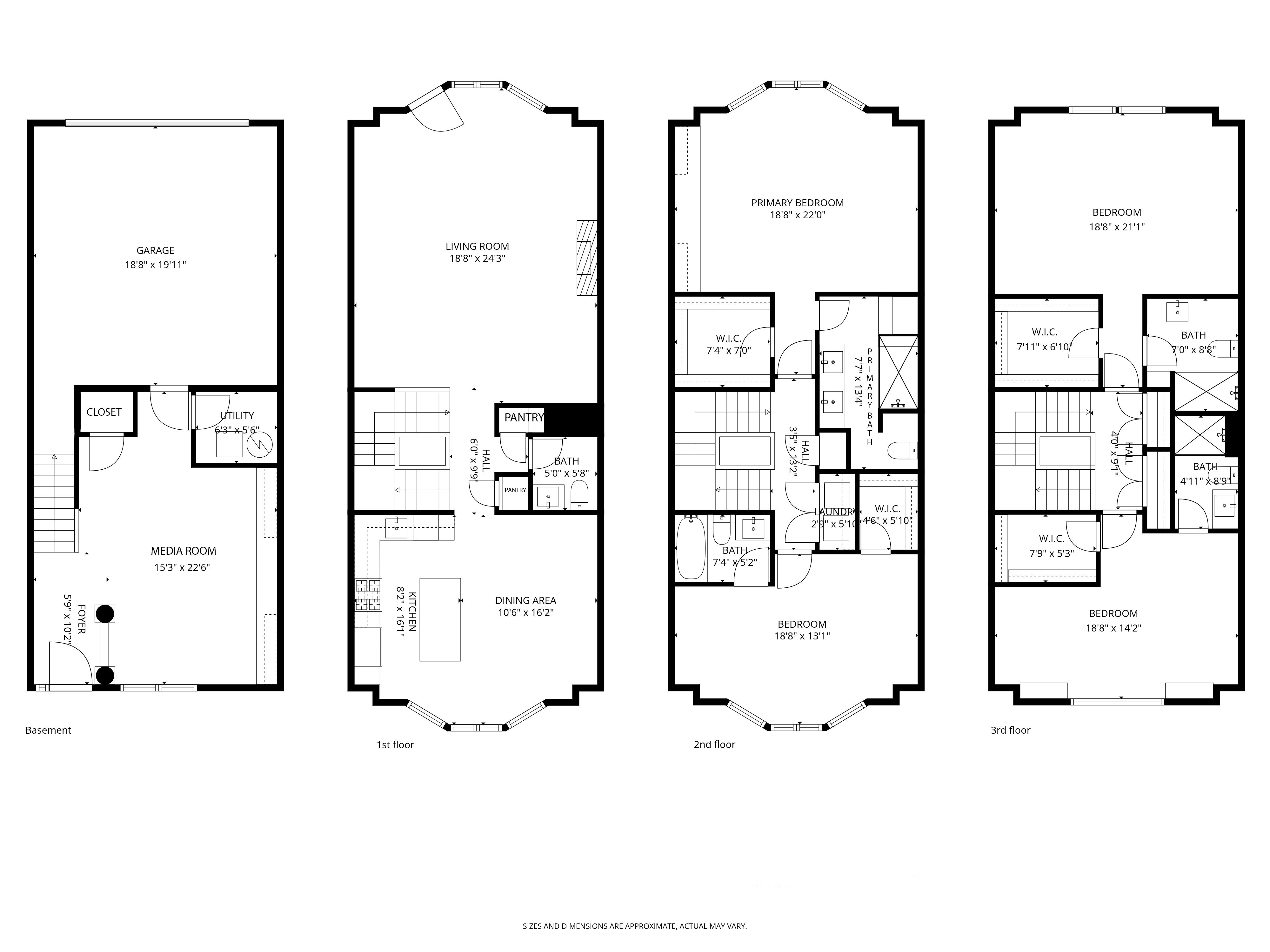 pantries and a powder room with basalt tile floor complete the level. The third level features the