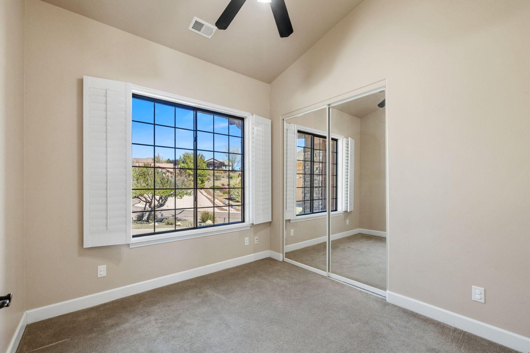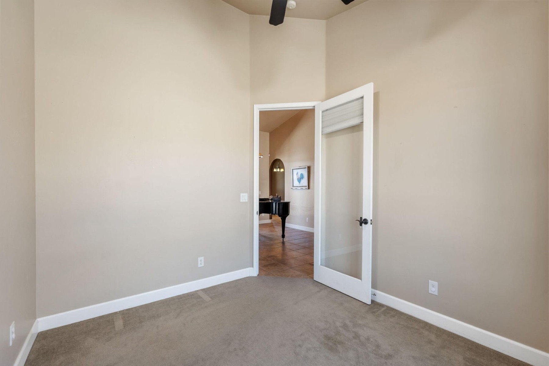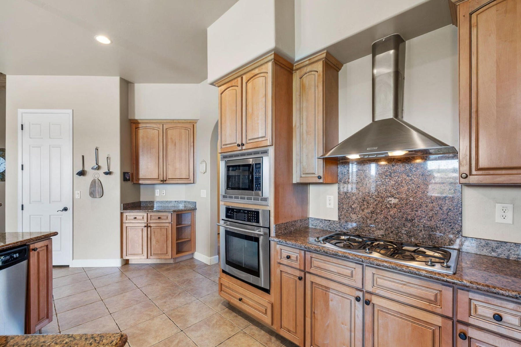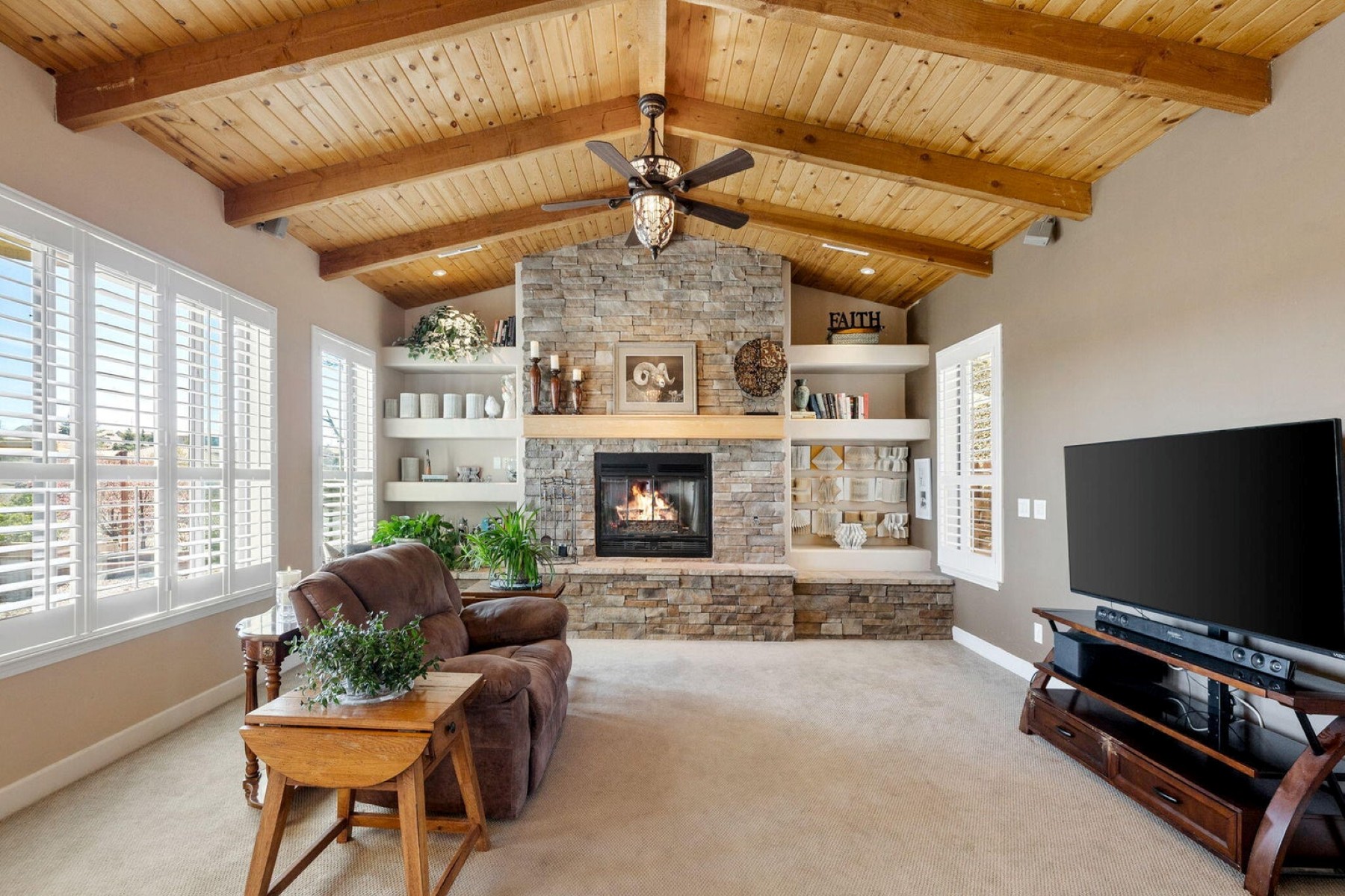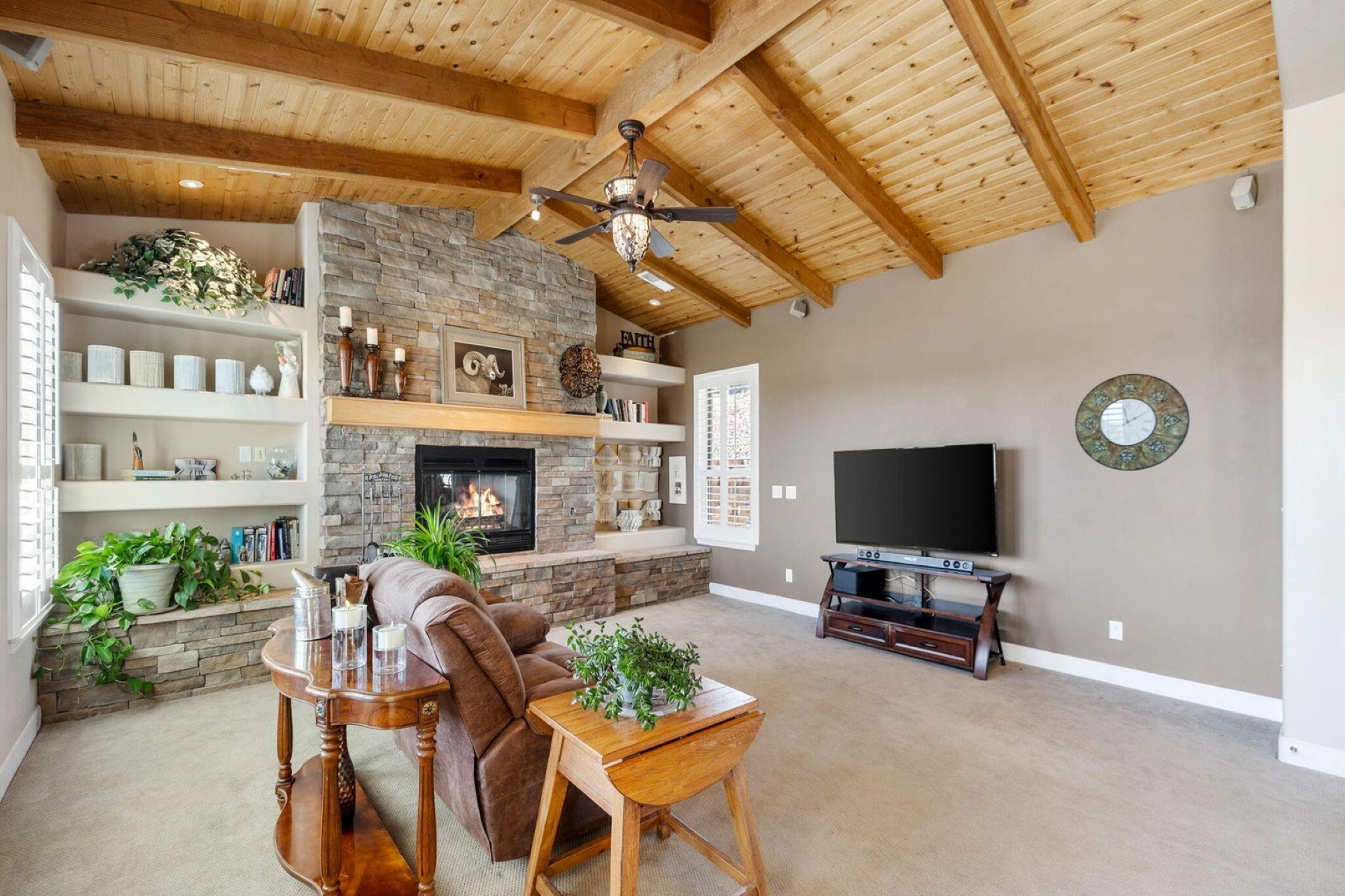 Positioned at the end of a quiet cul de sac in the established Pinon Oaks area this custom Prescott residence sits on an expansive .71 acre homesite offering privacy space & sweeping mountain and sky views. A circular driveway creates an elegant arrival leading to an oversized three car garage & welcoming entry. Step inside to a spacious foyer that opens into a dedicated music reception library room with French doors leading to a covered patio perfect for sunset views. Tiffany lighting adds character throughout while arched passages guide you into the great room featuring a tongue and groove pine ceiling with exposed beams & a framed stone gas fireplace with built in shelving. The open kitchen offers granite countertops Jenn Aire appliances including a gas cooktop wall oven & convection microwave a walk in pantry & an expansive island with seating for seven that flows into the breakfast nook & great room. A formal dining room provides additional space for gatherings. The primary suite is generously sized with room for full furnishings & features an ensuite bath with garden tub separate shower dual vanities & dual walk in closets. Two guest bedrooms share a Jack & Jill bath with one offering a walk in closet. The backyard offers covered patio spaces for sunset viewing, turf, & mature landscaping for easy outdoor living with plenty of producing fruit trees. There is easy access from Pinon Oaks to Hwy's 69 & 89 for an easy drive to Phoenix or Flagstaff.