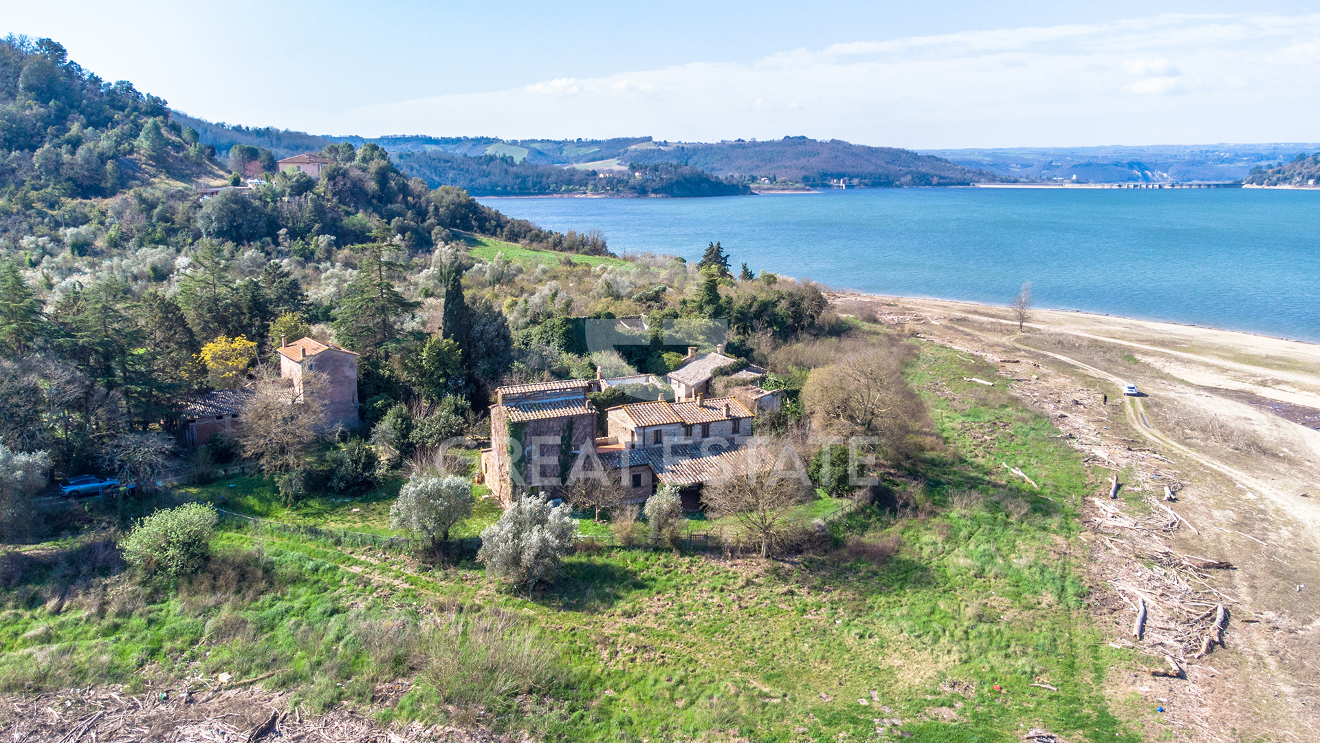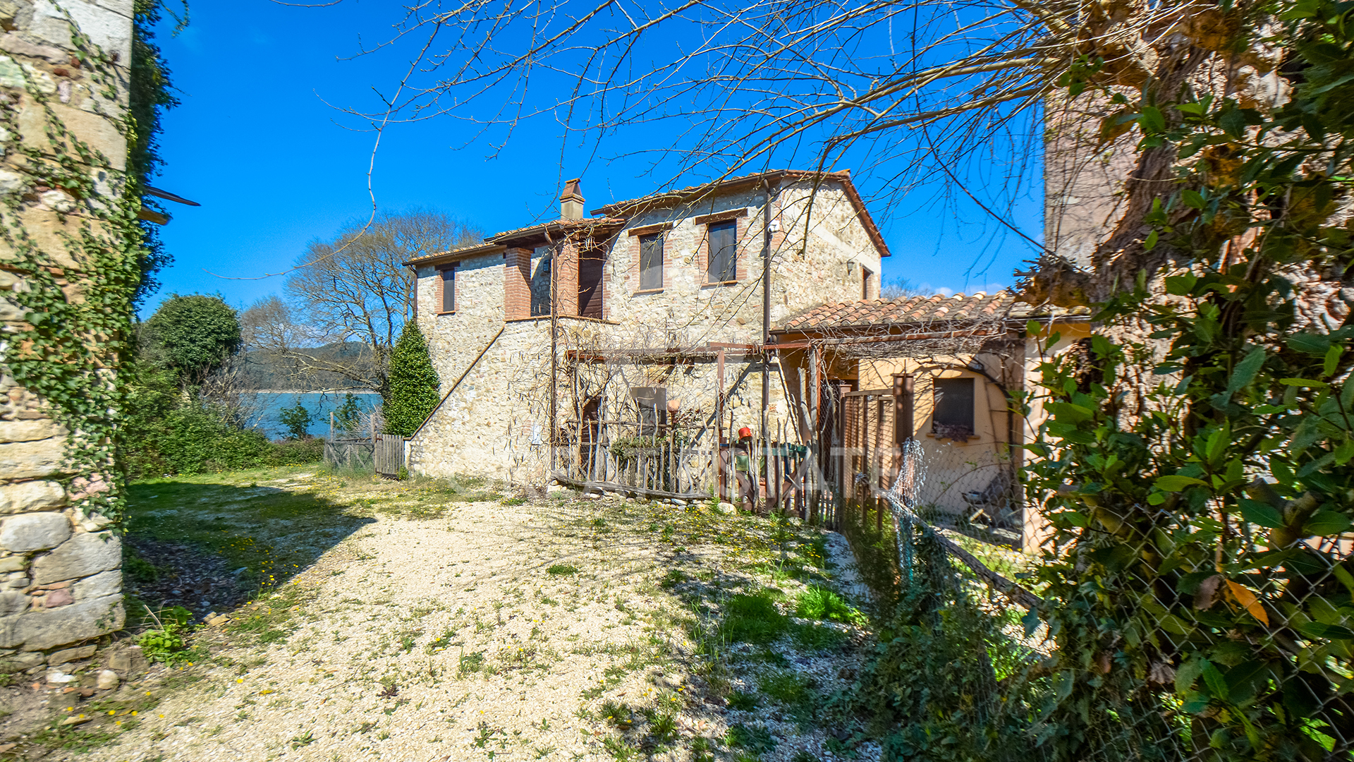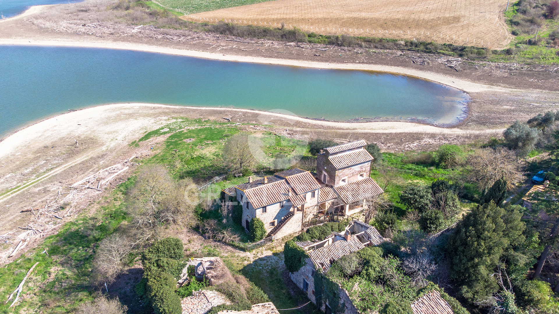 This charming farmhouse was created from the restoration of an ancient tobacco drying house, brought back to life through a complete renovation carried out approximately one year ago. The restoration was executed with great care, using high-quality materials and respectfully preserving the original soul of the building. Today, the property presents itself as an elegant and authentic residence, perfectly set within a natural setting of extraordinary beauty, boasting a privileged view over Lake Corbara.The location offers a truly evocative atmosphere: here, the silence of nature, the light reflecting off the lake, and the surrounding landscape create a rare balance, where the charm of tradition meets the comfort of contemporary living.The property is arranged over two levels with a total surface area of approximately 287 sq m and is designed in such a way that it could potentially be divided into two independent residential units. Outside, a magnificent panoramic portico overlooking the lake provides the ideal space for relaxing outdoors and enjoying the tranquility of the landscape.On the ground floor, an inviting entrance leads to a spacious eat-in kitchen, a bright living room enhanced by a fireplace, and a bathroom. Upstairs, a charming sitting room introduces the sleeping area, which comprises three large bedrooms and two bathrooms.An architectural feature of great charm is the striking glass conservatory, perfectly integrated into the style of the farmhouse, which connects the other wing of the residence. From here, a staircase leads back down to the ground floor, where there is a small living room and a versatile room suitable for various uses. On the upper floor of the same wing, there is an eat-in kitchen, a master bedroom, a bathroom, and a splendid panoramic terrace with views over the lake.Each space has been thoughtfully designed with sensitivity, enhancing the history of the building and its original features. The result is a refined and welcoming home, ideal for those wishing to live immersed in nature within an exclusive setting, without sacrificing comfort, charm, and privacy.