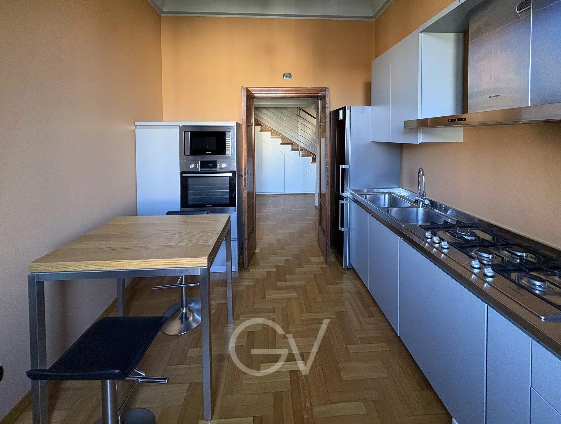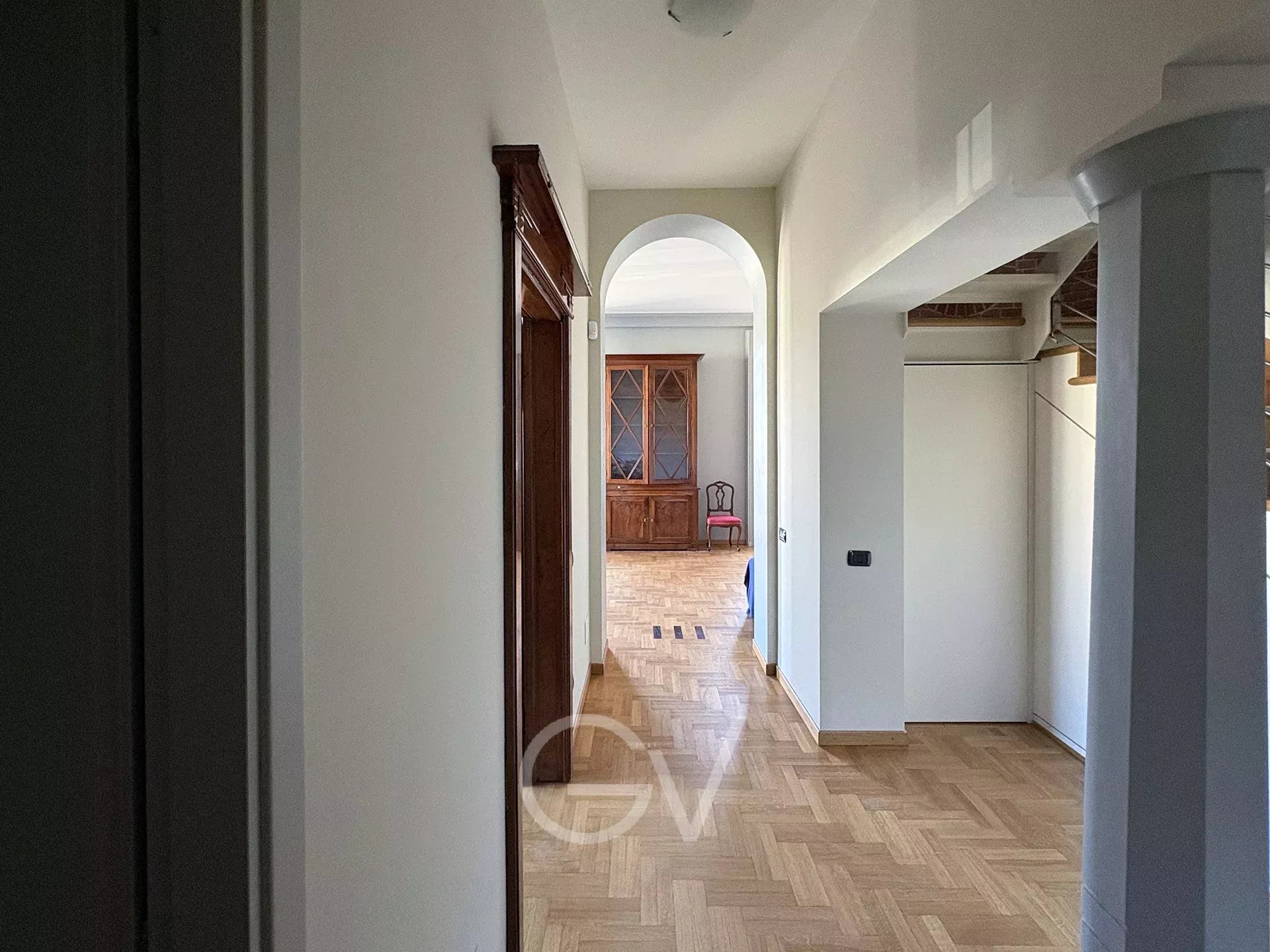 gvr1721 - Via XX Settembre, apartment - Dwelling on two levels in an elegant period villa a few steps from Castello Sforzesco. In one of the most elegant and residential areas of Milan, inside a period of great architectural charm, it develops a dwelling into two levels on the 2ndand 3rd floor. The angular position of the building and the presence of open overlooks contributes to create airy and pleasant environments. The 120sqm apartment is organized into two levels linked by a large internal staircase. The second floor welcomes the living area. The entrance leads to a wide living room characterized by high ceilings, a romantic chimney, parquet floors and two balconies overlooking the street. Continuing you find the functional and separated kitchen and a windowed bathroom. The internal staircase leads to the upper floor, where it develops the night area. Here the rooms take on the more intimate character typical of the top level, with sloping ceilings and exposed beams that give personality to the spaces. There are two bedrooms and a second windowed bathroom with a tub / shower. The apartment is delivered furnished with the kitchen and, on request, the furnishing of the photos. Autonomous heating and centralized cooling with condominium chiller. The internal parking space inside the building is located on the basement with a car lift platform. The building is an elegant period villa well-kept, characterized by a façade rich of decorative elements and an architectural presence of great representance. The common parts are well maintained, and the building has a lift. XX Settembre Street is the most prestigious in the historic Magenta district, a short distance from Cadorna and the Sforza Castle, one of the most elegant and institutional residential areas of the city, characterized by prestigious period buildings and an orderly and well-served urban context. A few steps away from Sempione Park and Arco della Pace including several restaurants, shops and services. Walking distance from Cadorna Station and the subway lines M1 and M2 that link to Malpensa Airport including several tram and bus lines. Energetic class E – IPE 196,35 kWh/m²a. € 65.000 annual rental fee - € 5.000,00 internal parking spot - € 2.000,00 condominium fees. The choice of this property helps to support the mission of Theodora onlus. Photos, texts, floor plans, etc., are purely for indicative-illustrative purposes and do not constitute documents with contractual value and assumption. Giorgio Viganò Real Estate - 027636151 - www.giorgiovigano.com