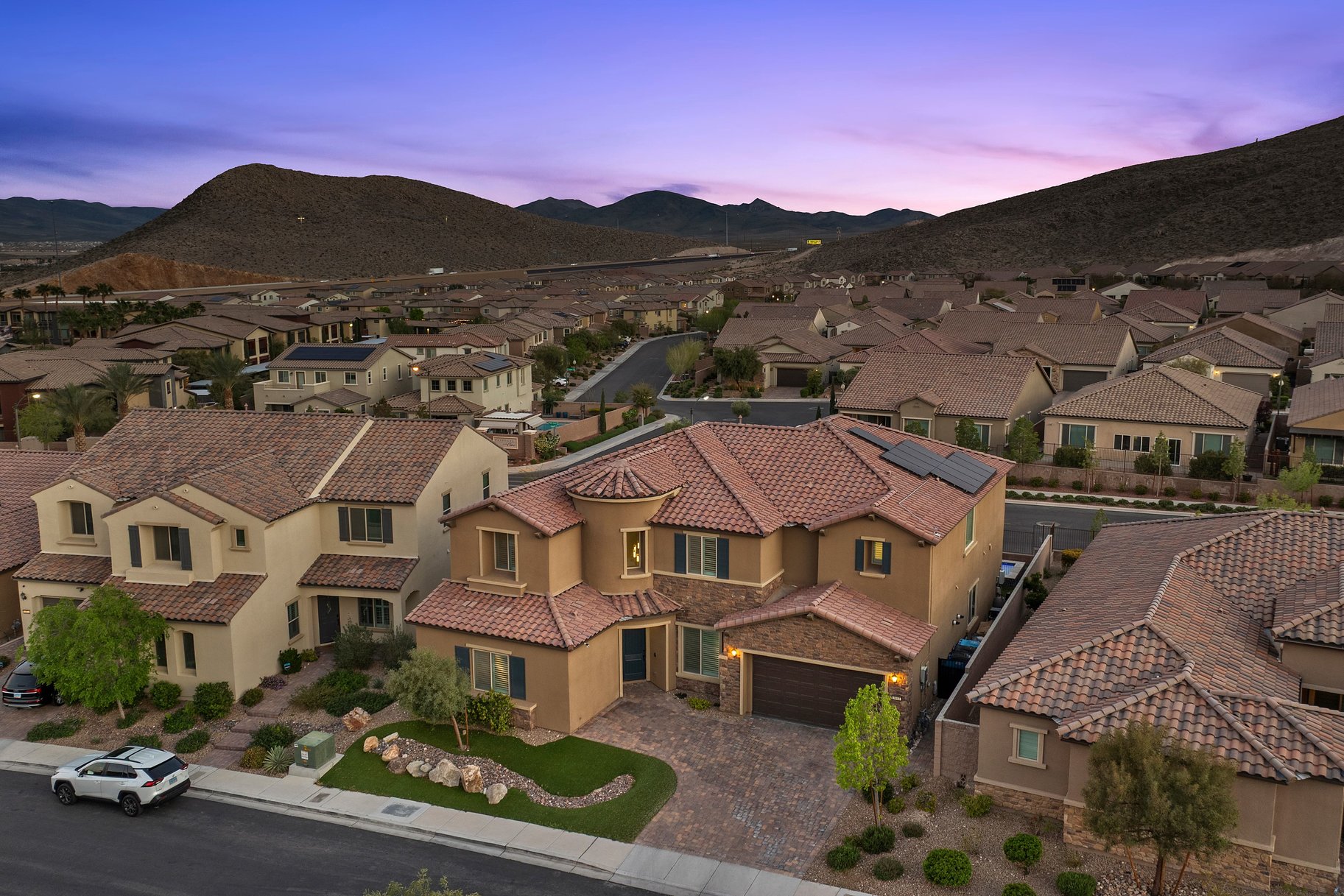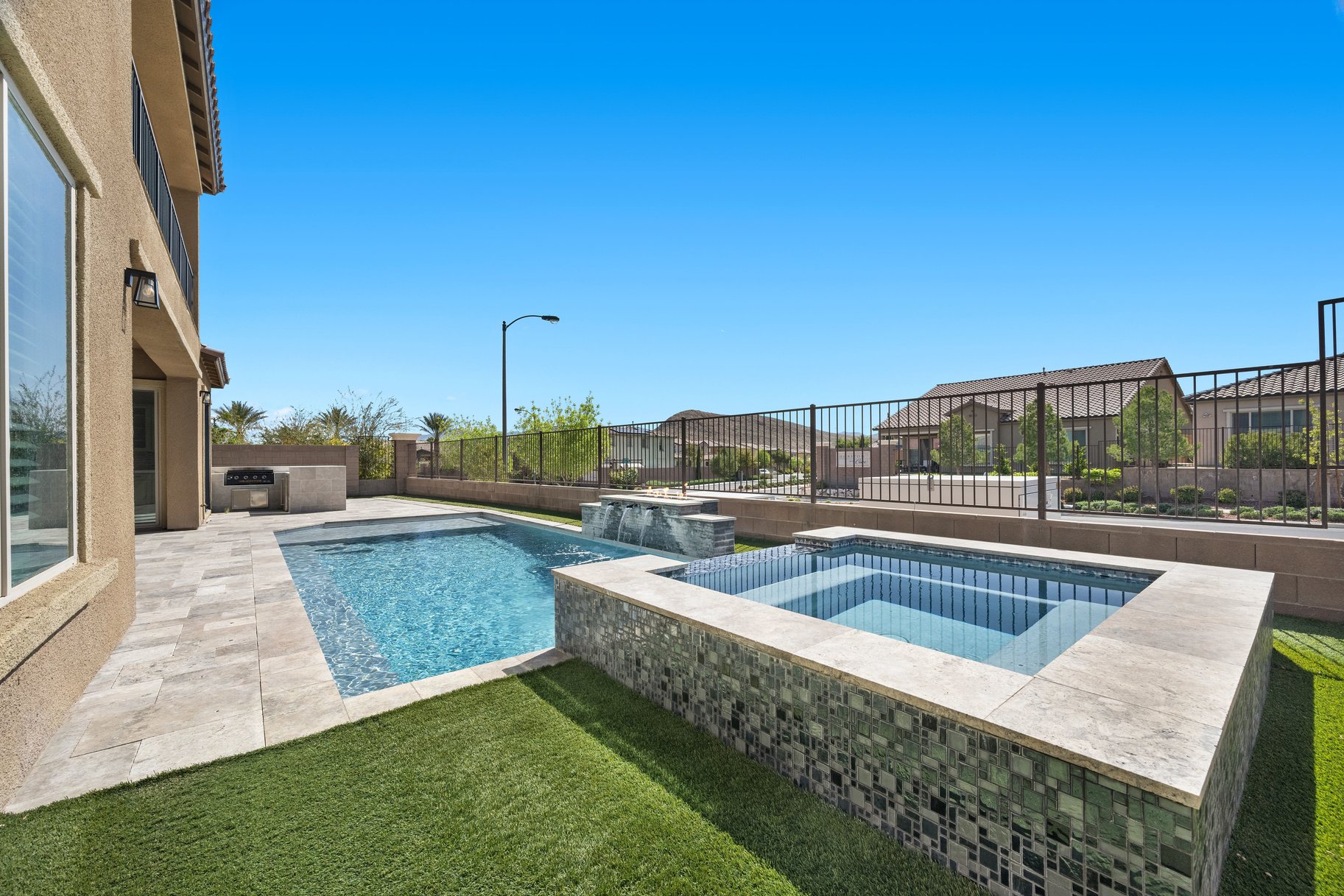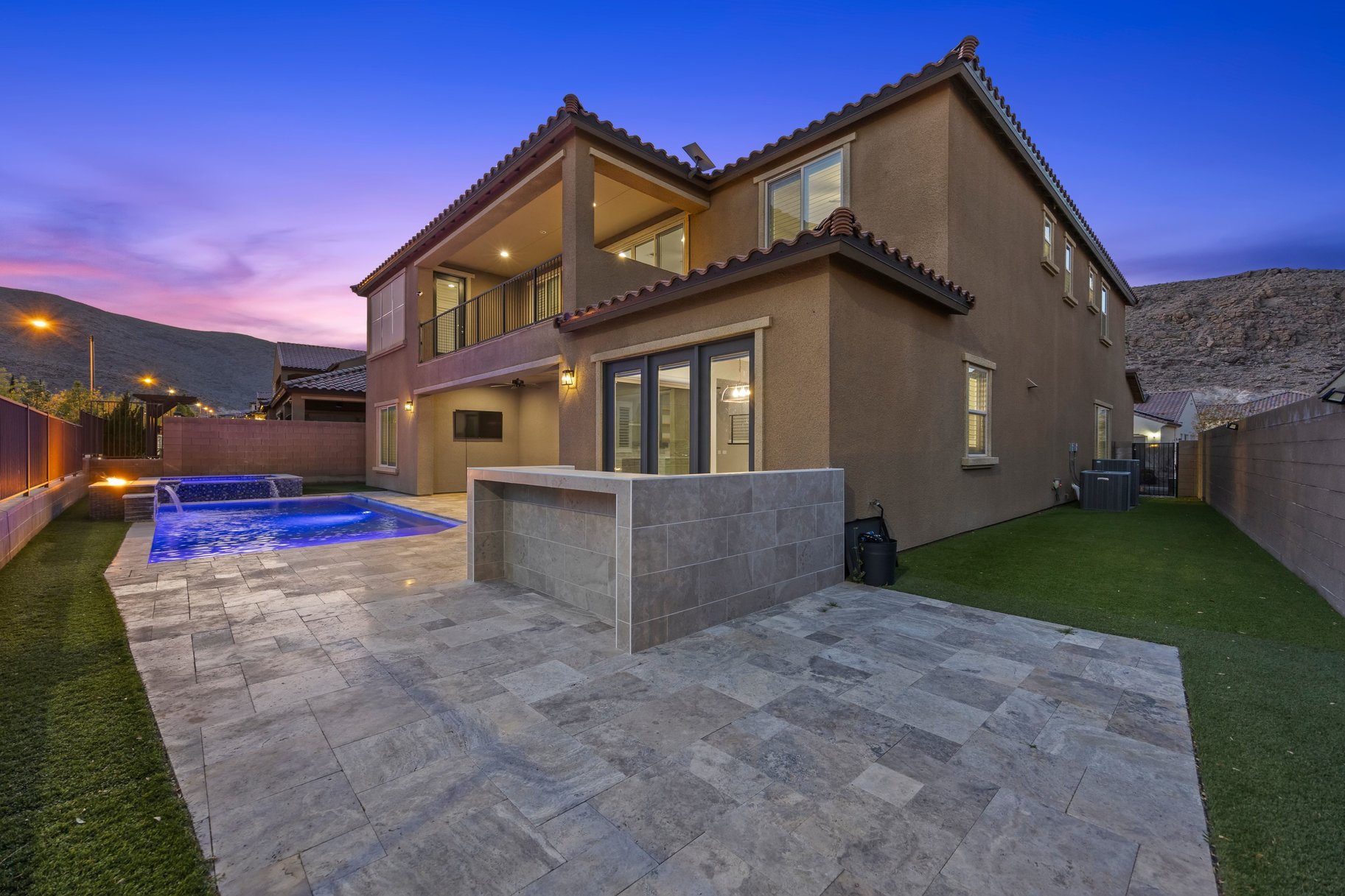 Situated in the gated community of The Cove in Southern Highlands, this beautifully upgraded residence offers 6 bedrooms, 7 bathrooms, and 4,960 sq ft of elevated living with a sense of privacy and quiet throughout. Designed for both comfort and entertaining, the home features over $180K in enhancements, including a resort-style Acquabella saltwater pool with travertine and turf, outdoor kitchen, updated cabinetry and countertops, butcher block island, custom built-ins, and butler’s pantry shelving. Additional upgrades include owned solar, water softener with reverse osmosis, and epoxy garage flooring. Ideally located minutes from I-15, Southern Highlands Pkwy, and St. Rose Pkwy, with convenient access to the Strip, airport, shopping, and dining. Residents enjoy community parks and pool, completing a lifestyle defined by comfort, convenience, and serene living.