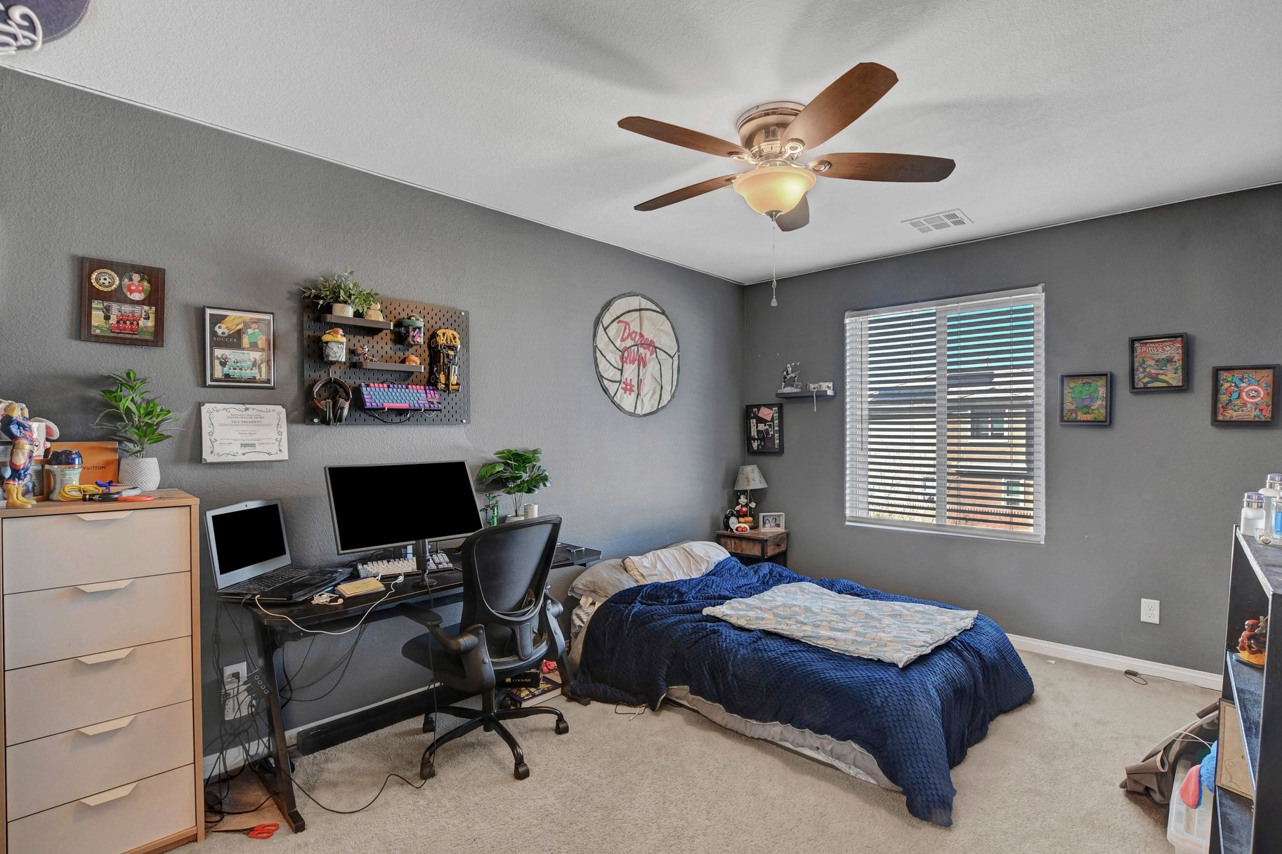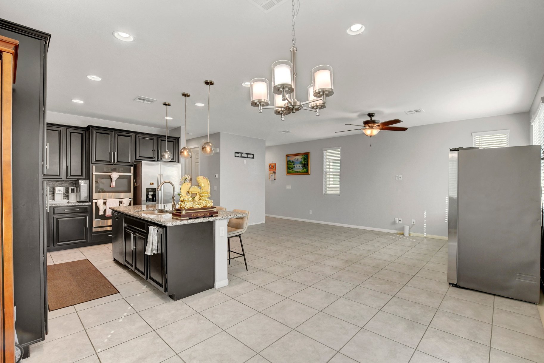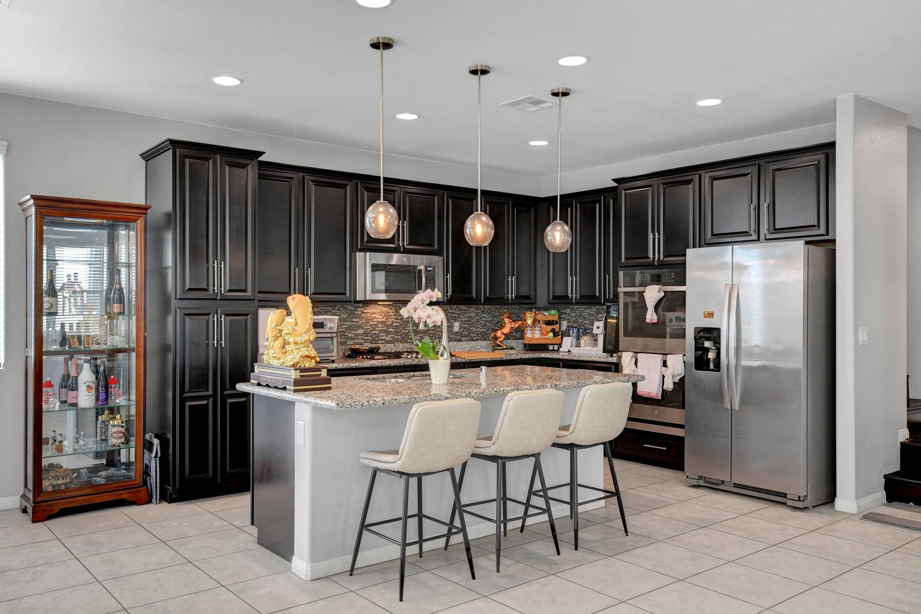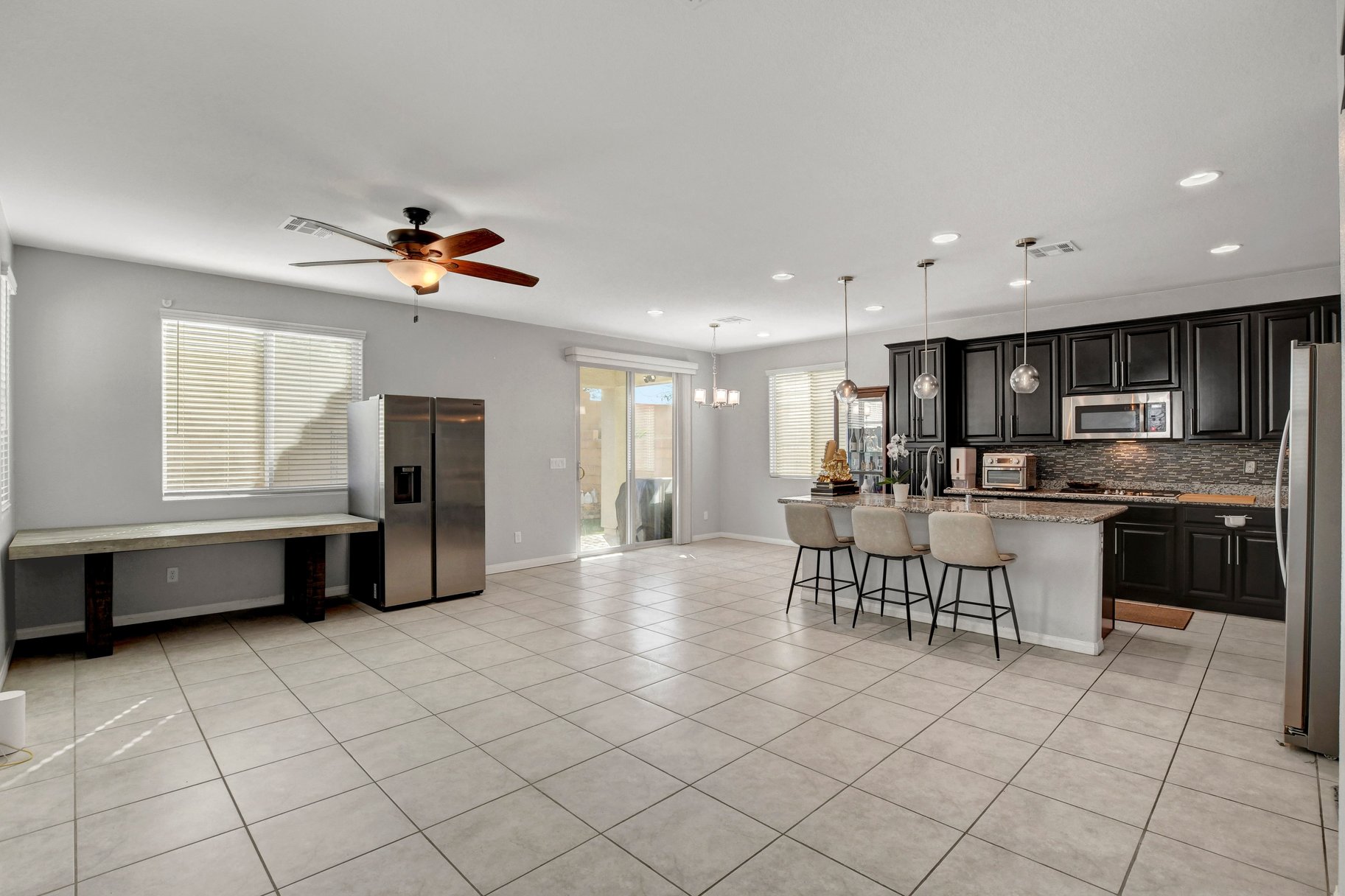 Experience this beautifully maintained Richmond American home that truly reflects pride of ownership. Thoughtfully designed and move-in ready, this residence features a spacious primary retreat along with quality finishes throughout. The gourmet kitchen is ideal for both everyday living and entertaining, complete with a large granite island, built-in double ovens, and a premium 5-burner cooktop. Rich espresso cabinetry adds warmth and a modern touch to the space. Step outside to a private backyard featuring a covered patio and low-maintenance synthetic grass—perfect for relaxing or hosting guests. Additional highlights include 9-foot ceilings, 8-foot doors, and a finished garage with epoxy flooring. The primary suite offers a walk-in closet, dual sinks, and a comfortable retreat to unwind. Conveniently located in North Las Vegas near shopping, dining, parks, and easy access to major freeways, this home offers both comfort and everyday convenience.