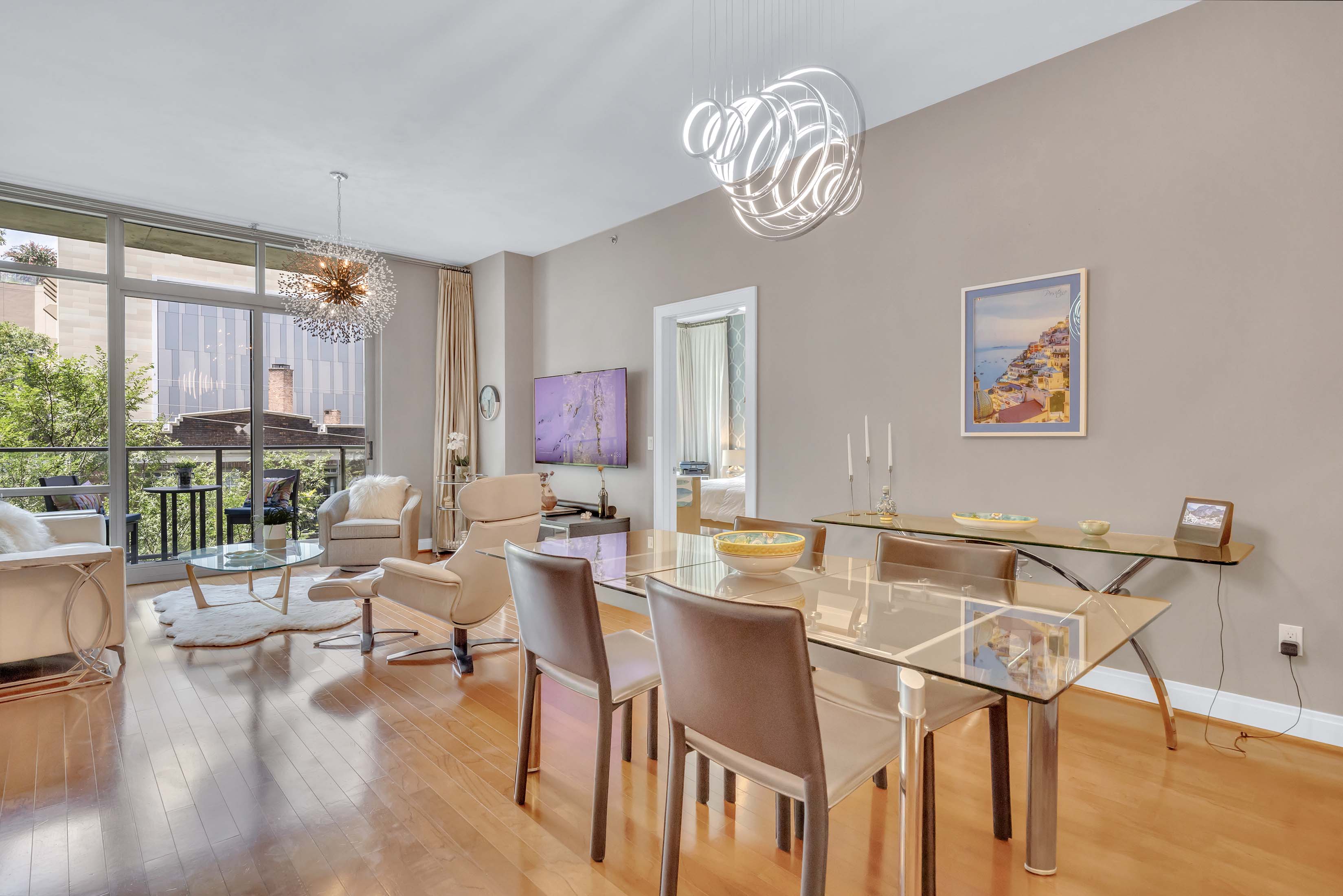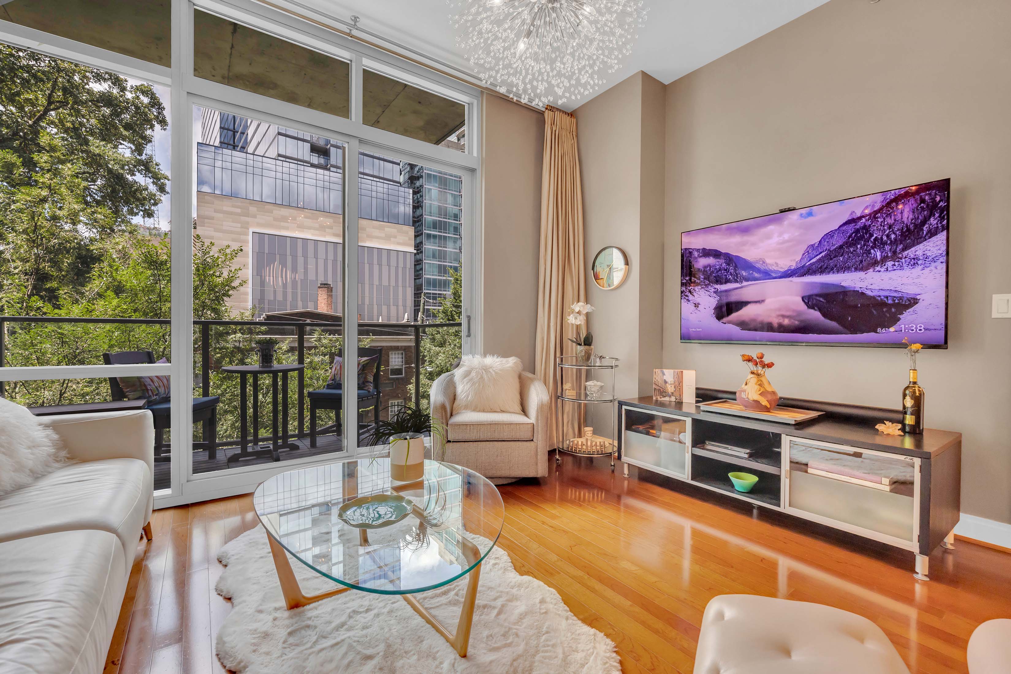 Rare Two Bedroom + Den | Two Bath | Two Deeded Parking Spaces + Large Storage | 905 Juniper. Experience the ultimate Midtown lifestyle at 905 Juniper, where vibrant city energy meets refined comfort. Perfectly positioned in the heart of Midtown, this exceptional two bedroom, two bath residence with a versatile bonus den with bar offers more than just a home; it offers a lifestyle upgrade. Wake up to sweeping city views framed by dramatic floor-to-ceiling windows. Start your mornings in a sleek kitchen featuring granite countertops, stainless steel appliances, and ample space to gather and entertain. The open-concept living and dining areas are filled with natural light and anchored by rich hardwood floors, creating a warm yet sophisticated setting for both relaxing evenings and lively dinner parties. The spacious den provides endless flexibility, ideal as a stylish bar lounge, home office, media room, or creative studio. When it’s time to unwind, retreat to the oversized primary suite, complete with a spa-inspired bath designed for true relaxation. Venture outside and discover why Midtown is one of Atlanta’s most sought-after neighborhoods. Piedmont Park is practically your backyard, the BeltLine is just minutes away, and the city’s best restaurants, cafés, boutiques, and cultural destinations are all within easy reach. With two deeded parking spaces, a large private storage unit, and a boutique building with abundant guest parking, LaSanta Restaurant, and Midtown Life Chiropractor.