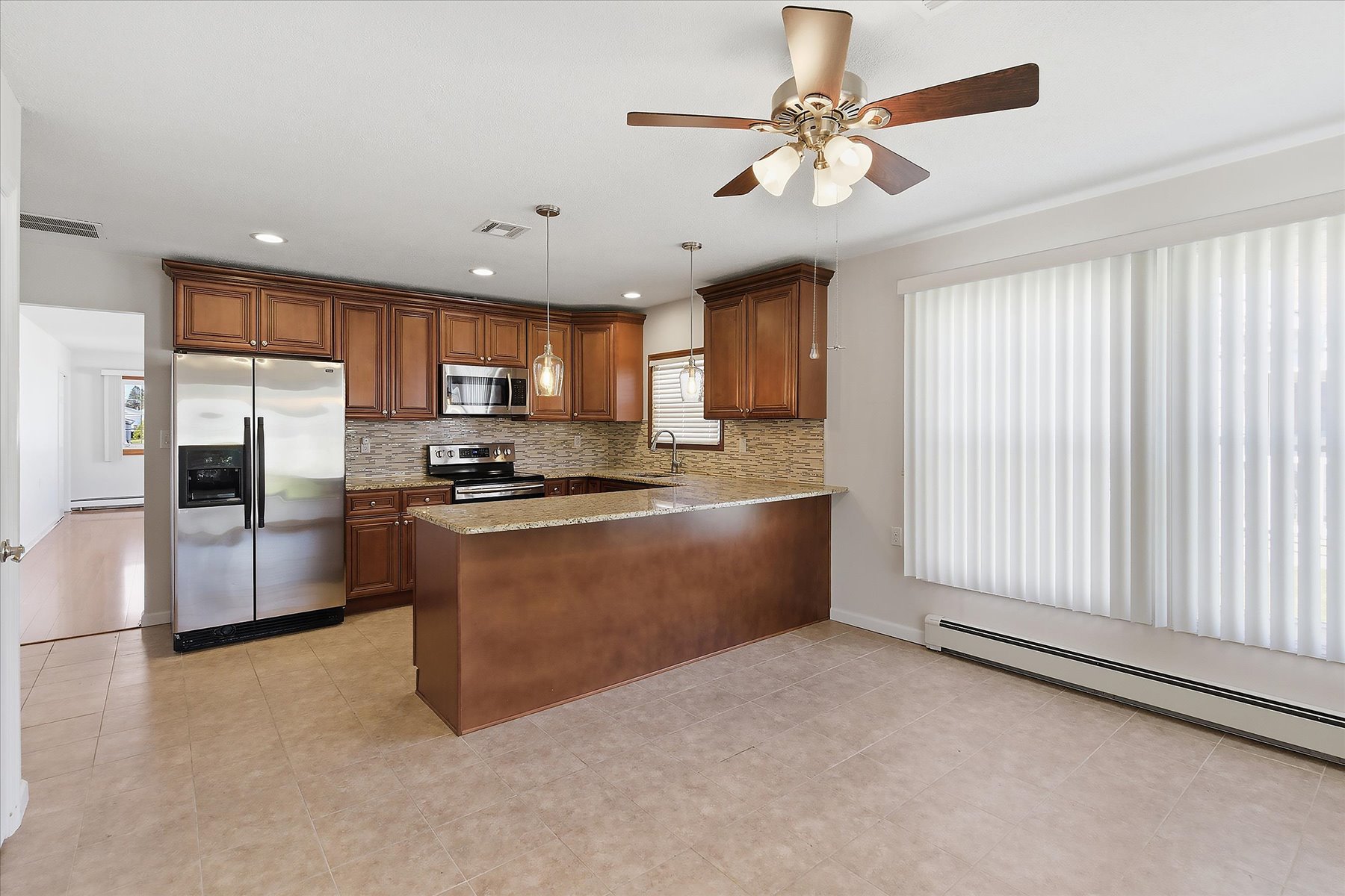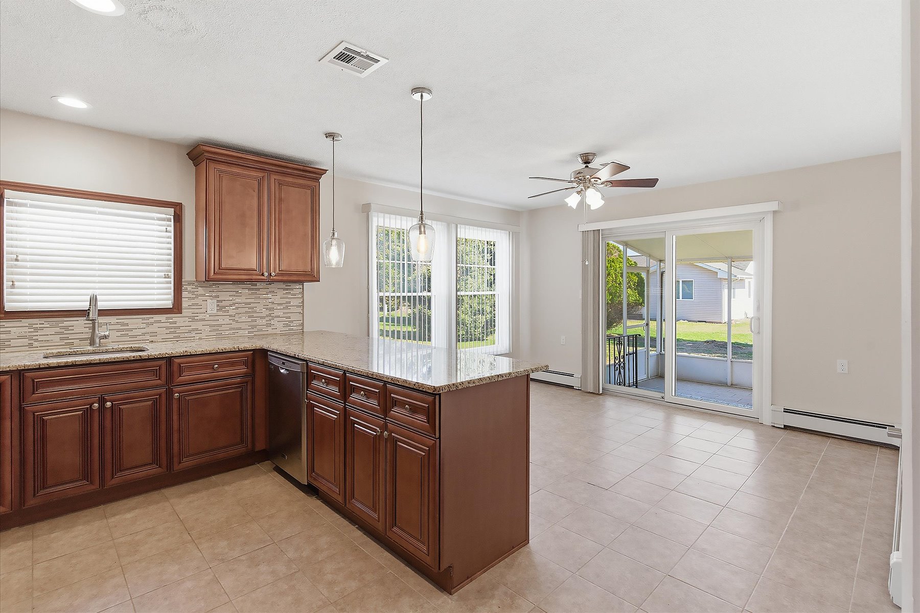 Welcome to Holiday City, Berkeley where your next chapter begins and your best life awaits! This beautifully renovated Lakeview model offers 2 bedrooms and 2 full bathrooms, thoughtfully updated and completely move-in ready. Step inside to a bright and spacious living room featuring gleaming laminate wood floors and an inviting, open feel throughout. The chef's delight kitchen is elegantly designed with a spacious layout, granite countertops and stainless steel appliances. Both bathrooms have been tastefully renovated, including a private en-suite in the primary bedroom for added comfort and convenience. A large enclosed three-season room at the rear of the home provides the perfect space to relax and unwind. Impeccably maintained, this home is exceptionally clean and truly turnkey.