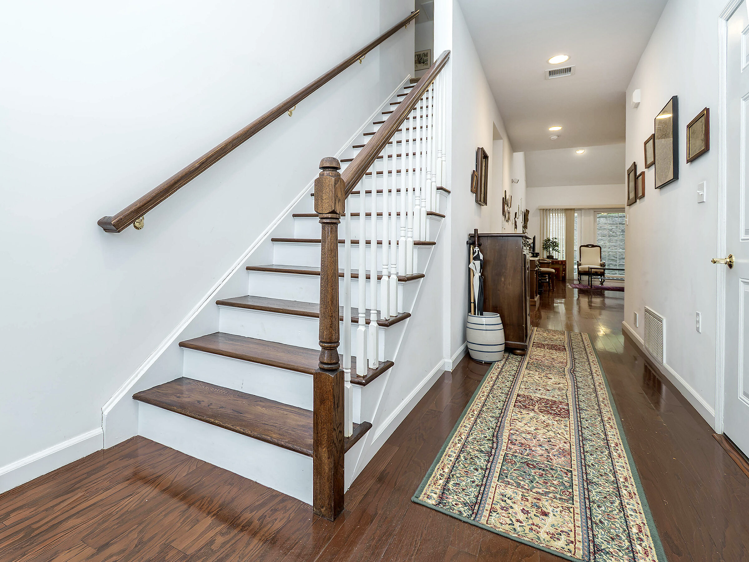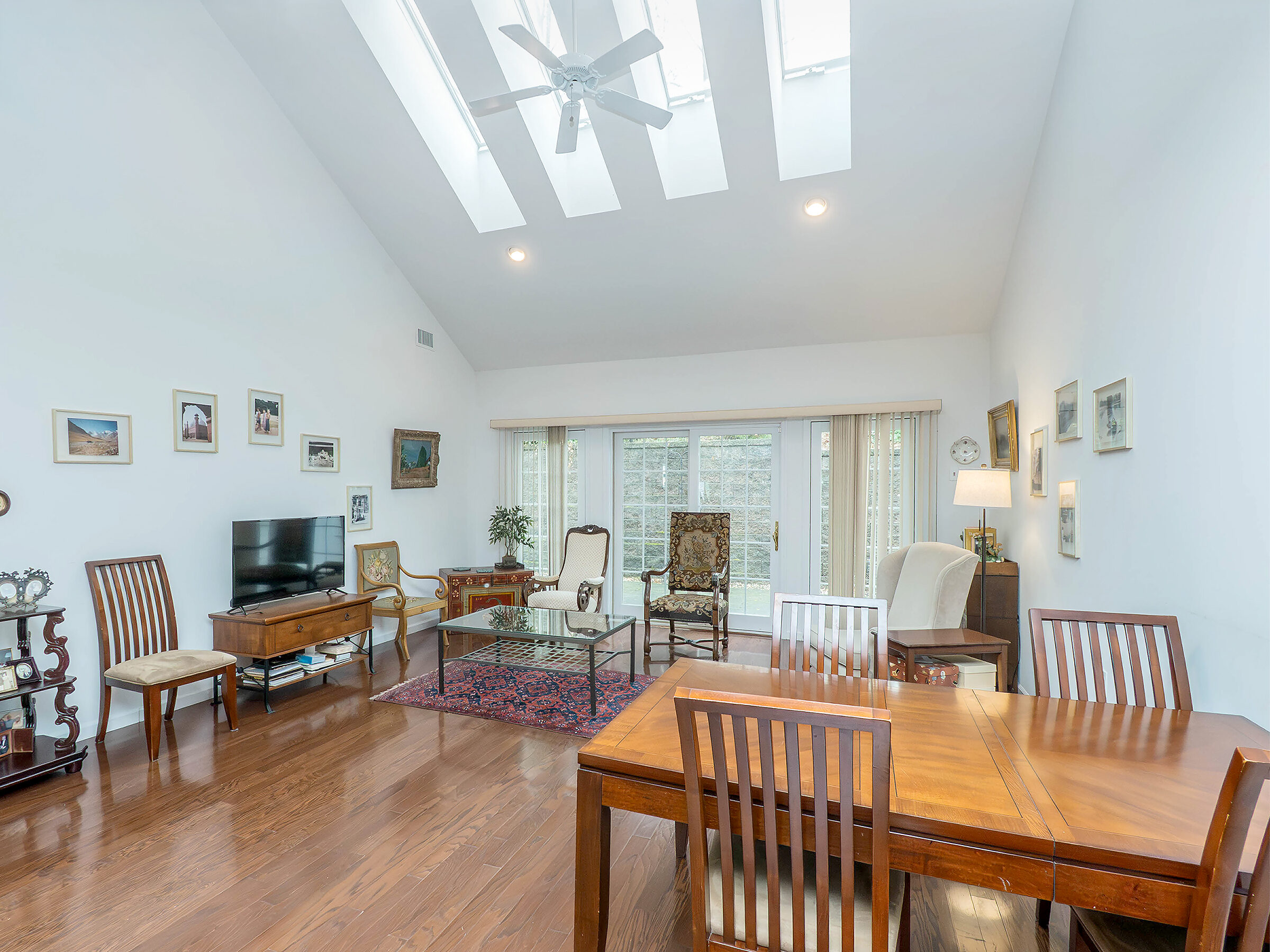 Nestled in the heart of Mill Pond Acres, an active 55+ community, this beautiful 4 Bedroom, 3 Bath end unit Townhouse offers resort-style living! The entry foyer flows into an open concept kitchen with stainless appliances, gas cooking, large center island, granite counter and custom cabinetry. The living room, flooded with light, has vaulted ceilings and skylights with sliding doors out to a stone patio. The main level features a primary suite with renovated bath, walk in closet, Washer/Dryer, then comes an additional bedroom and bath.The second floor has 2 bedrooms, renovated full bath and a large open loft. Additional features include an attached garage, 2 zone CAC and 2 zone gas heat. Among the inviting community amenities are the clubhouse, jitney service, indoor pool, sauna, fitness center, hot tub and outdoor tennis and pickle courts. There is a one time fee of 1% of the purchase price due at closing.