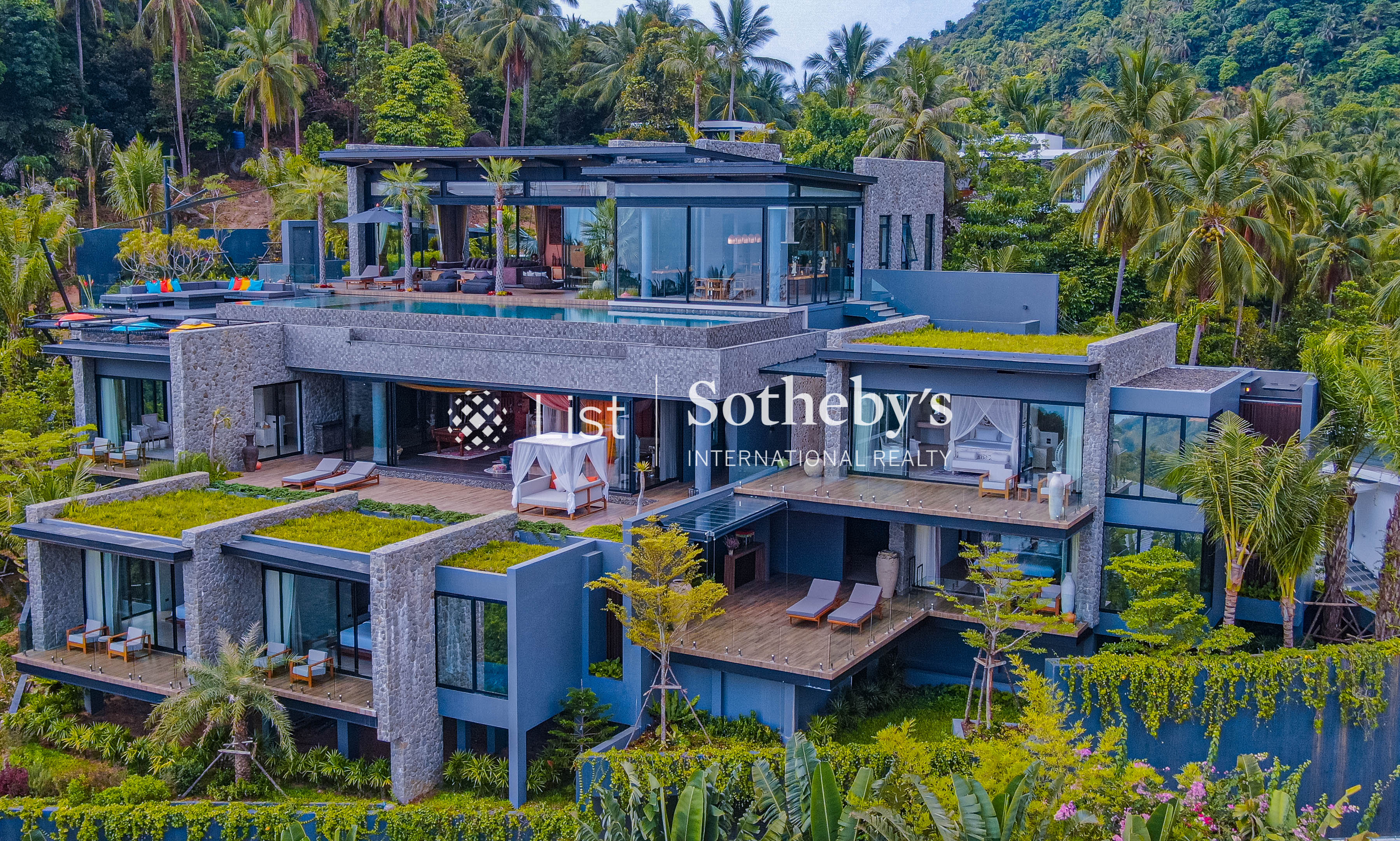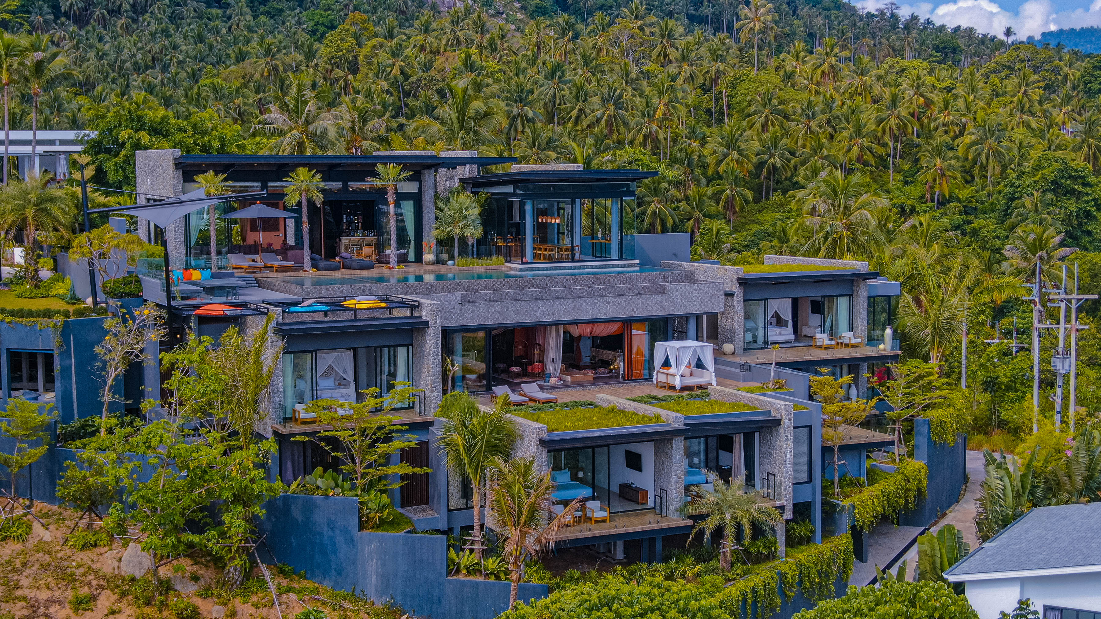 Set into the mountainside on a series of natural terraces, the villa was carefully designed to take full advantage of its elevated position and sweeping panoramic views. The architecture follows the contours of the hillside, creating distinct levels and air-gapped spaces between functional areas, allowing light, airflow, and privacy to flow naturally throughout the property.