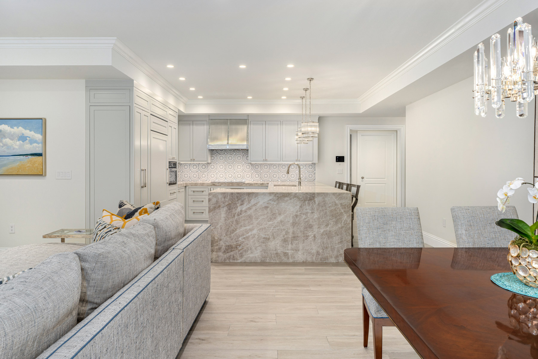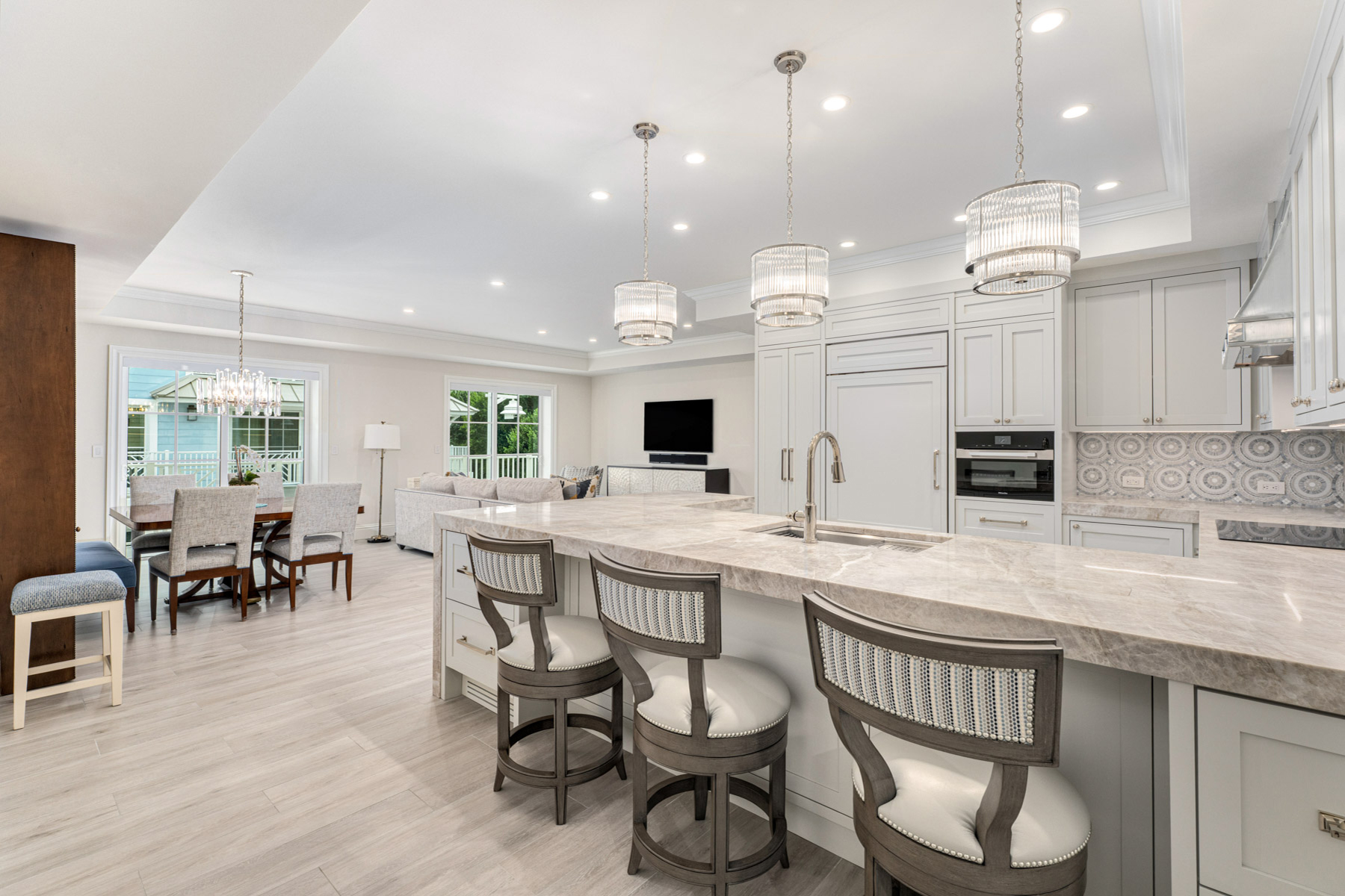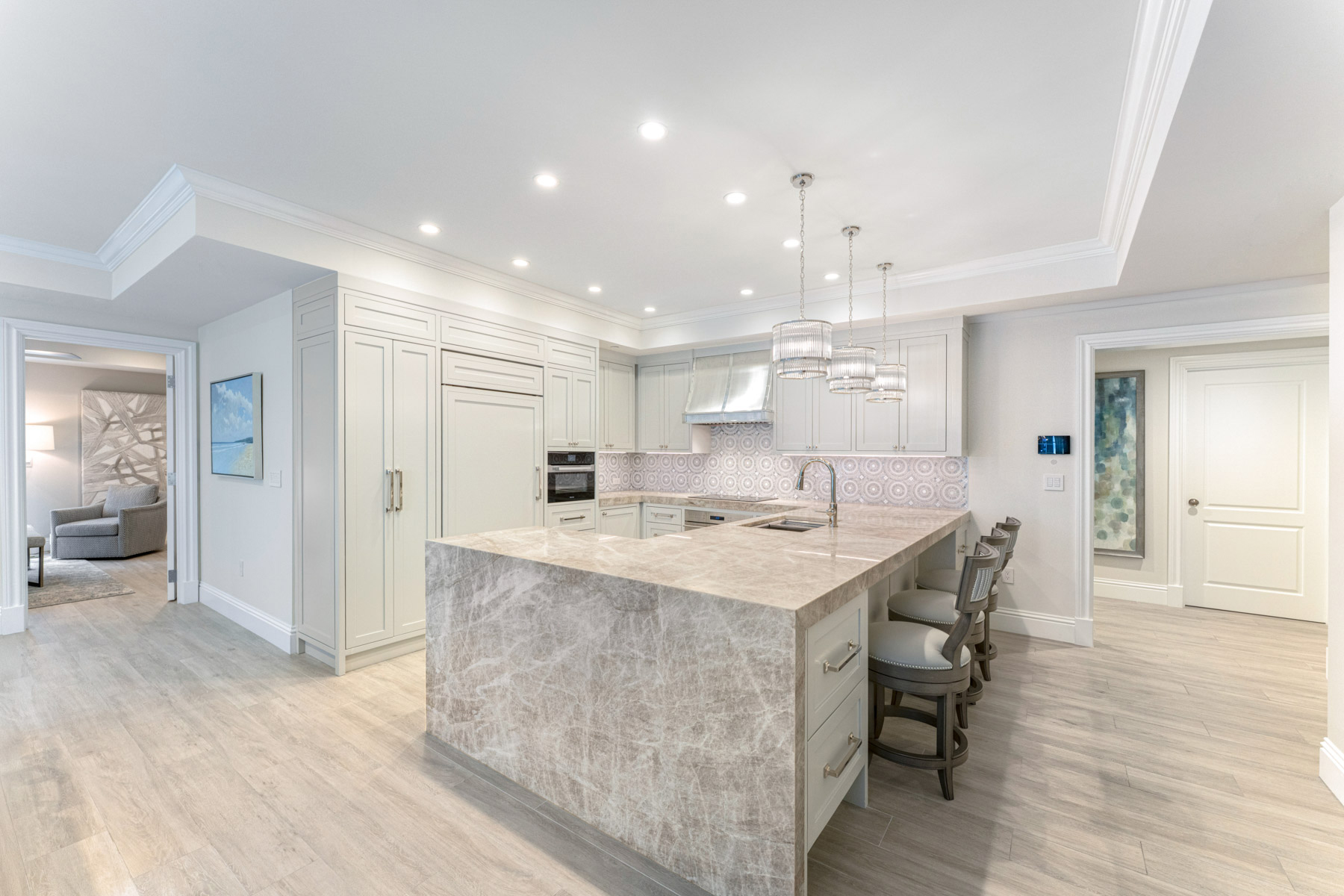 Discover refined luxury living at The Residence Club, where sophistication meets comfort in this exceptional two-bedroom, two-and-a-half-bathroom condominium spanning 2,035 square feet. This stunning residence underwent a complete transformation in 2024, elevating every detail from builder-grade to boutique elegance. The heart of this home showcases a custom kitchen featuring Wolf cooktop and range, Miele convection oven and microwave, plus Bosch dishwasher, all complemented by leather-honed countertops and bespoke cabinetry. The thoughtfully designed laundry room doubles as a butler's pantry with floor-to-ceiling storage, wine refrigerator, and additional refrigerator drawers. Luxurious bathrooms display exquisite marble and tile work paired with premium fixtures throughout. Convenience extends to the lower-level garage with prime parking accommodating both vehicle and golf cart, plus climate-controlled storage space. The Residence Club represents Ocean Reef's pinnacle of luxury condominium living, nestled within one of Florida's most prestigious communities. This exclusive enclave offers unparalleled security and engineered comfort, featuring an impressive 18,000-square-foot clubhouse with concierge services and state-of-the-art fitness center. Residents enjoy first-class private dining with professional chef services, wine storage, movie theater, and screening room. The outdoor heated pool, wellness spa, and salon provide resort-style amenities steps from your door. A full-service generator ensures uninterrupted comfort throughout all common areas and residences. The Ocean Reef Club neighborhood offers world-class golf, pristine beaches, and exclusive marina facilities, creating an unmatched lifestyle destination. This turnkey residence represents the ultimate in carefree luxury living where every detail has been meticulously crafted for discerning homeowners.