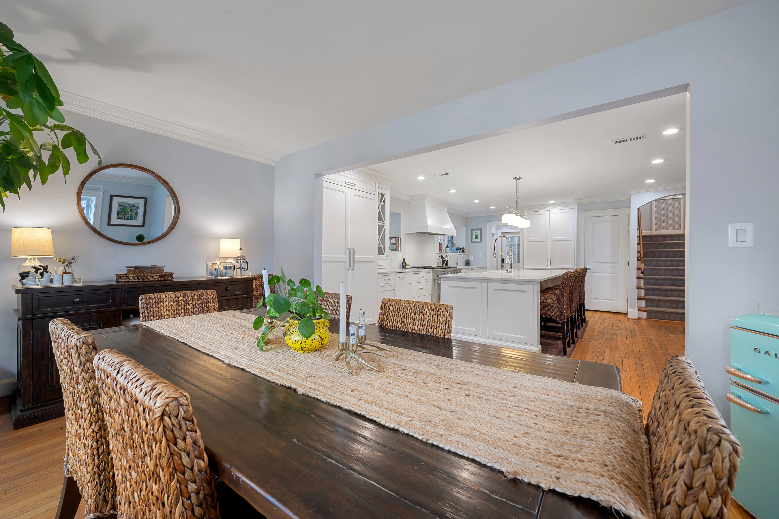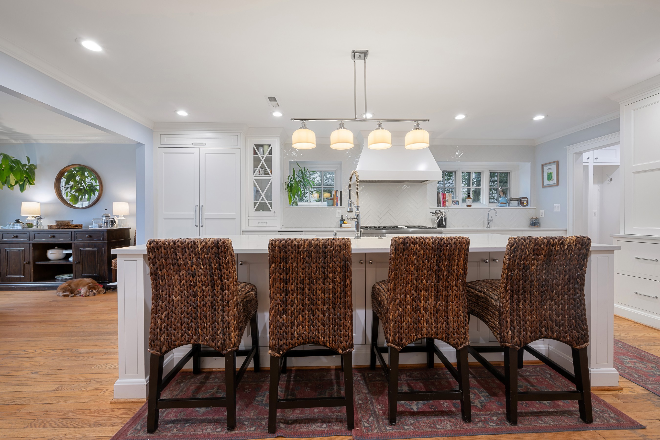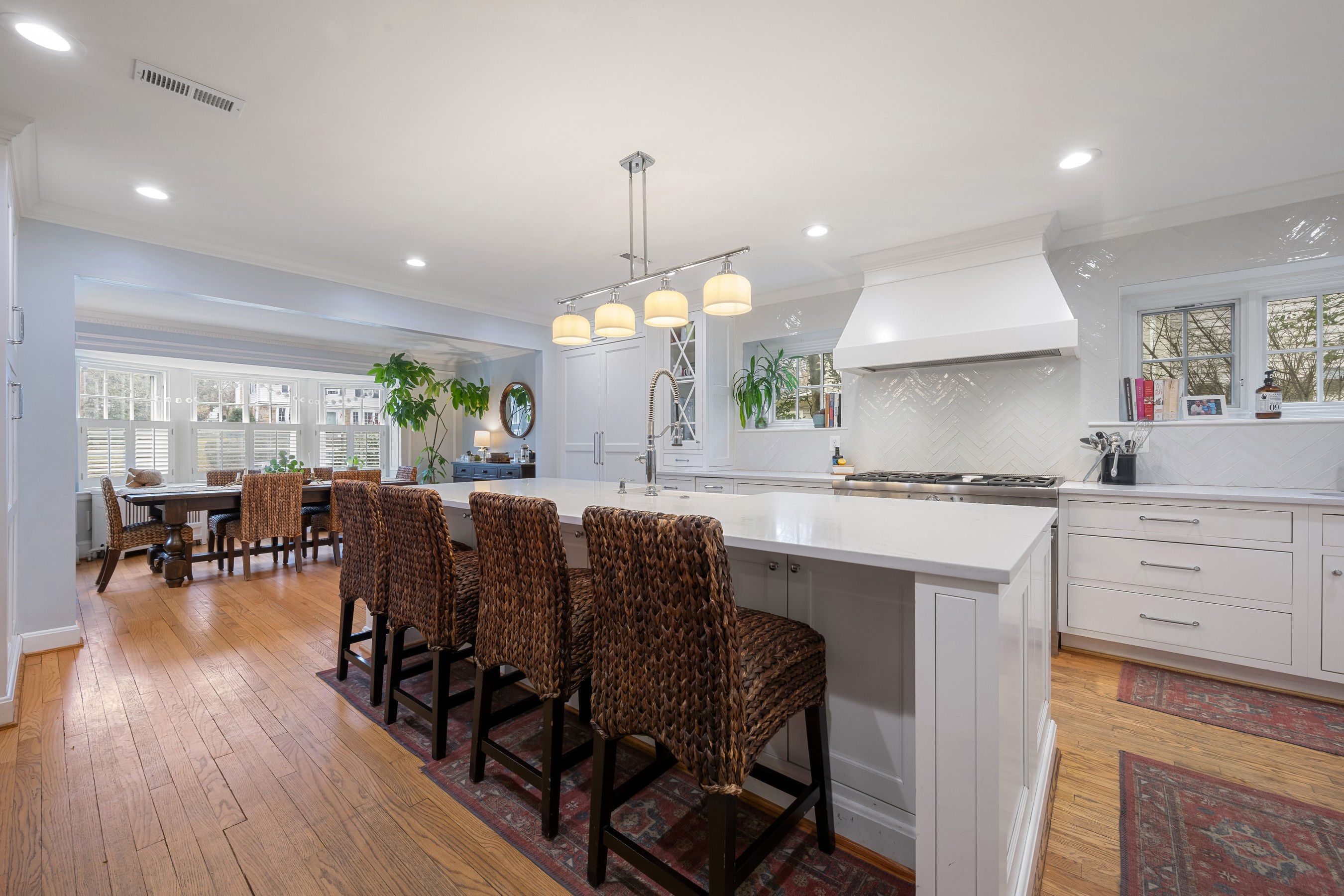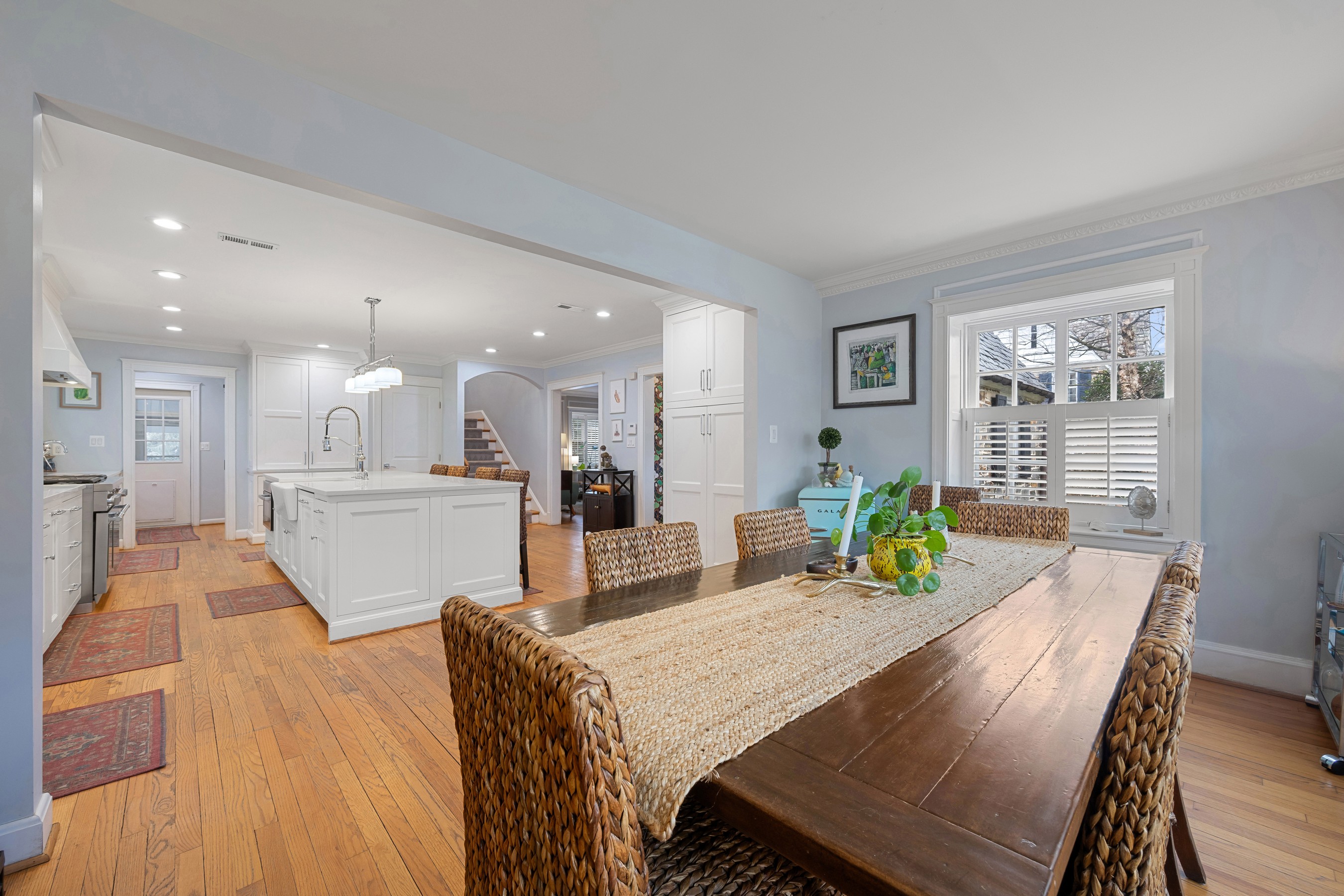 Elegant and distinguished stone residence offering five bedrooms, four full and two half baths, with attached garage in coveted Homeland. This refined home beautifully blends timeless architectural charm with modern luxury. The expansive, state of the art chef's kitchen serves as the heart of the home, featuring high end custom built in appliances, a restaurant grade six burner stainless gas range with griddle and double oven, quartz countertops, and an oversized island that anchors the space and opens to the dining area for effortless entertaining. A double mudroom just off the kitchen provides exceptional everyday convenience. The inviting family room with gas fireplace flows seamlessly into the den or home office, where French doors open to a wonderful screened porch, creating effortless indoor/outdoor living. The upper levels host five generously sized bedrooms and four beautifully appointed full baths, along with a convenient laundry area. The finished lower level offers an ideal entertaining space with a recreation room featuring a built in wet bar, abundant storage, an additional laundry area, and a half bath. Outside, enjoy the peaceful and private fenced rear yard with patio, perfect for relaxing or gathering with friends.