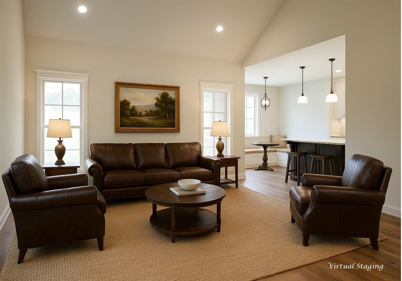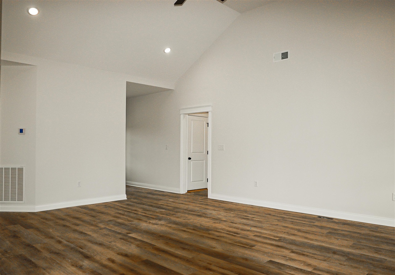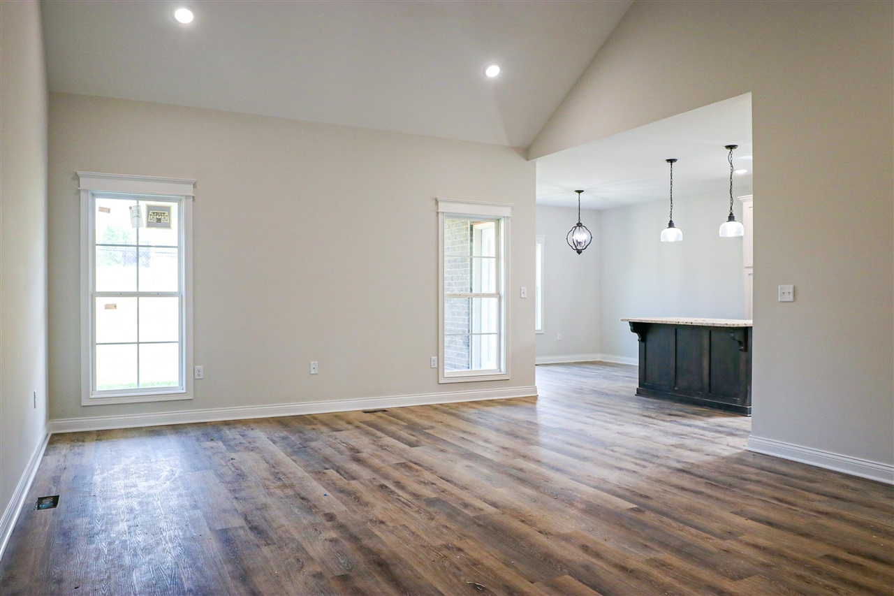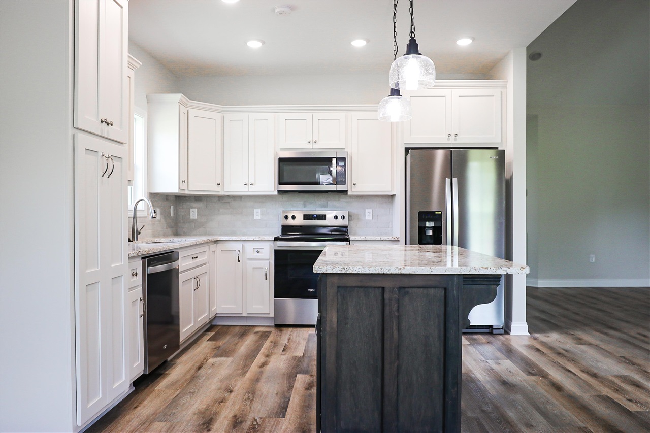This beautifully designed 4-bedroom, 2-bathroom home with a split-bedroom floorplan and 1,694 sq ft of living space. A cathedral ceiling enhances the spacious living room, while a tray ceiling adds an elegant touch to the primary bedroom. Luxury vinyl plank flooring runs throughout the main areas, with carpet in the bedrooms. The kitchen features soft-close custom cabinets, a large island, and a formal dining area, perfect for hosting. The primary suite offers double vanities, and a stand-alone tile shower. Enjoy outdoor living with a covered porch!