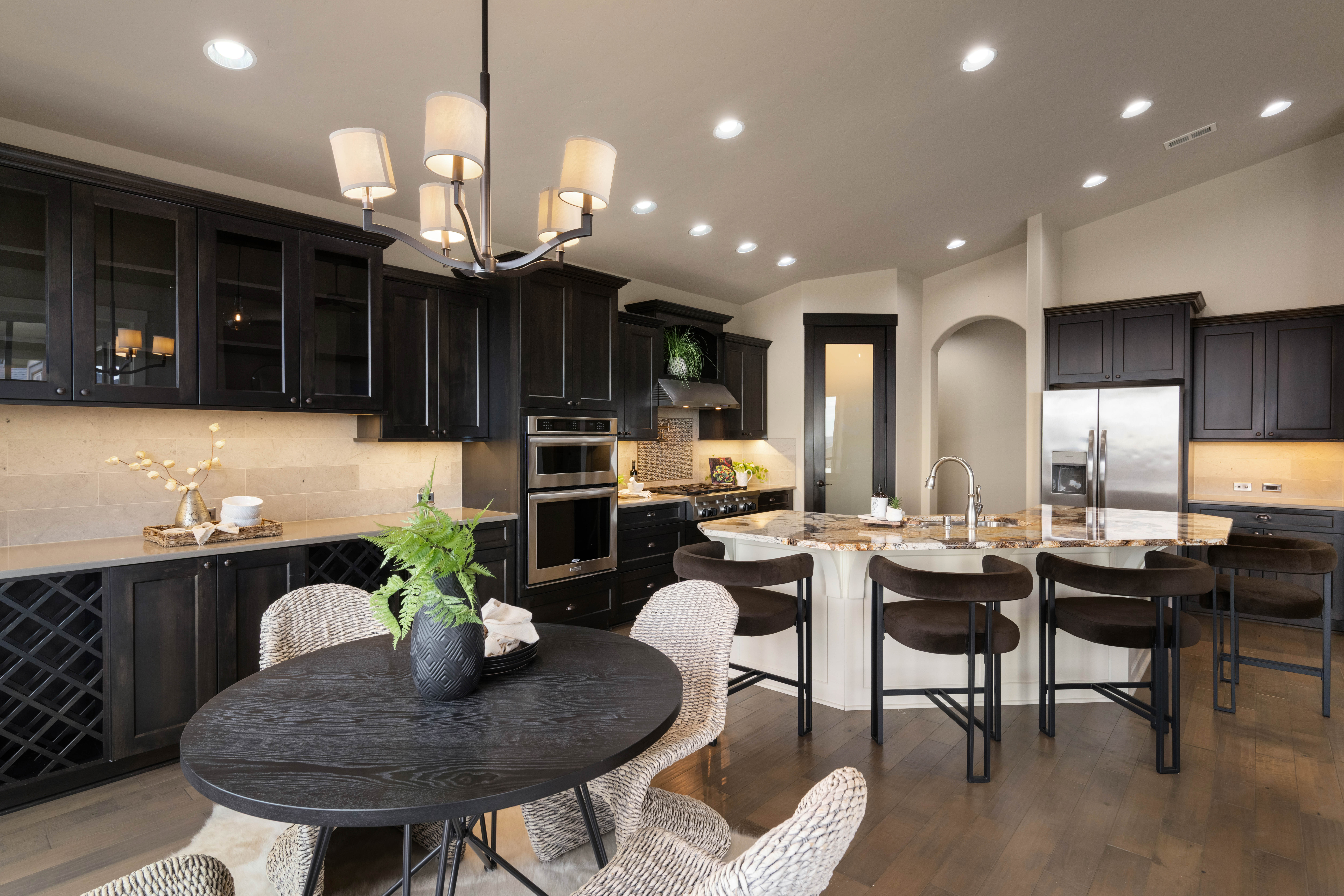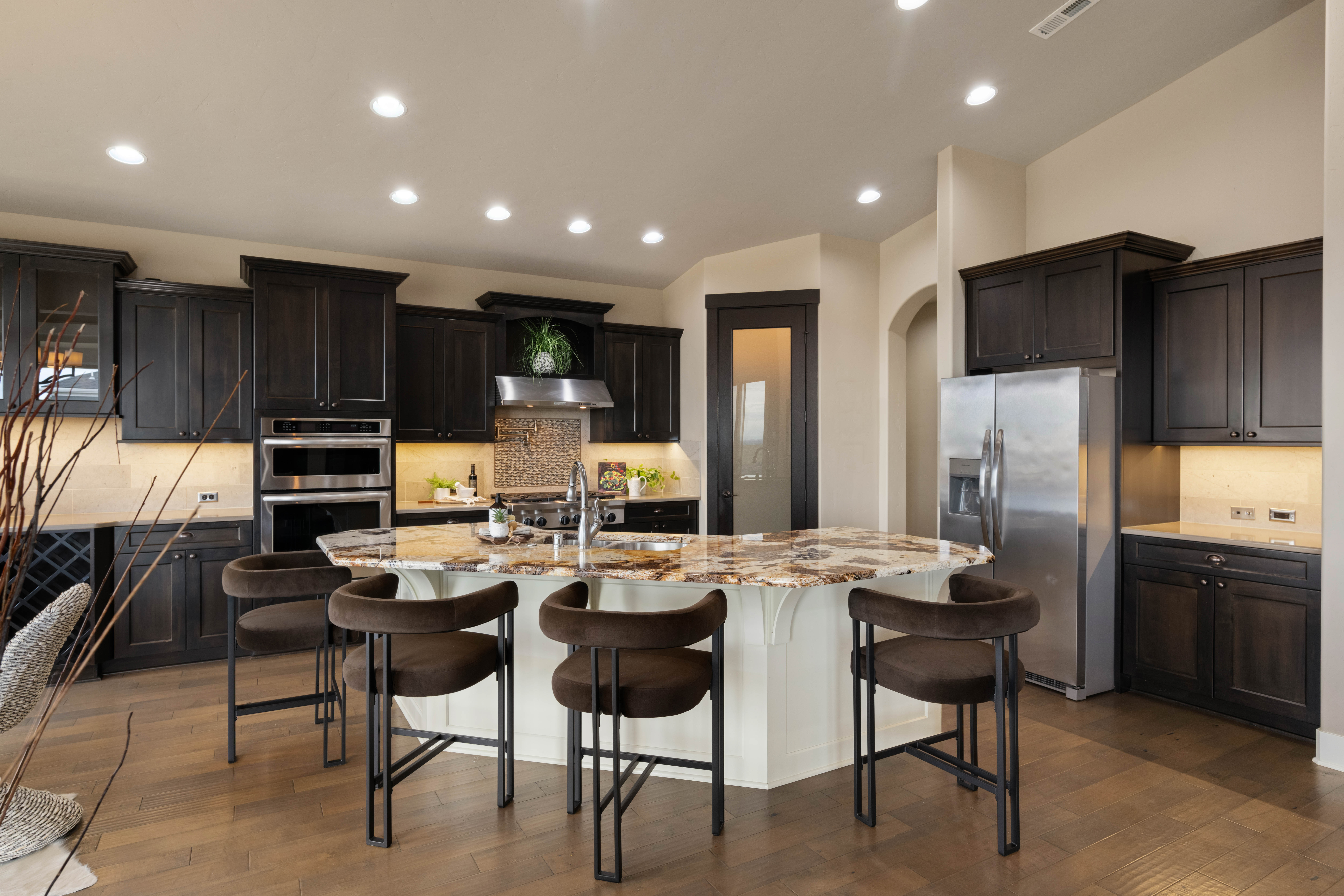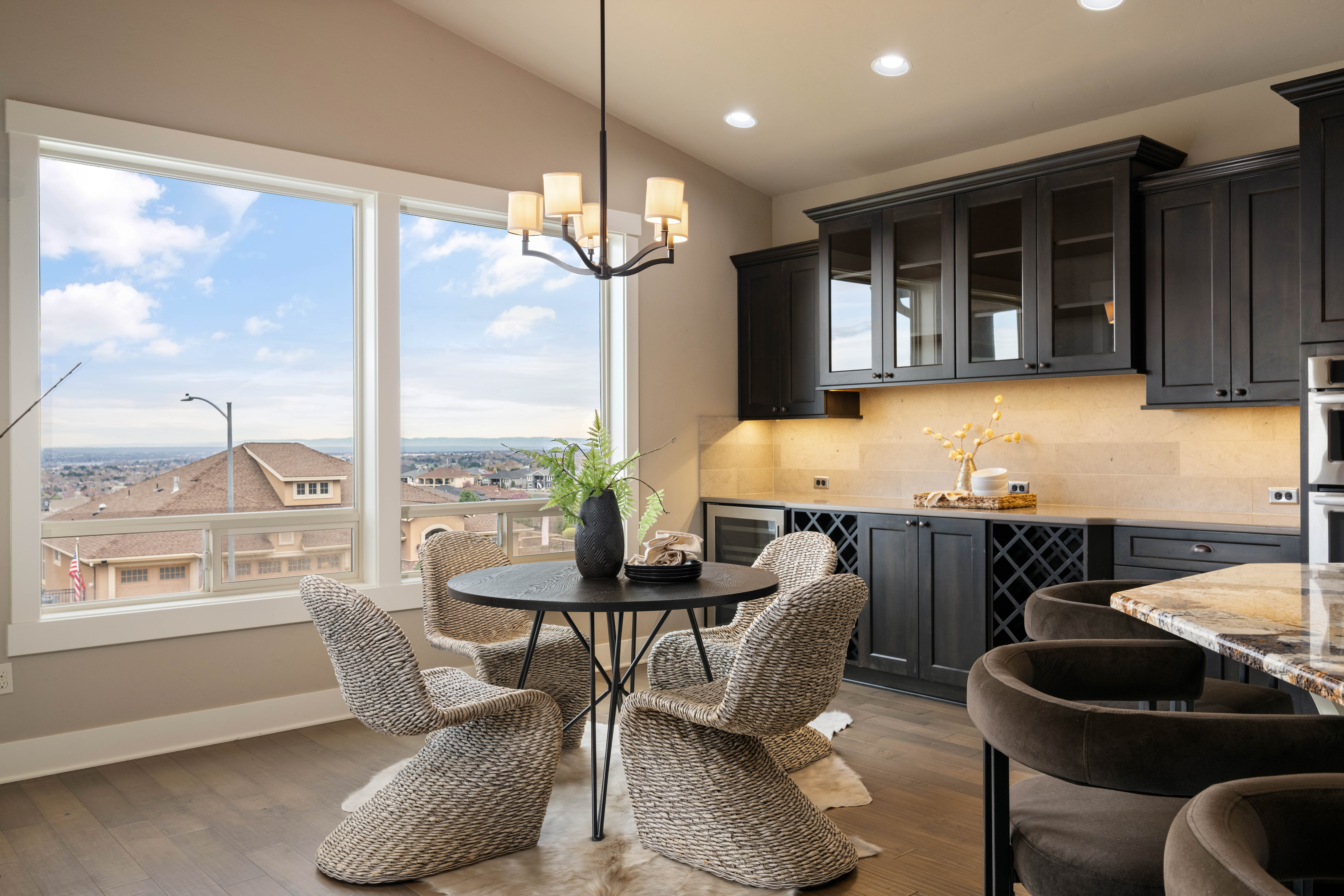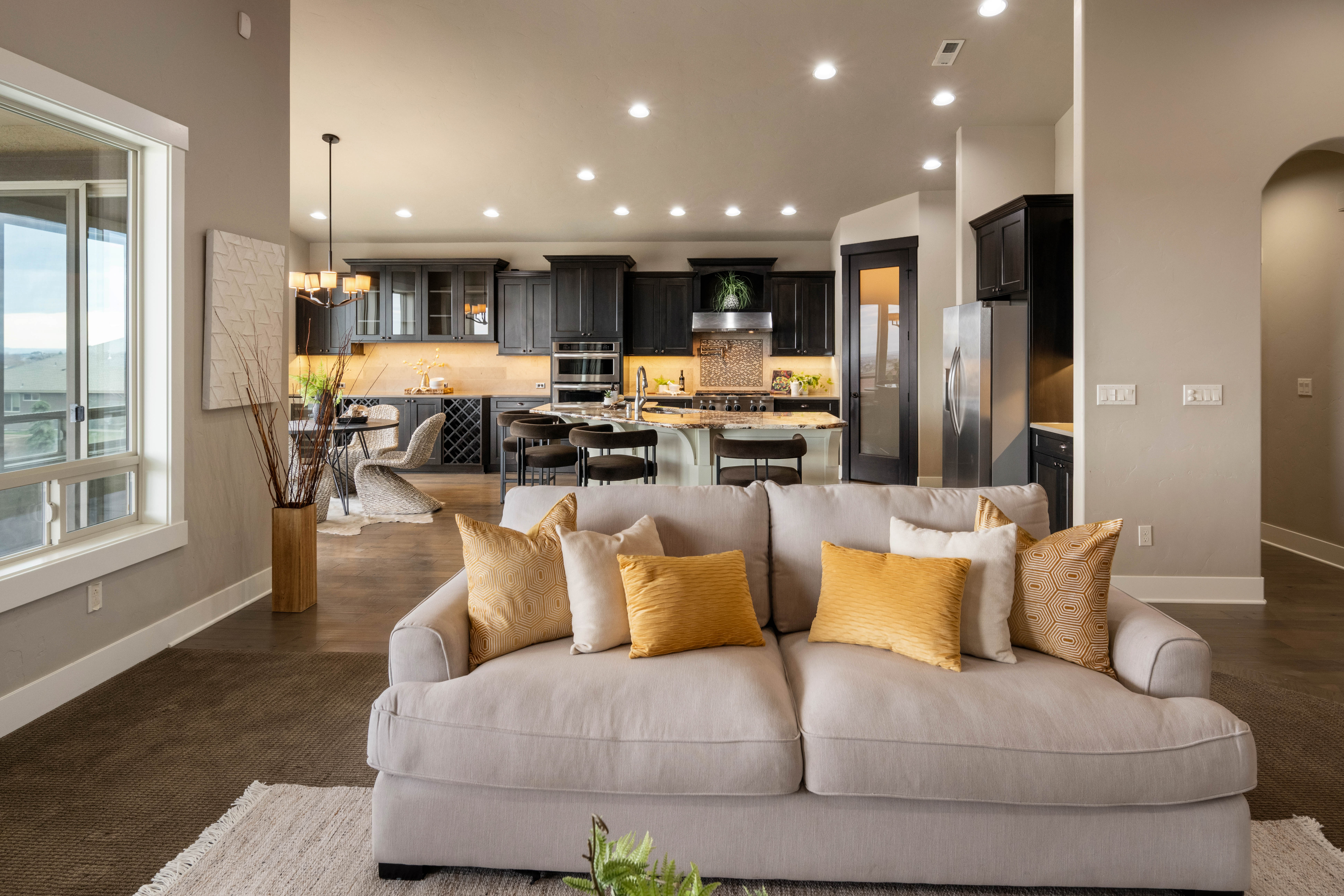 Set in South Richland’s highly sought-after Italy streets, this stunning home was designed to capture panoramic river and city views from the moment you walk in. Step inside and you’re welcomed by soaring vaulted ceilings, engineered hardwood flooring, wood-wrapped windows, and a warm, neutral palette that perfectly frames the views beyond, while the dining area makes a beautiful first impression with its coved, lit ceiling and built-in buffet, creating an inviting space for gatherings. From there, the home opens into a breathtaking great room featuring wood beams, custom built-ins, and a floor-to-ceiling stone fireplace, all designed to take in the sunsets and evening city lights. The kitchen flows seamlessly off the main living area and truly is the heart of the home, anchored by a massive granite slab island with abundant seating, stainless KitchenAid appliances, a six-burner range with vent hood, pot filler, mosaic tile backsplash, and a frosted glass walk-in pantry, plus a built-in wine station with chiller for effortless entertaining. Privately tucked away, the primary suite offers a quiet retreat with a tray ceiling and stunning river views, where you can imagine waking up to sunrises each morning, while the ensuite features a soaking tub, dual-head glass tile shower, and expansive counter space. The split-bedroom design continues with two additional bedrooms, including a front bedroom with its own private ensuite ideal for guests, along with a dedicated office and a total of three bathrooms. Step outside to a generously sized lot with a large, flat grassy side yard and a covered patio, perfect for relaxing or entertaining on a quiet street. Additional features include a tankless water heater and wired security system. Thoughtfully designed, beautifully maintained, and truly move-in ready with unforgettable views.