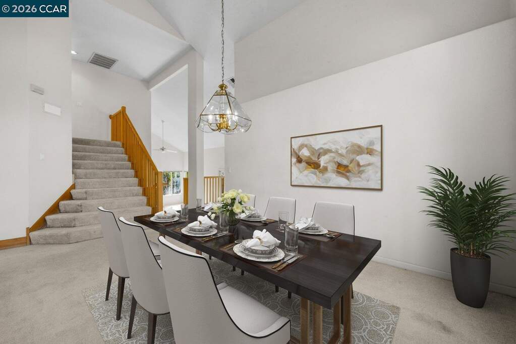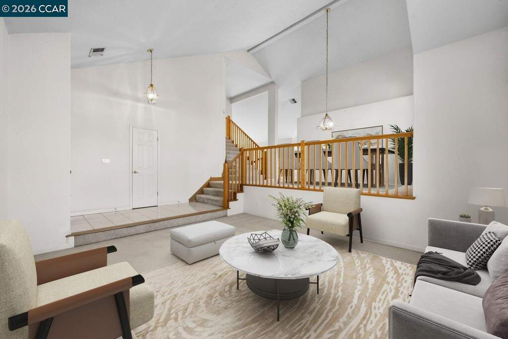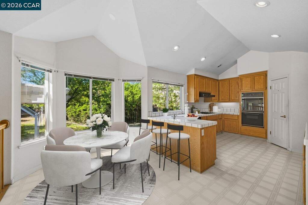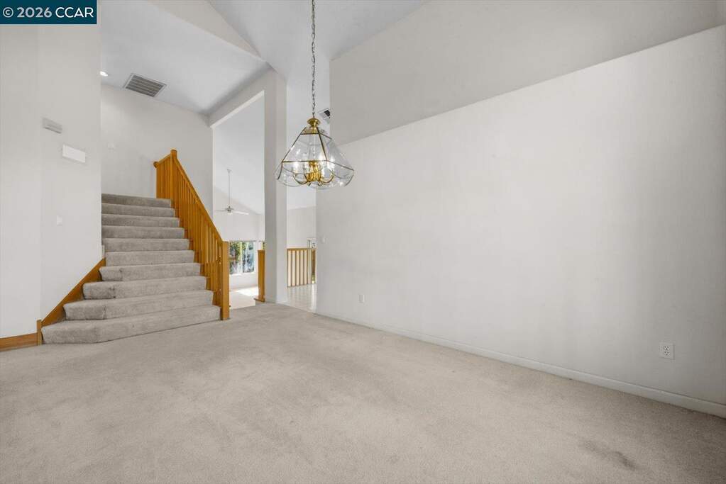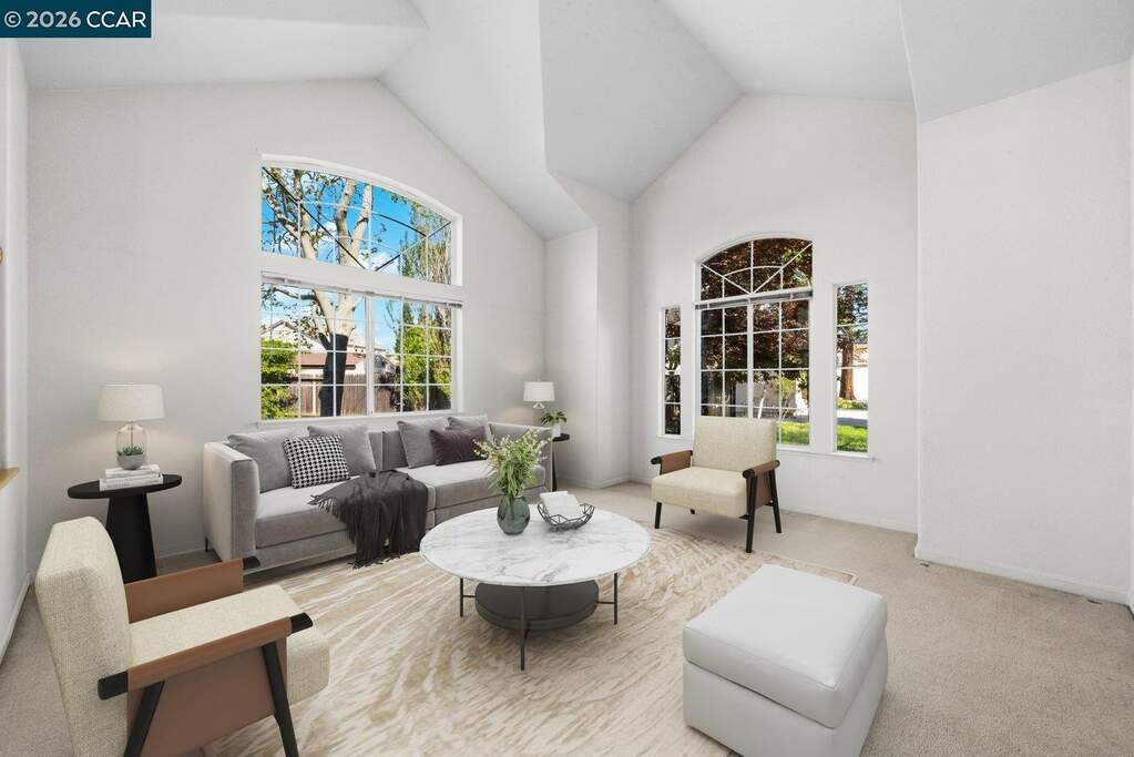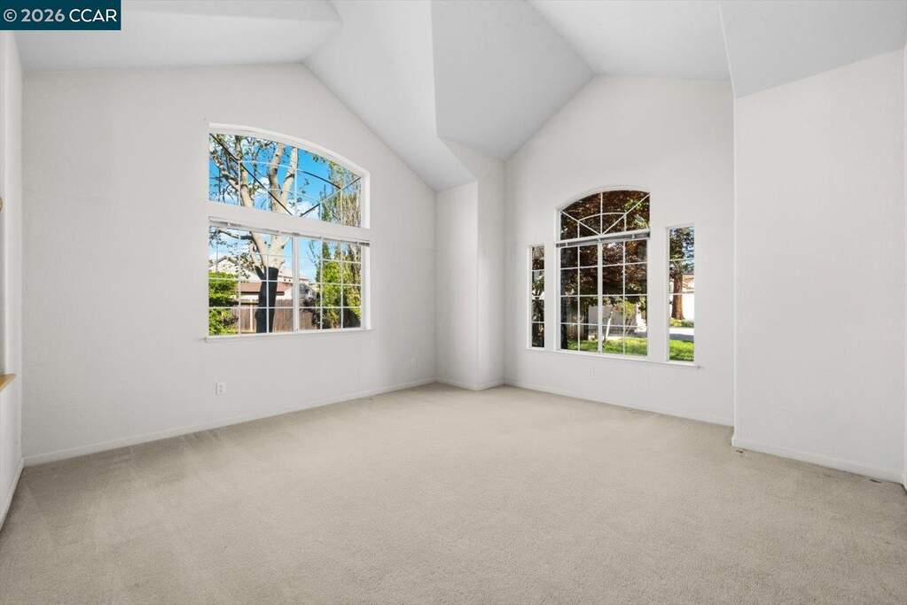Situated on a quiet cul-de-sac in Spinnaker Ridge, this spacious home sits on an expansive lot in one of Brentwood's desirable neighborhoods. The well-maintained property features 4 beds, 3 full baths and 2,639 sq ft of living space on a 15,000 sq ft lot. The home opens to a bright living room with soaring ceilings and large windows that bring in natural light, leading to the dining room, kitchen and family room. The kitchen offers generous cabinetry, a walk-in pantry, breakfast bar, and a bay window with space for casual dining. The family room features high ceilings, a brick wood-burning fireplace and sliding door access to the backyard. The home includes a convenient downstairs bedroom and full bathroom, ideal for guests or home office. Upstairs, the primary suite features vaulted ceilings, a tall arched window, two walk-in closets and an ensuite bath with soaking tub and separate shower. In addition to the primary suite, there are two more bedrooms upstairs, one with a walk-in closet. A covered patio overlooks the backyard with mature shade trees, including a productive pomegranate tree. Additional features include multiple ceiling fans and a three-car garage with additional storage space. Conveniently located near parks, schools, shopping, wineries, and popular U-pick farms.