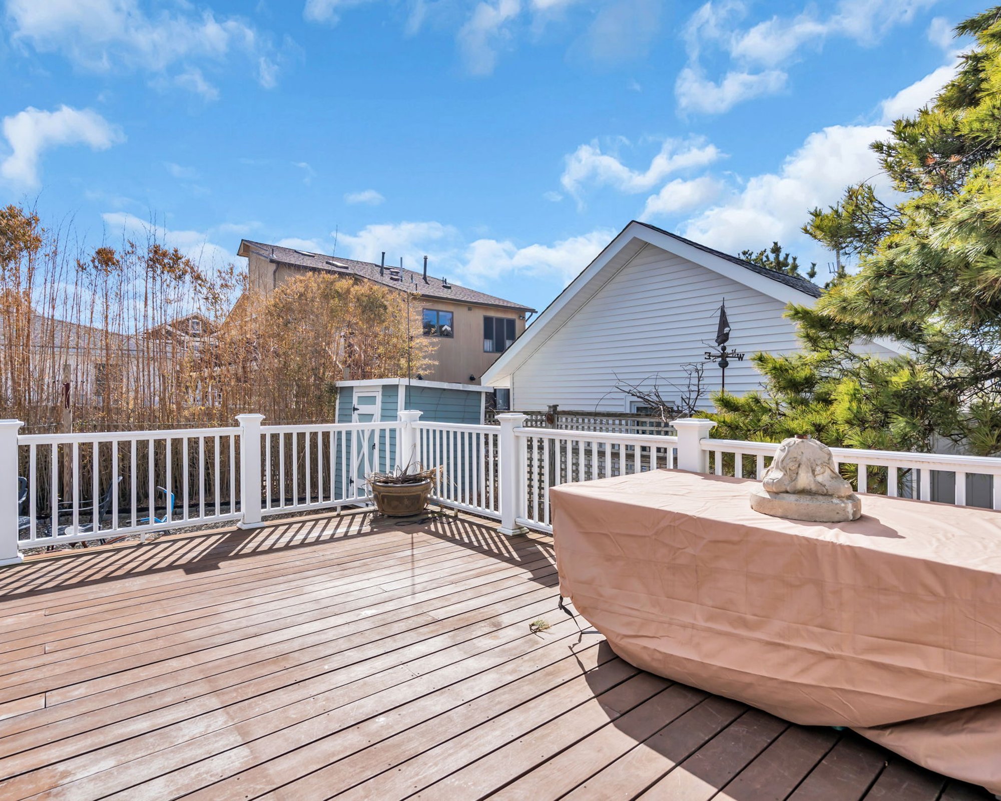 This fully furnished ocean block Cape Cod style home is in the very desirable private homeowner's association of Deauville Beach. The home features a living room, kitchen with eat-in area and two ground floor bedrooms. Upstairs has two more bedrooms and a full bath. The exterior features a large IPE back deck set up with entertainment in mind with roll out awning, outdoor shower, four storage sheds, gas barbeque grill, and ample off-street parking. Ideally located on the oceanside of Route 35 N with short distance to beach access, Charlie's Farm Market & Café, & Harbor Yacht Club & Marina for potential boat storage.