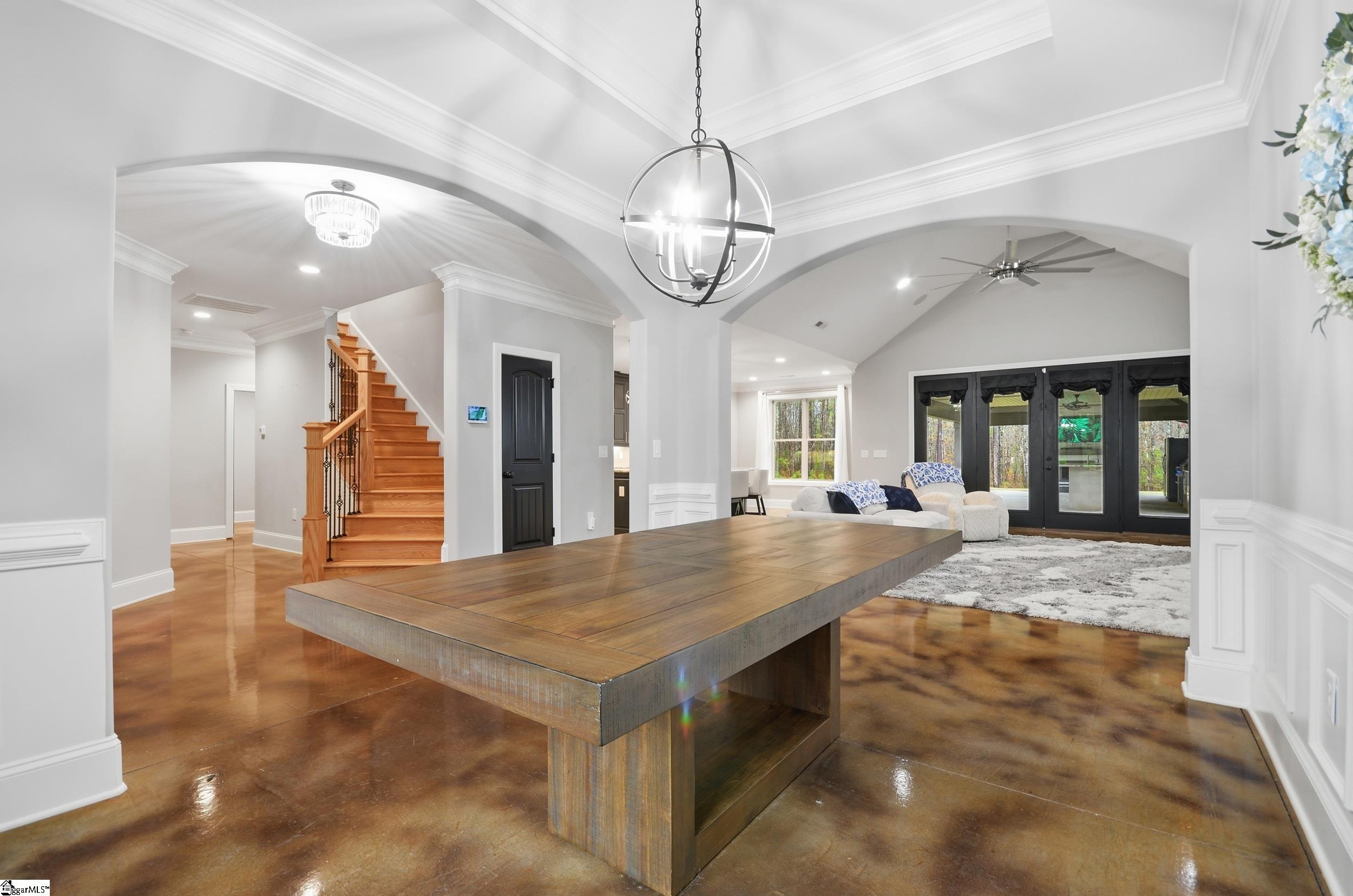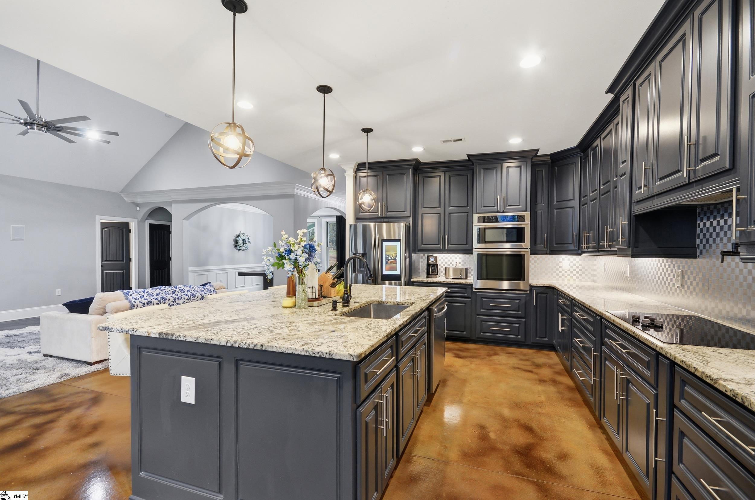 PRISTINE 2019 CUSTOM HOME ON 20+ ACRES! The home was quality built no stone left unturned. When you pull through the driveway you will pass 300' of woods lining the front for privacy and a gated entry. You will see a beautiful side yard with 12 zone irrigation system AND the entire property is fenced-in. When you enter the home, you will be in awe of the details with bullnose sheetrock corners and arched entryways into the dining room with wainscoting and tray ceiling with double crown molding. The living room has beautiful vaulted ceilings and a technology closet with a hub for the hardwired security system covering the home, surround sound speakers, and more. The kitchen has soft close wooden cabinets to the ceiling, built-in Samsung Smart microwave and oven, dishwasher, Samsung smooth cooktop with pot filler, and Samsung refrigerator with touch screen Family Hub which allows you to stream music, watch TV, see inside your refrigerator, share photos and messages with touch-screen notes, and more. The kitchen has a walk-in pantry, breakfast nook, and large island with deep overhang. From the kitchen and living room are 8' French doors leading to a 33' x 49' covered outdoor patio with kitchen featuring a propane grill, sink, refrigerator, ice and trash compartments and a living area with vaulted ceilings, TV hook-up, and electric fireplace. From the outdoor living area is a bedroom with mini-split and full bathroom. Inside is a split floor plan with 2 large bedrooms with jack-n-jill bathroom and opposite side is a 3rd bedroom with full bathroom with tiled step-in shower, laundry room with a sink and TWO washing machines and TWO dryers, and a master ensuite. The master suite is a true oasis with an 8' door leading to a covered patio overlooking a green space pre-wired for a hot tub and pool. The bedroom has tray ceilings with double crown moldings. The master bathroom has separate owner's height sinks with granite countertops, garden tub, tiled step-in shower with Pulse spa shower system, and 2 walk-in closets with custom shelving. You will notice ample storage with multiple hall closets and a hug attic. There is more storage space in the oversized 4 car garage that is FULLY insulated with insulated garage doors and electric car hook-up. This home was built with the best material - cement fiber siding, 2x6 walls throughout, energy efficient roof with foil lining, and stained concrete floors throughout the main level for the true farmhouse feel. The grounds are breathtaking with designated green space for the family to enjoy and fenced-in the farm area for their goats and chickens or horses. To truly appreciate all this home, you must see it in person. DON'T MISS THE VIRTUAL VIDEO TOUR LINK.
