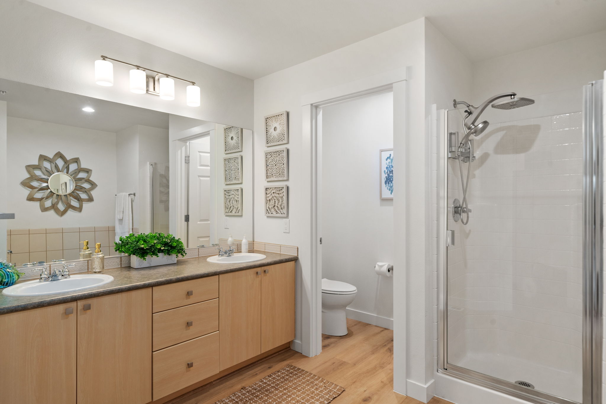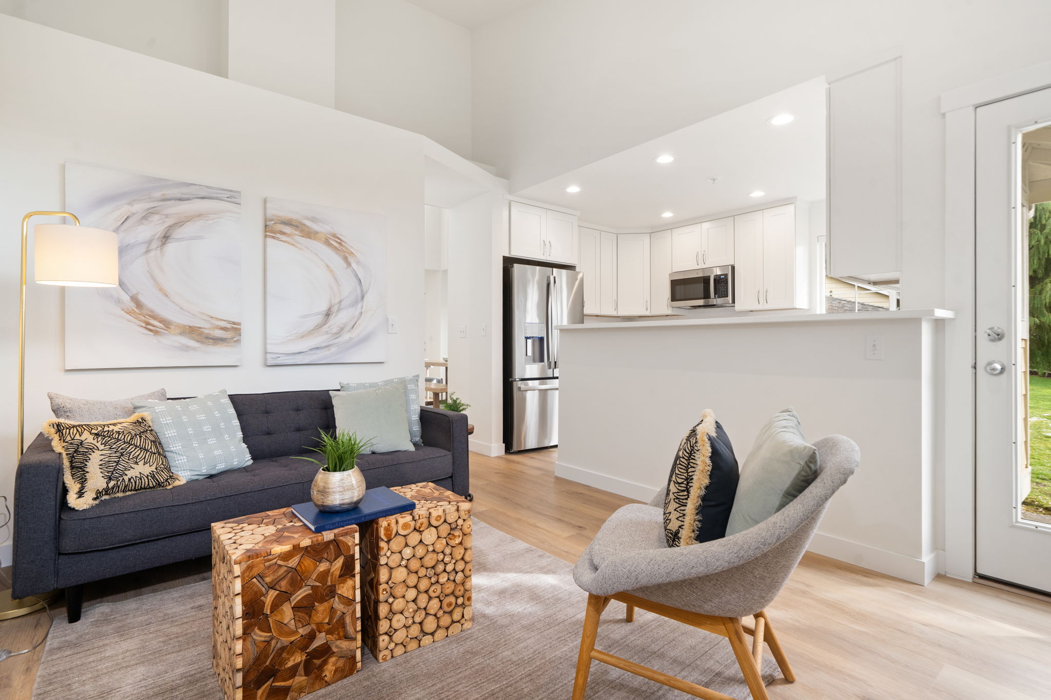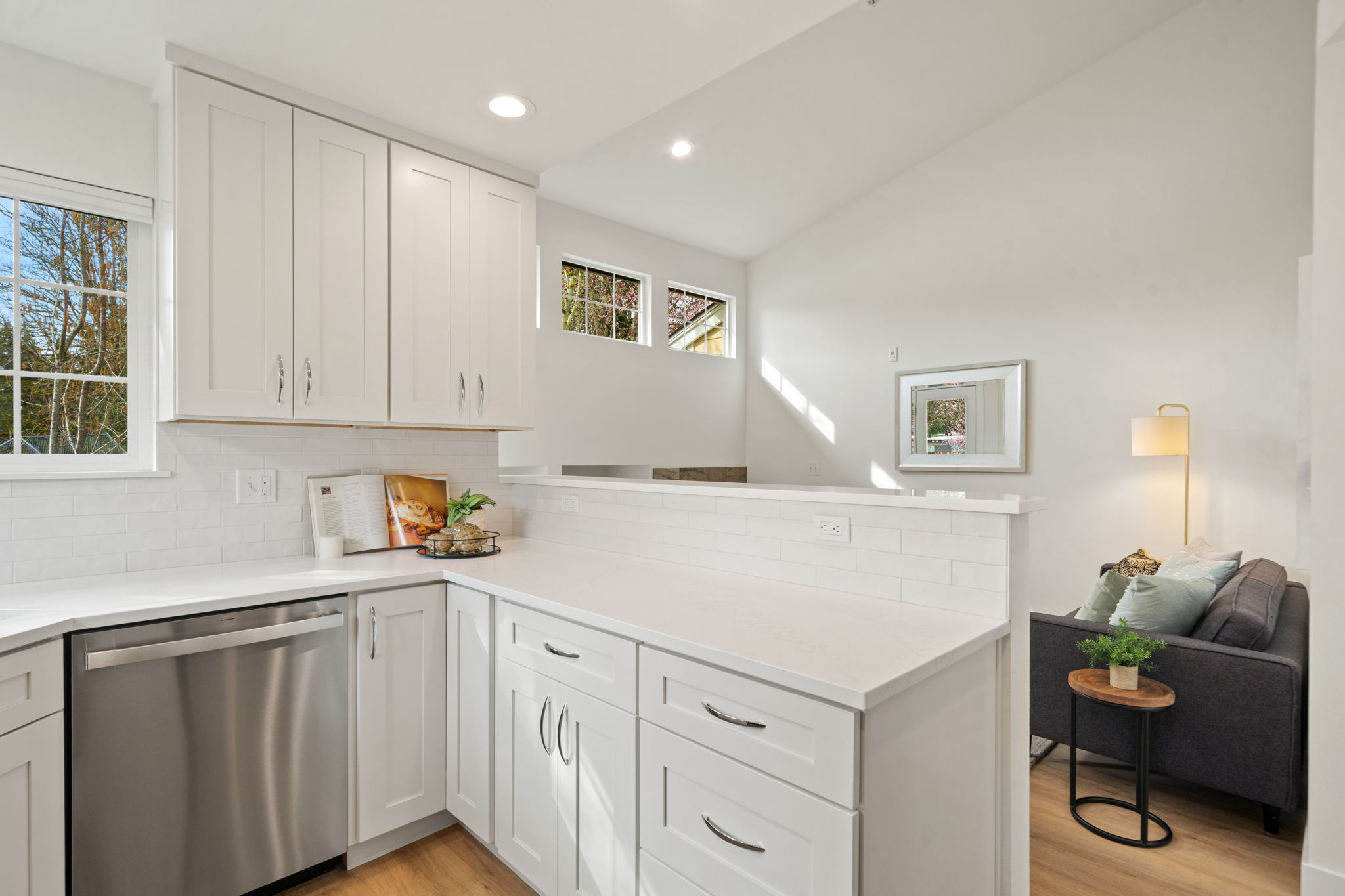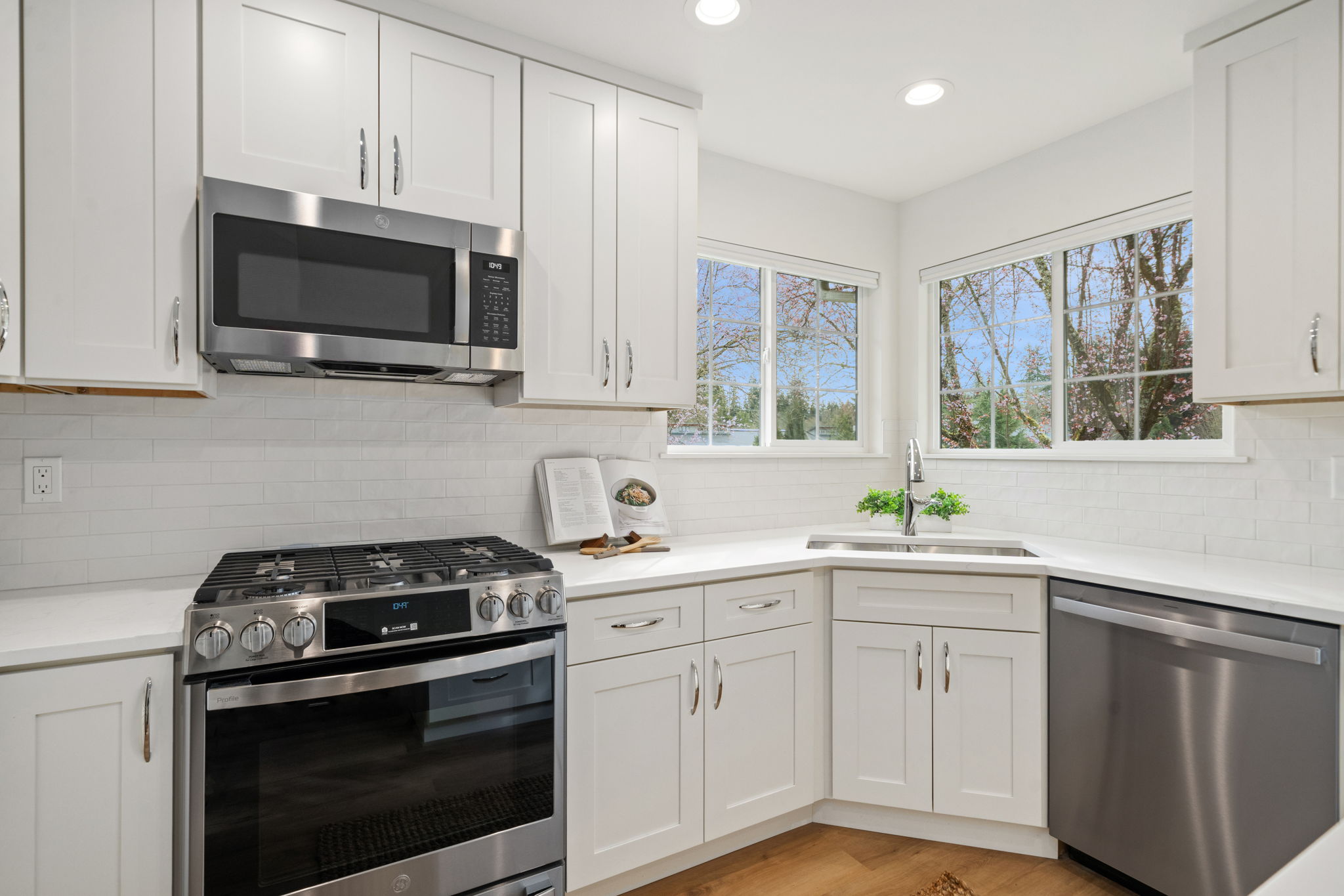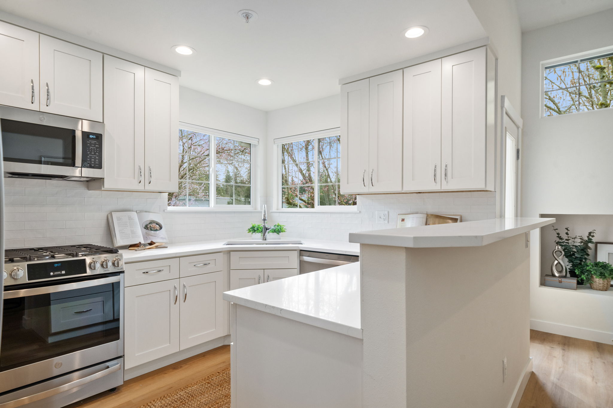 Quality Remodel 2026! Attention paid to every detail including a Brand-New Quality Kitchen with soft-close cabinets, quartz counters & subway tile backsplash - All New Stainless Appliances, New Flooring throughout (Quality Waterproof LVP on main & Fresh Carpet on 2nd level), New Trane Gas Furnace, New Trane Full House A/C, Bradford H2O Tank, Fresh Paint, Updated Lighting, New Bradford Toilets, plus fresh blinds and more! The welcoming floor plan features soaring ceilings, abundant natural light, a cozy gas fireplace, and a main-floor primary suite with en-suite bath (separate tub & stall shower) plus walk-in closet. Generous secondary bedrooms and a loft provide flexible space for guests, office, or hobbies, along with a convenient full hall bath.Seamless indoor-outdoor living with a private patio off the kitchen for BBQs, ideal for relaxing or morning coffee. The main-level laundry room boasts a brand new GE full-size washer and dryer and leads to a pristine freshly painted two-car garage with ample storage and attic access. A peaceful residential setting just minutes from Big Finn Hill Park, St. Edward State Park, Lake Washington, neighborhood trails, schools, shops, restaurants, and everyday amenities, with convenient access to all that Kirkland & Juanita has to offer.A rare opportunity to enjoy low-maintenance living in a well-kept, move in ready, intimate community with a true neighborhood feel—offering the comfort of a home without the upkeep of a larger property.