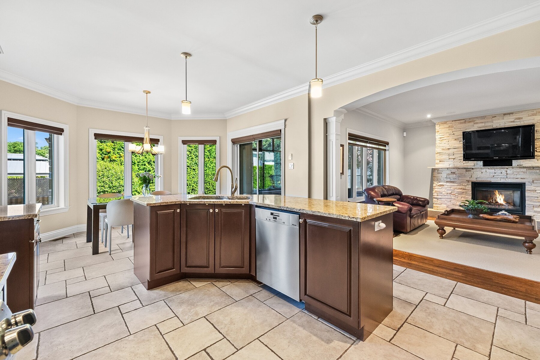 Located on a prestigious & quiet street,this spacious 4+2 bedroom home is perfect for families seeking comfort and functionality. Enjoy an open kitchen with dinette area drenched in natural sunlight, an impressive 3-season solarium, and a cozy family room with gas f/p. 3+1 bathrooms with a main floor laundry room.The versatile basement offers a large playroom, potential gym, and two bedrooms ideal for a home office.Set on a beautifully landscaped 10,325 sq ft lot with pavé,fenced yard, saltwater pool, gazebo, outdoor storage, sprinkler system, and paved driveway. Close to Royal Montréal Golf Club, Jacques-Bizard school, library, and more.