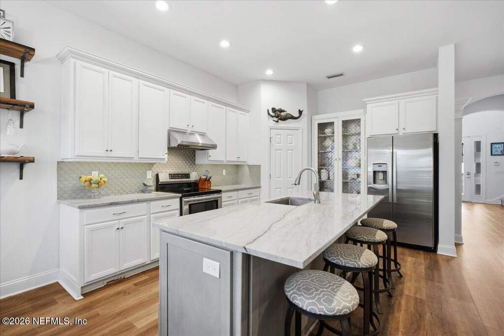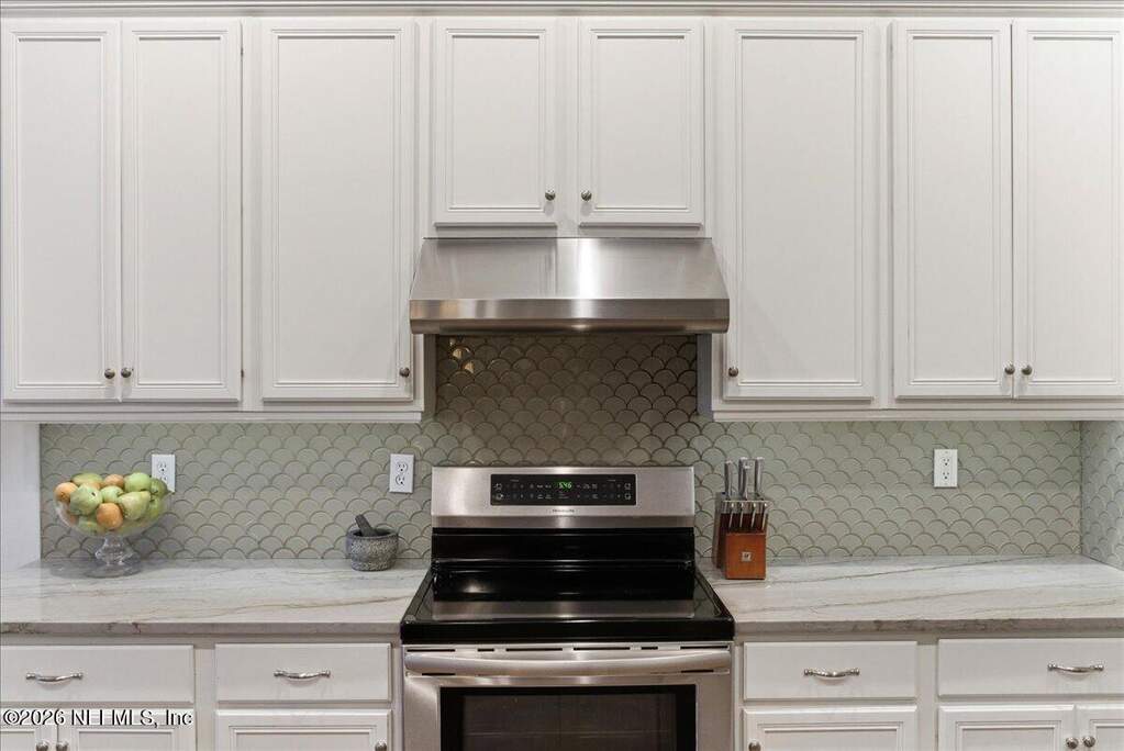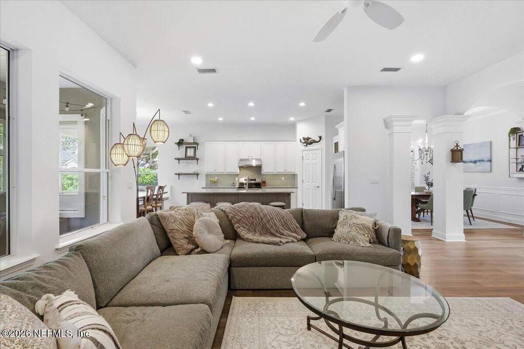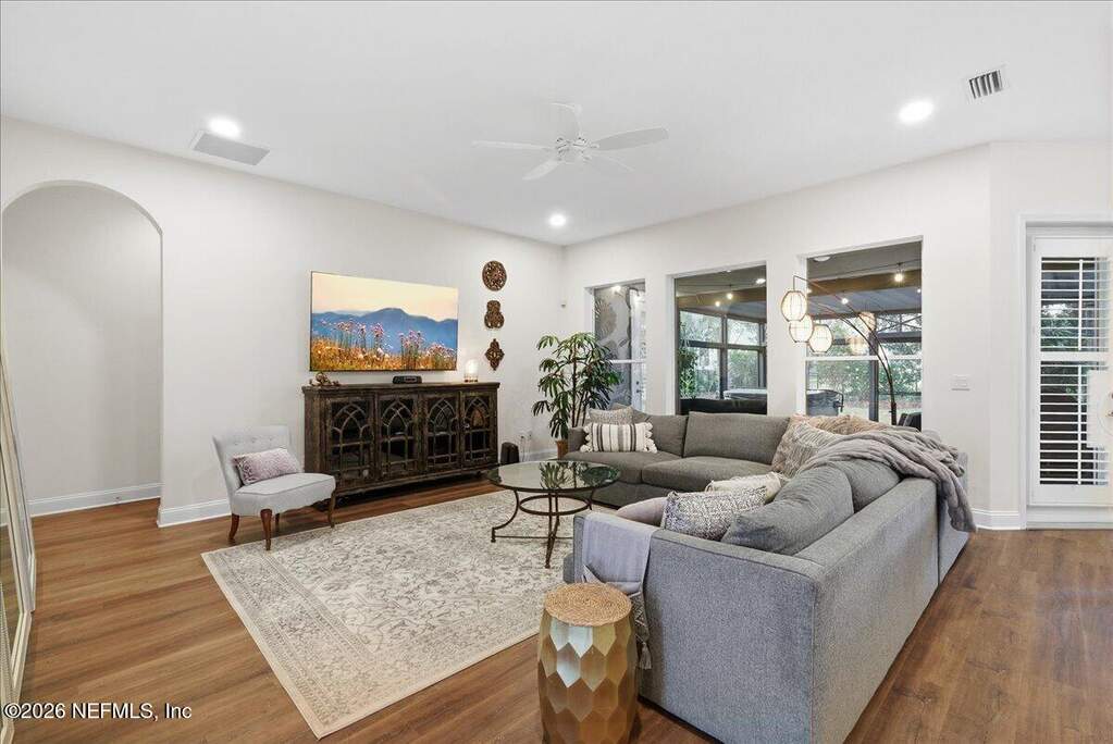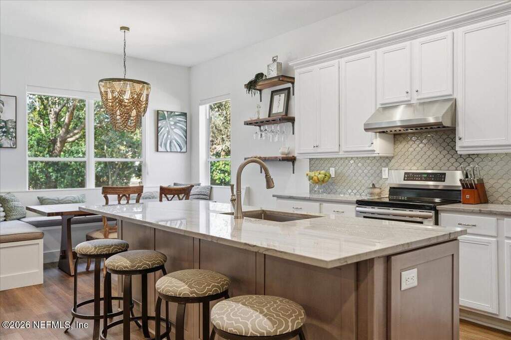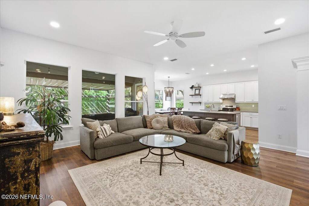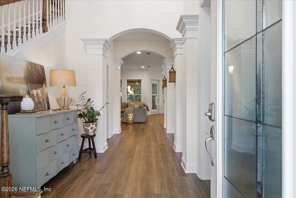 Located in the exclusive gated community of Coastal Oaks in Nocatee, this beautifully maintained 4 bedroom, 3.5 bath home offering 3,078 sq ft sits on a desirable corner lot and blends comfort, style, and the sought-after Nocatee lifestyle. Freshly painted with an open layout, the home features a first-floor primary suite, private office, formal dining room, and a beautifully updated kitchen with quartz countertops, island, and breakfast nook with built-in banquette seating. Updated bathrooms and designer lighting add a modern touch throughout. Enjoy outdoor living on the screened pergola overlooking a private backyard with hot tub, perfect for relaxing or entertaining. A 3-car garage with overhead storage and polyaspartic flooring completes the home. Coastal Oaks is Nocatee's only community with a 24-hour staffed gate, offering resort-style amenities just 15 minutes from Mickler's Beach, plus parks, trails, clubhouse, fitness center, pools, and top-rated St. Johns County