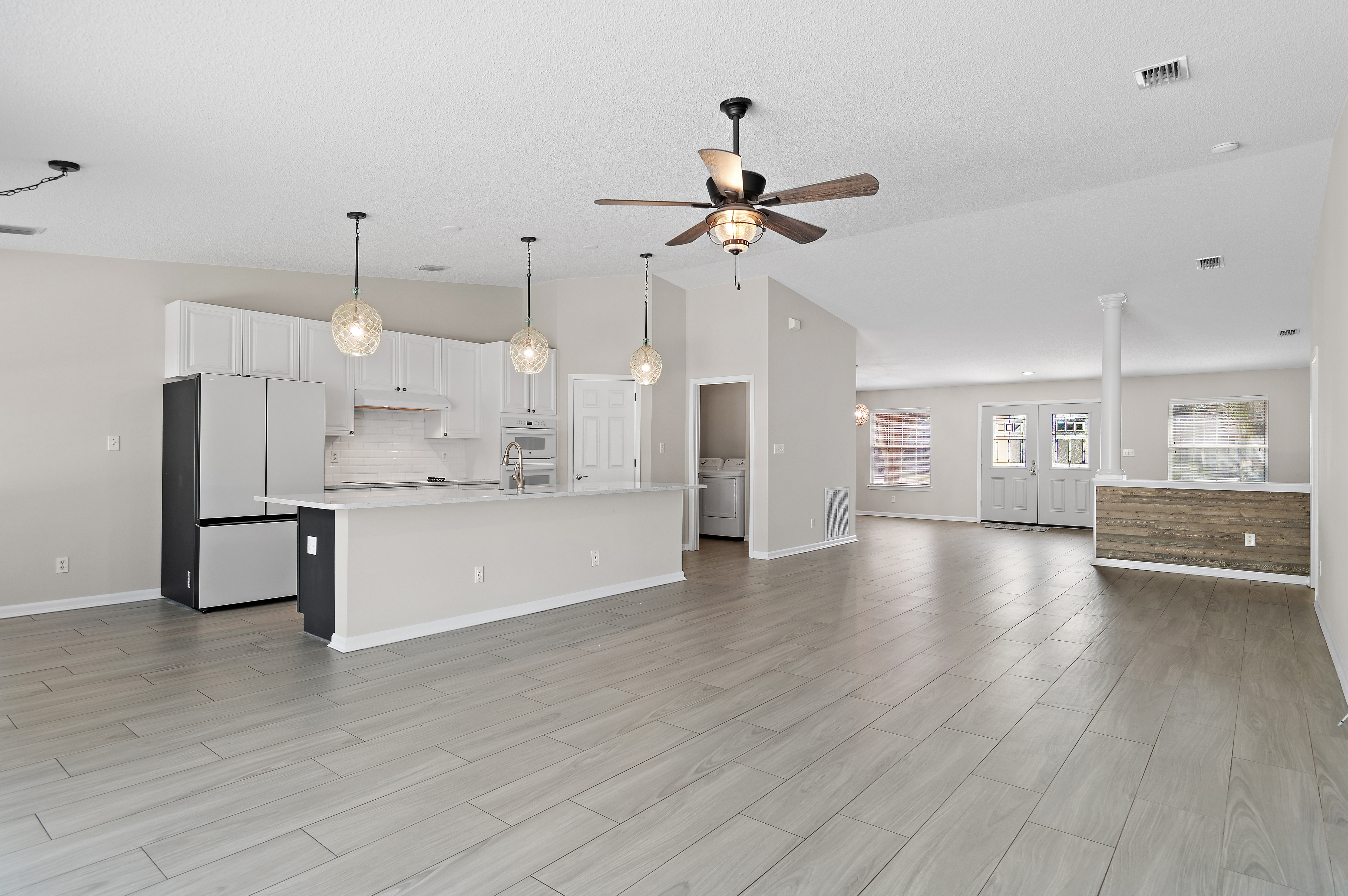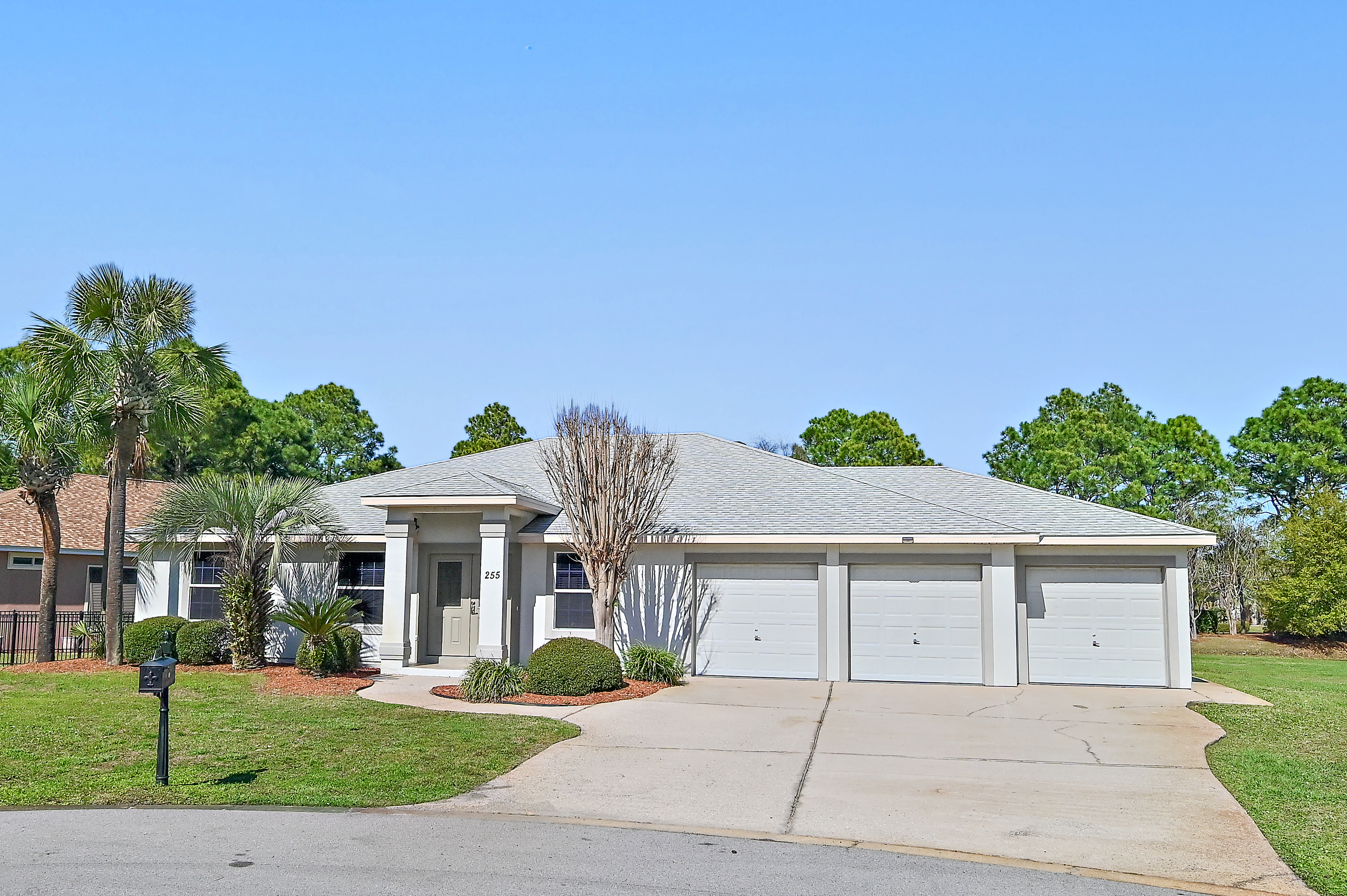 Positioned on the largest homesite in the neighborhood, this beautifully maintained lakefront residence offers an exceptional sense of space, privacy, and comfort within the gated community of Emerald Lakes. Located on a quiet cul-de-sac and spanning two lots, the property enjoys peaceful water views and an uncommon level of breathing room rarely found in this centrally located coastal setting. A thoughtful split floor plan and open living areas create an easy flow for both everyday living and entertaining, while the three-car garage with a dedicated 10-by-10 work area provides valuable storage and flexibility. Inside, the home showcases an array of modern updates and conveniences. The kitchen has been refreshed and features quartz countertops throughout. The primary bath has been stylishly updated, complementing the home’s cohesive interior design. Tile flooring runs throughout the residence, creating a clean, low-maintenance environment with no carpet. Additional improvements include an updated hot water heater, HVAC system, and new washer and dryer. The interior and garage have also been freshly painted, and the garage features durable epoxy flooring for a polished finish. Outdoor living is a defining feature of this property. A remarkable 25-by-60 screened lanai stretches along the lakeside of the home, creating an expansive covered retreat for relaxing or hosting gatherings. Recently rescreened with new doors, the space includes an outdoor television, audio system, and speakers for effortless entertaining. The private pool and surrounding deck have been resurfaced, providing a refreshed setting for warm Florida afternoons. A fenced side yard offers additional space for pets or recreation, while the portable generator connection with a manual transfer switch adds an extra layer of preparedness and convenience. Practical upgrades continue with a roof replacement and a Sentricon bait system maintained through Florida Pest Control. The home is also the only property in the neighborhood featuring a three-car garage, making it a rare opportunity within this established community. Emerald Lakes offers a gated environment with low HOA fees and a range of amenities designed for an active coastal lifestyle. Residents enjoy a community pool, park, tennis and pickleball courts, along with the convenience of a traffic light at Highway 98 for easy access. The location places the home within biking distance of the beach and just minutes from Destin Commons, Sandestin, and Destin Harbor, providing quick access to shopping, dining, entertainment, and the sugar-white sand that defines the Emerald Coast.