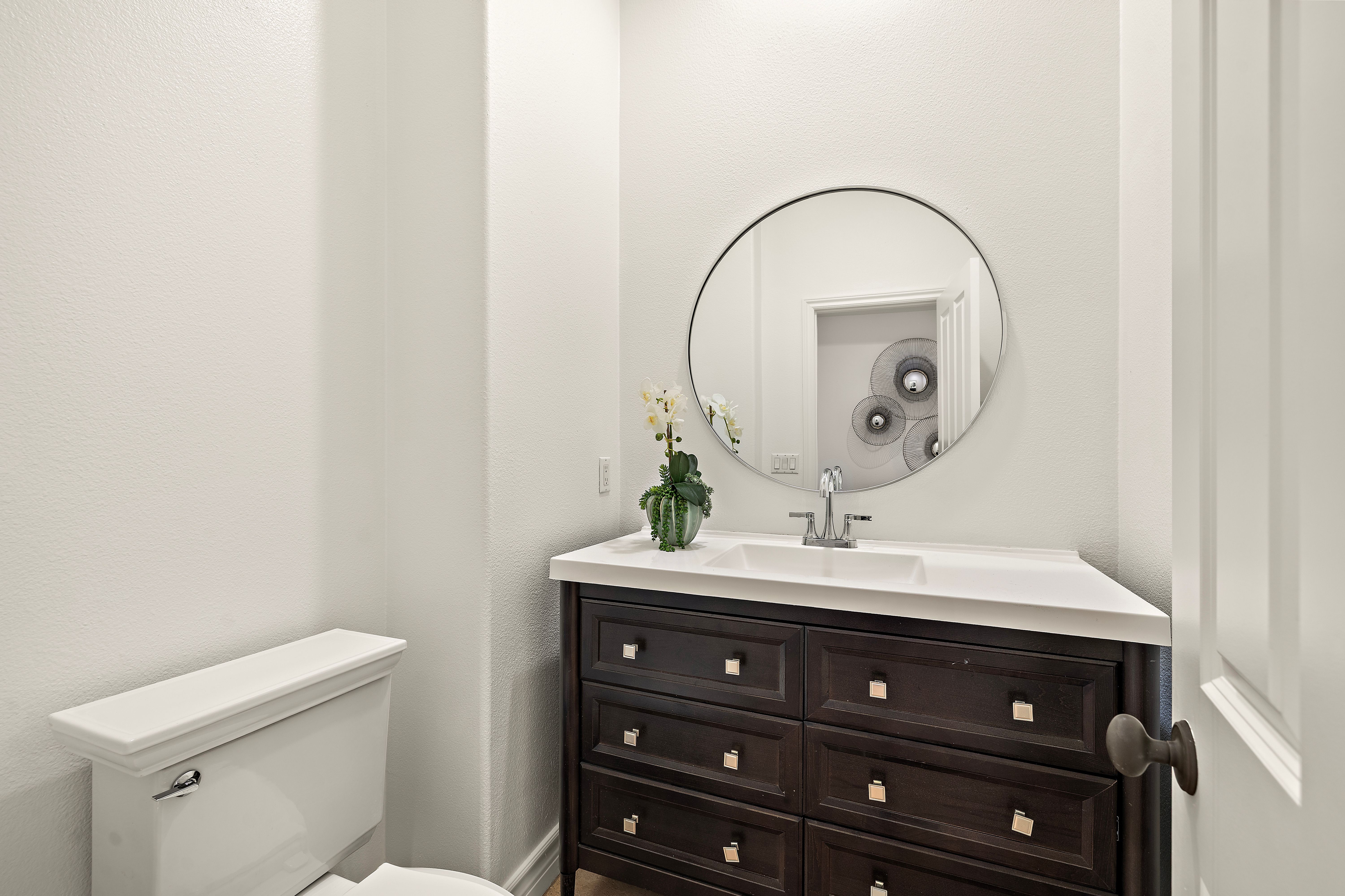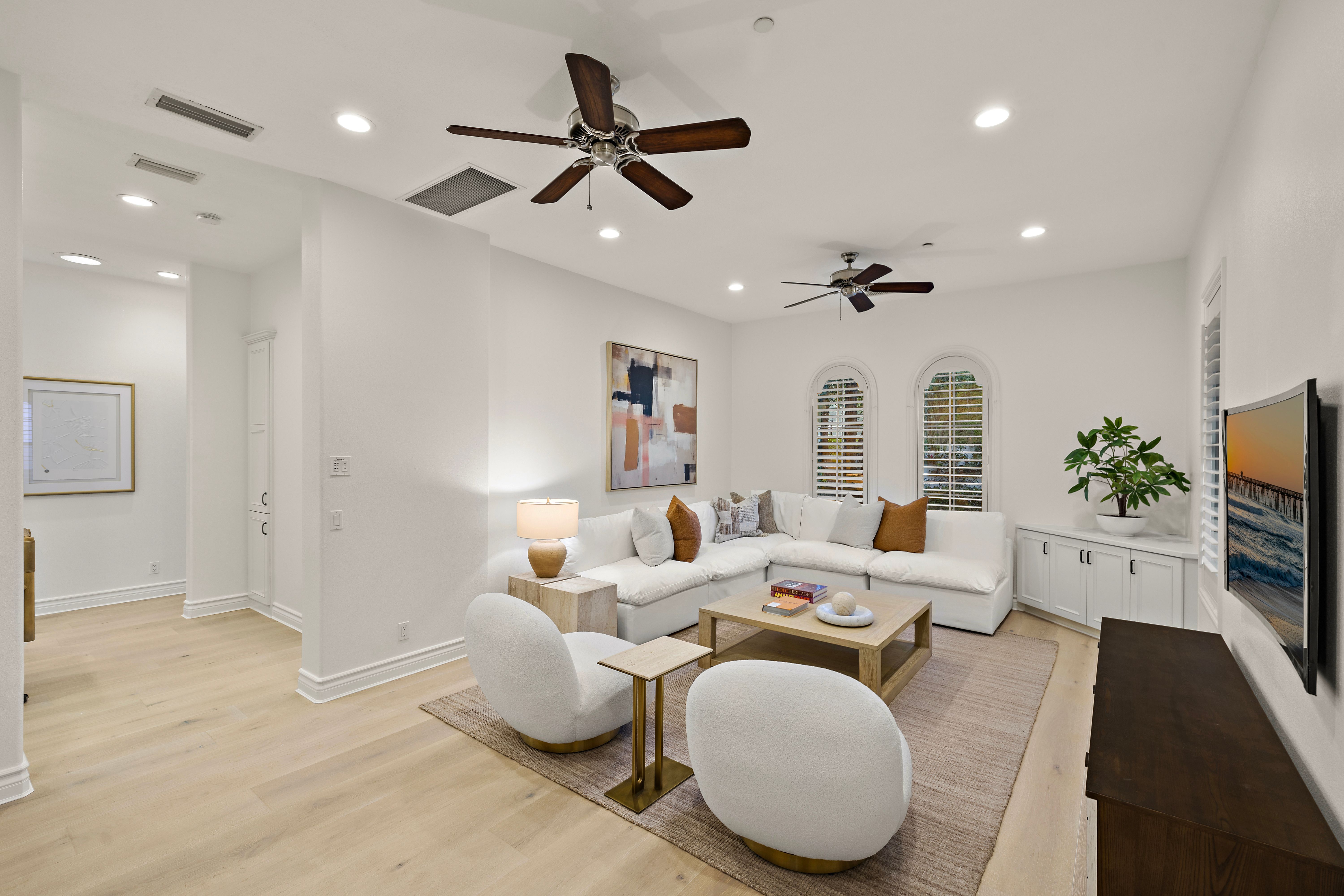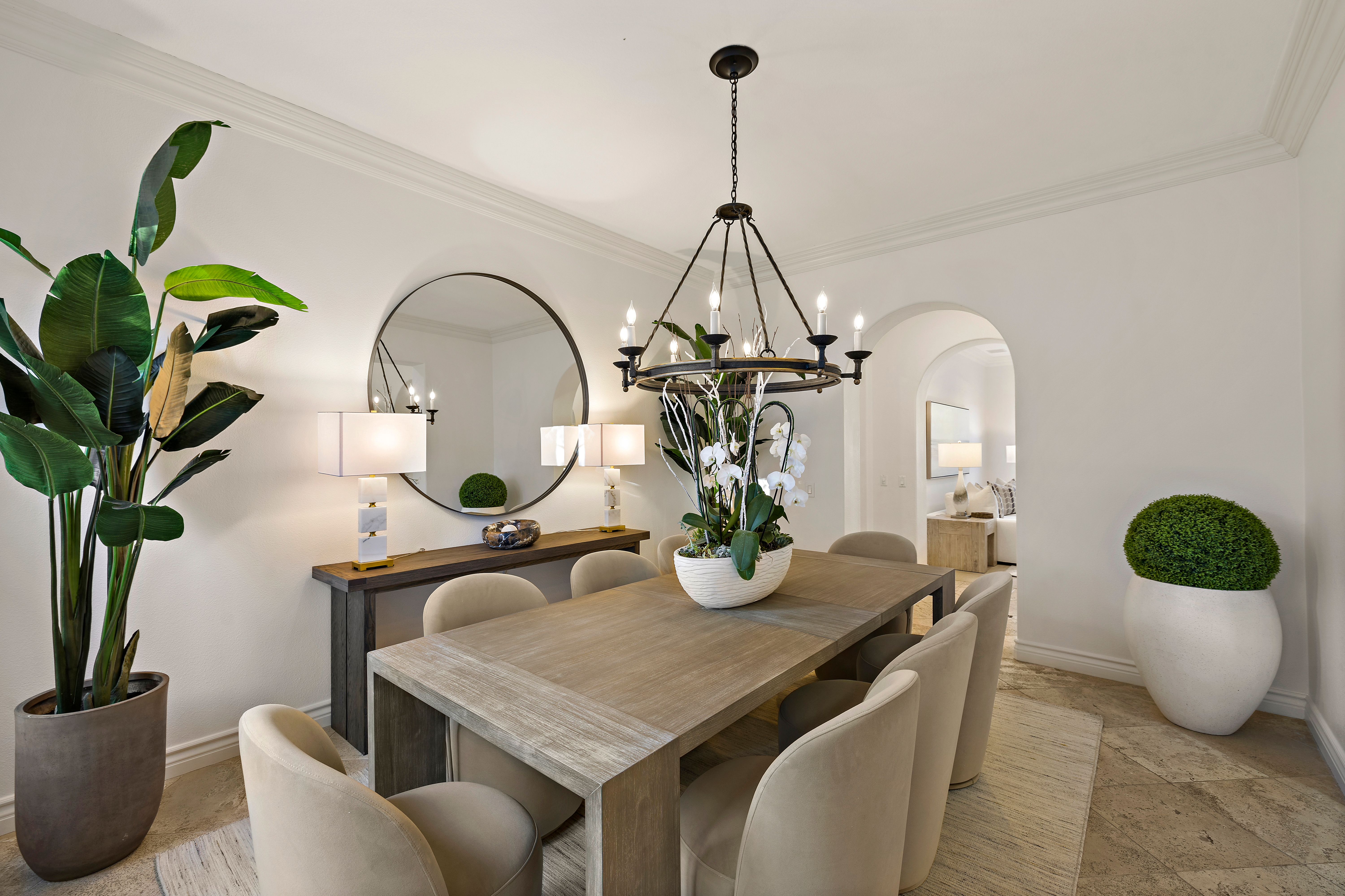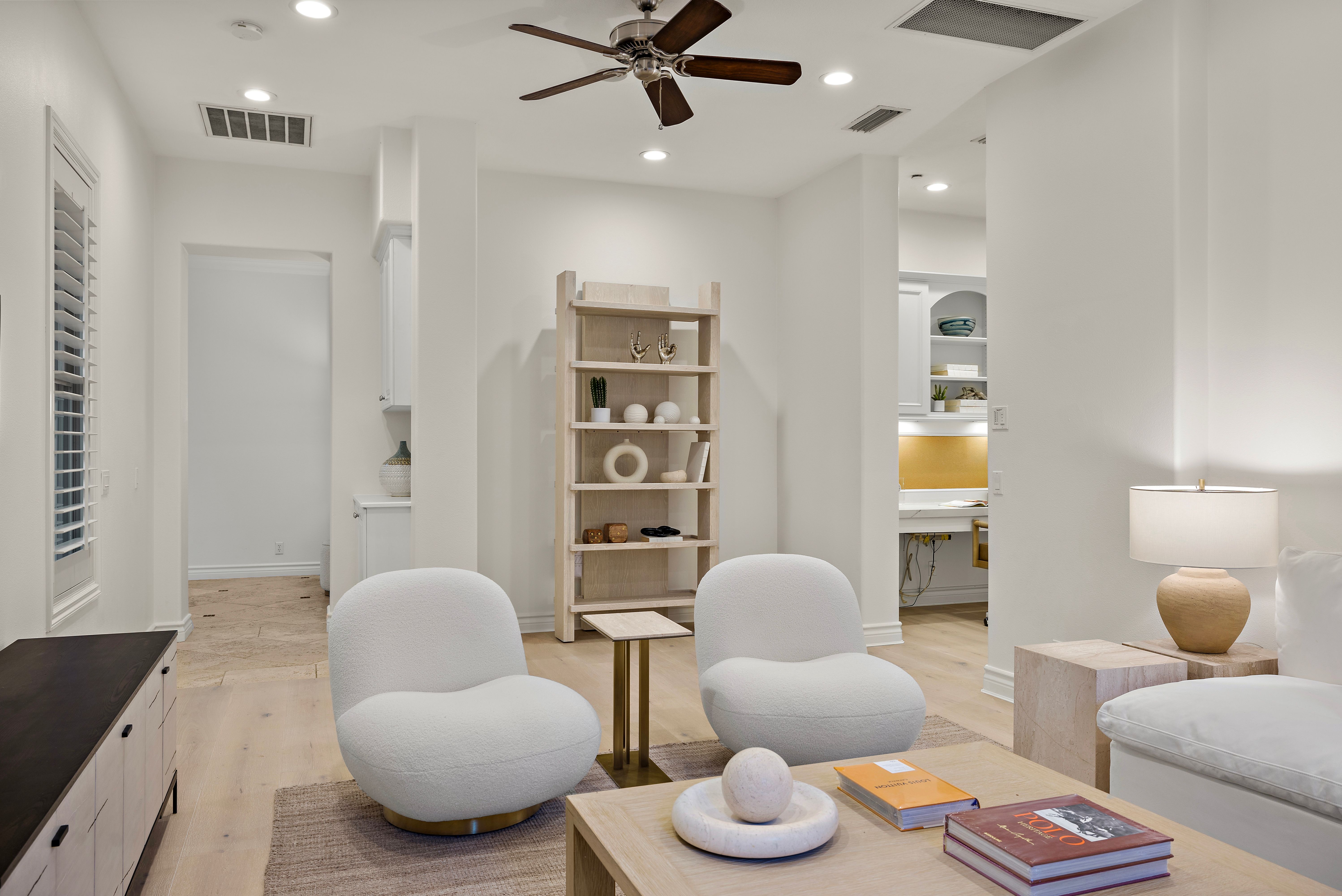 Set on one of the largest lots in the coveted, gate guarded community of Emerson, this rarely available single level estate offers 4,333 ± sf of refined living on an expansive 18,030 ± sf cul de sac lot. Nestled for exceptional privacy, the home is surrounded by avocado groves with city light and mountain views providing a quiet, scenic backdrop to everyday living. Step through a tranquil atrium and breezeway into the formal living and dining rooms, where elegance meets comfort. The chef’s kitchen, beautifully remodeled with a Black Leathered Granite island, Viking cooktop and microwave, Thermador double oven, KitchenAid dishwasher, and Dacor built in refrigerator, flows seamlessly into the informal dining and family room, both opening effortlessly to the backyard oasis. Outside, the estate is designed for relaxation and entertaining. Unwind in the sparkling pool and spa, gather around the built in fireplace, or enjoy alfresco dining at the fully equipped outdoor kitchen. The expansive grounds now feature generous, lush grassy areas, perfect for recreation, gatherings, or simply enjoying the home’s remarkable sense of space and privacy. The home has been thoughtfully expanded to include an additional bedroom and generous bonus room, ideal for extended family or guests. Built with steel beams for enduring stability and featuring dual whole house fans with independent controls, the residence combines durability with sophisticated luxury. This exceptional single level estate offers a rare blend of scale, privacy, and understated elegance within one of the area’s most desirable communities.