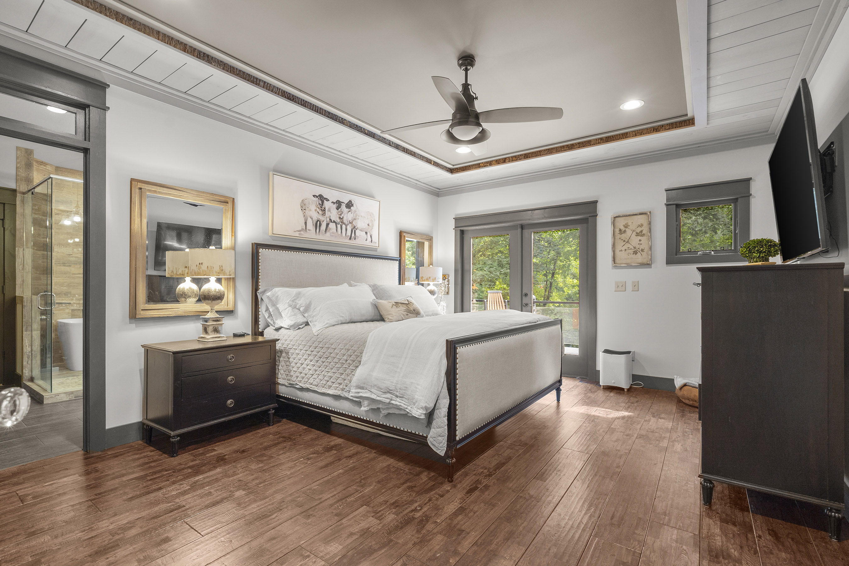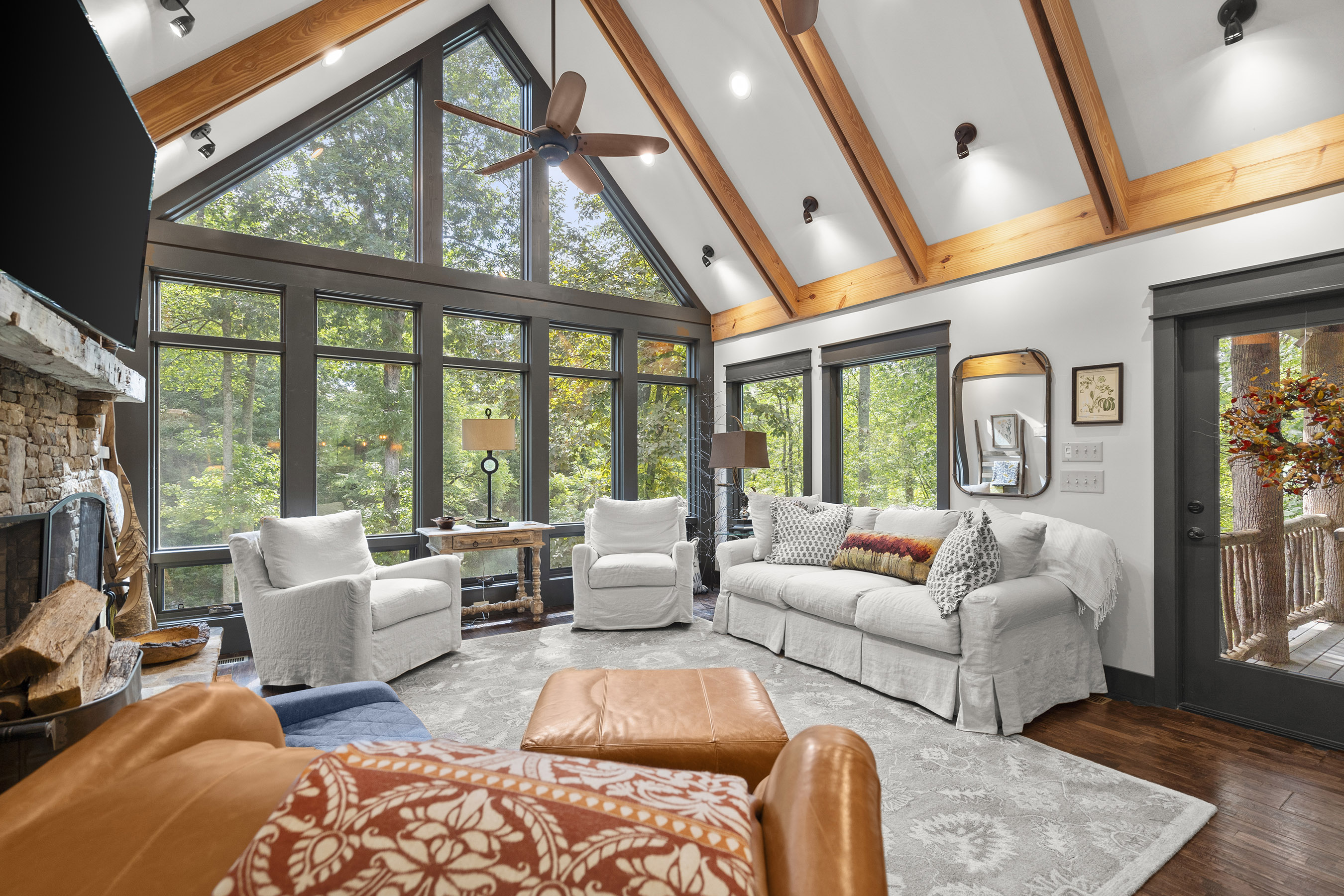 Escape to the heart of North Georgia wine country in this stunning four bedroom, four and half bathroom creekside luxury chalet, perfectly nestled in the mountains and less than five minutes from local wineries, apple orchards, and charming small-town attractions. Designed for both comfort and sophistication, this home combines rustic elegance with high-end finishes throughout. The main level welcomes you with soaring ceilings, walls of glass, and abundant natural light that frames beautiful views of Turkey Creek flowing just outside. Multiple stone fireplaces add warmth and ambiance, while an open floor plan seamlessly connects the great room, dining area, and chef's kitchen-ideal for entertaining or cozy evenings at home. This retreat offers space for everyone, with four spacious bedrooms each featuring a dedicated bath. The expansive primary suite is a private sanctuary, complete with a spa-like bathroom featuring an oversized tile shower, soaking tub, double vanities, and a walk-in closet. A bonus room offers flexible use as a home office, library, or playroom. For those who love to entertain, the lower level boasts a movie theatre and generous living space perfect for gatherings. Step outside to enjoy beautifully landscaped grounds, a creekside firepit, and multiple decks where you can relax and take in the fresh mountain air. Complete with a barn/workshop, a fenced area for your furry friends, and complete privacy, this would be a perfect full-time residence, private getaway, or income-producing investment. This North Georgia treasure is ready to welcome you home!