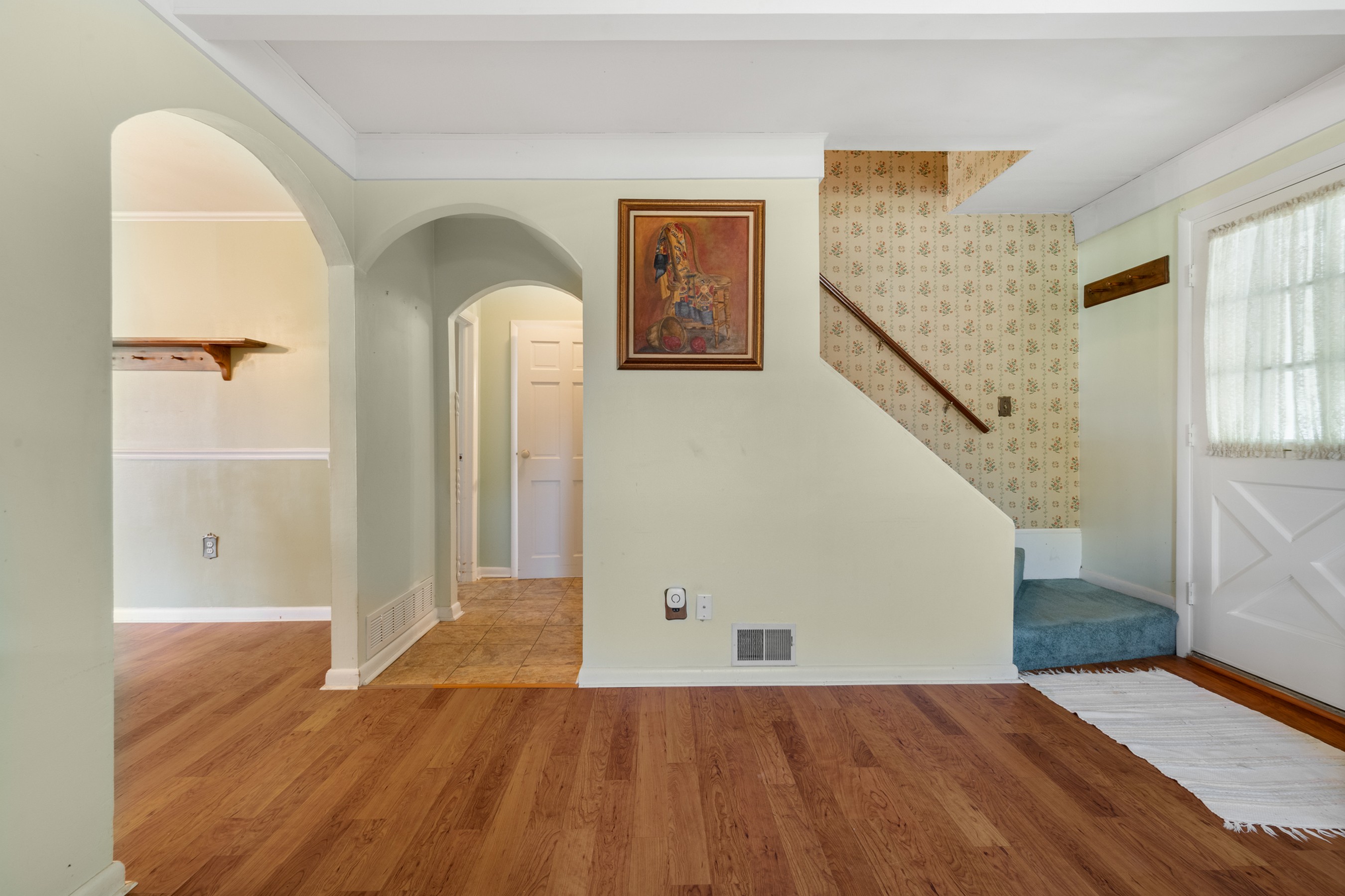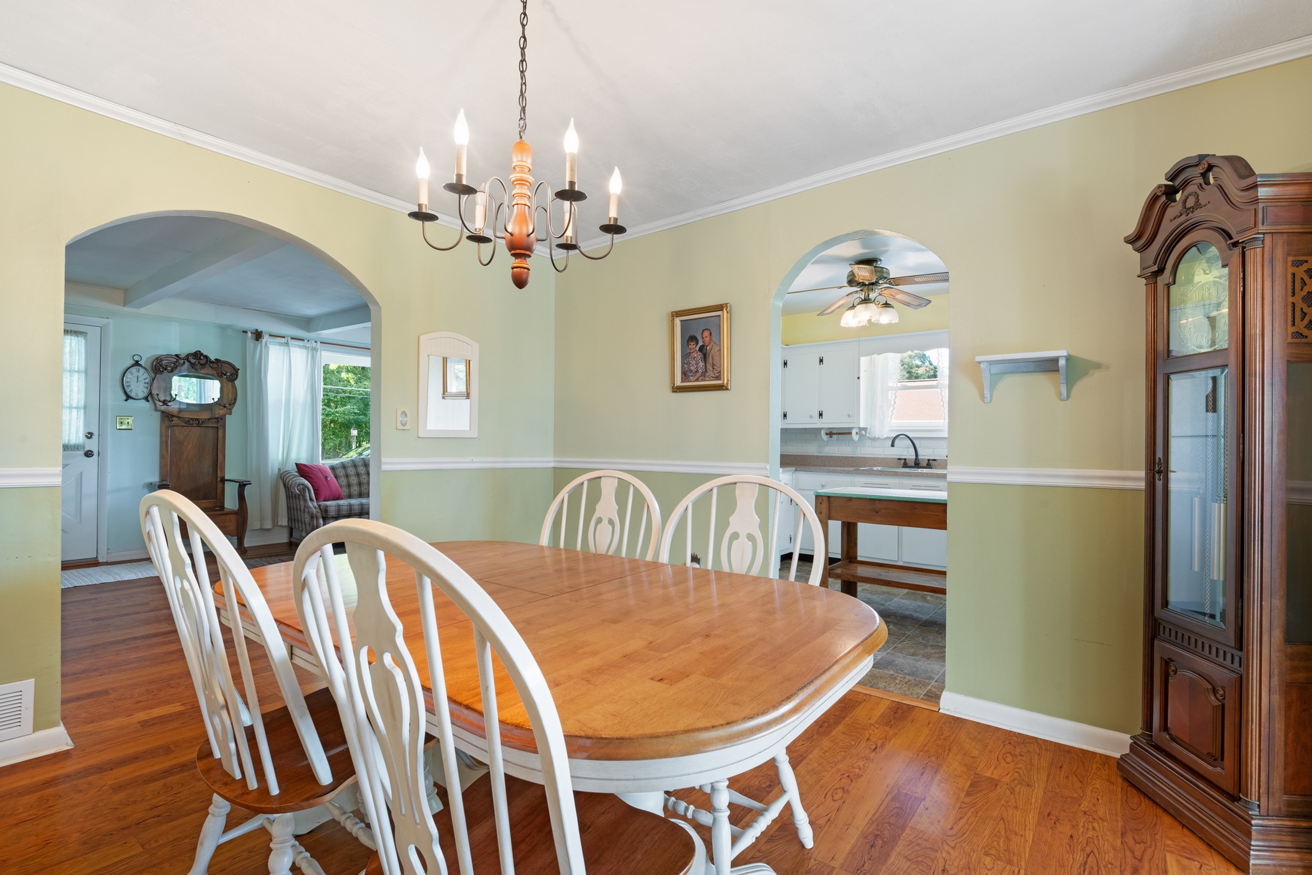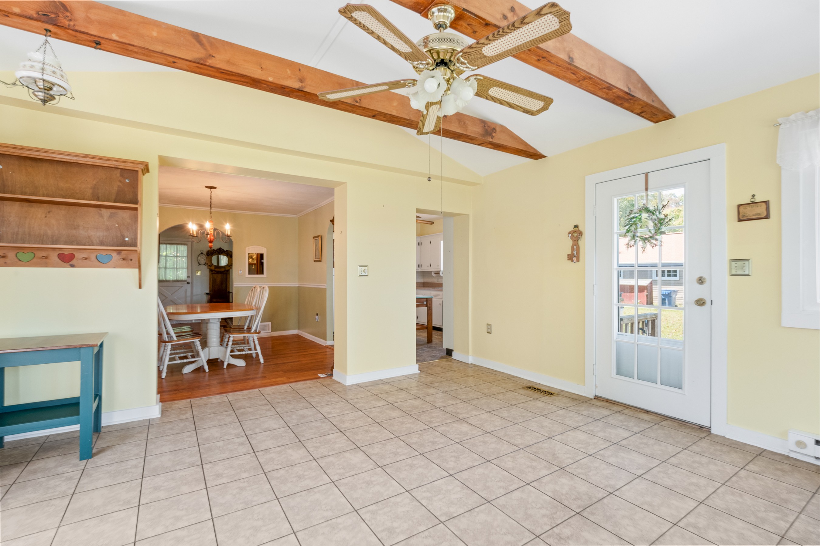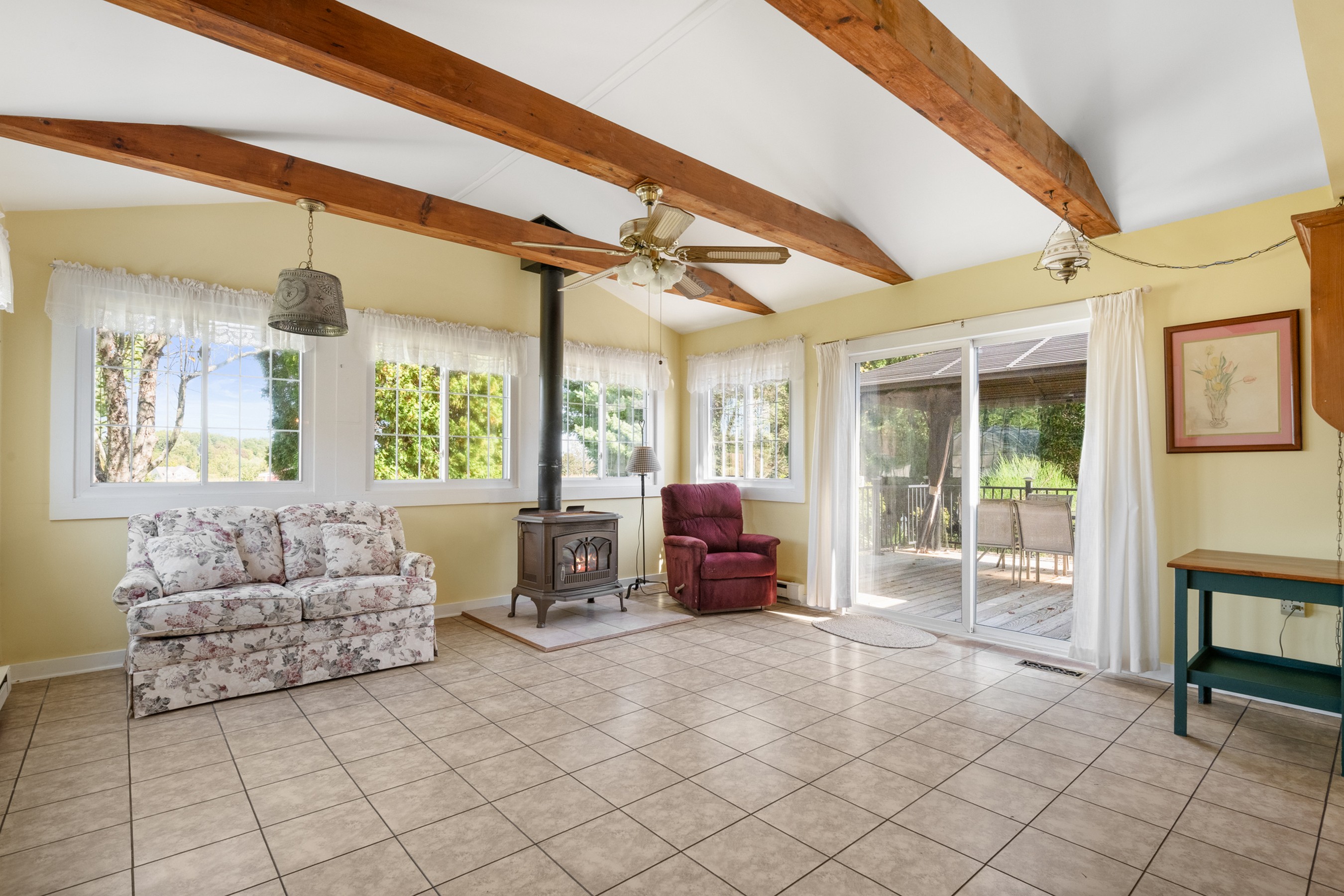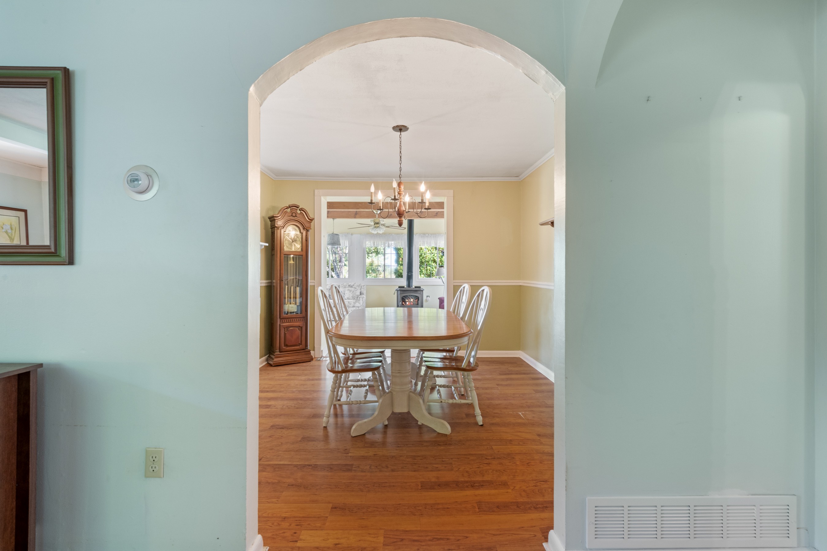 Charming Cape Cod residence, nestled in a serene suburban setting seamlessly blends classic architectural with tons of natural light, and a warm and inviting atmosphere. Beamed ceilings adorn the large living room that leads to the formal dining room and fully equipped kitchen, setting the stage for memorable meals. The spacious and bright family room, conveniently located off the kitchen, boasts tons of windows, a ceiling fan, vaulted and beamed ceilings, and provides access the to the deck, back yard, and patio. The remaining main level provides flexibility for your lifestyle with a bedroom with hardwood flooring, a full bathroom with a walk-in ceramic shower with glass doors and enjoy the convenience of a main-level laundry room, with a full-size washer and dryer and plenty of cabinetry. The upper-level features two cozy bedrooms with dormers and hardwood flooring. The large unfinished basement is your blank canvas. Outside, the expansive 0.48-acre lot offers a beautifully landscaped front yard and a level, open space perfect for outdoor activities. Relax on the front porch, the 18x16 deck with canopy or the paver patio with a built-in grill, soaking in panoramic views of the scenic pasture and corn field beyond. The property also includes a shed with electricity for additional storage and creative projects. The home has ample parking for five vehicles as well as handicap accessible ramps to enter the home. Embrace the tranquility of suburban living while being just moments away from local amenities.