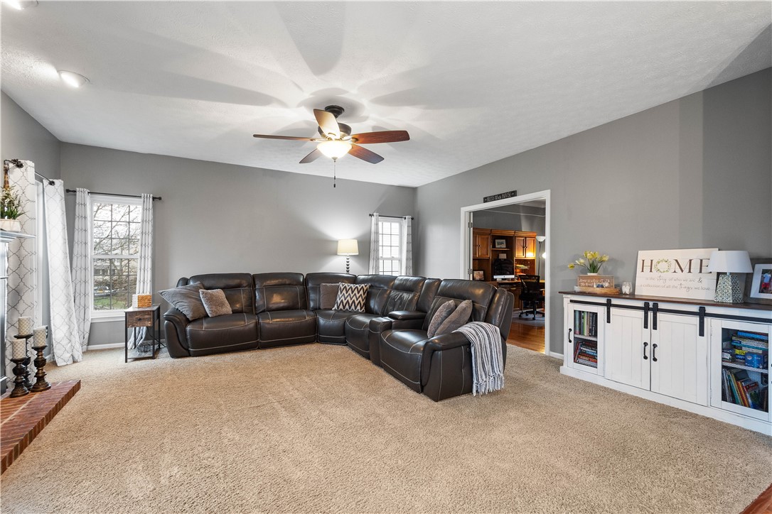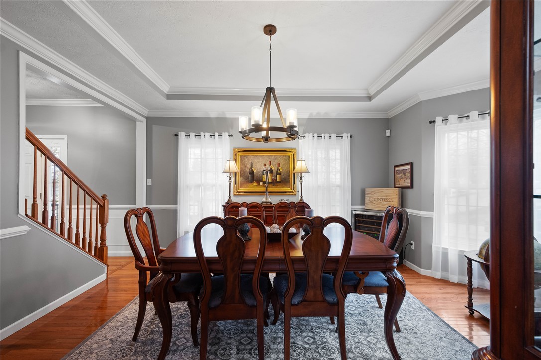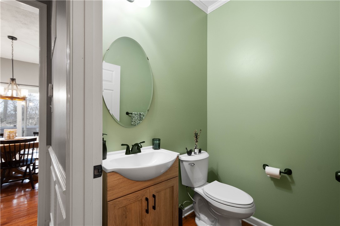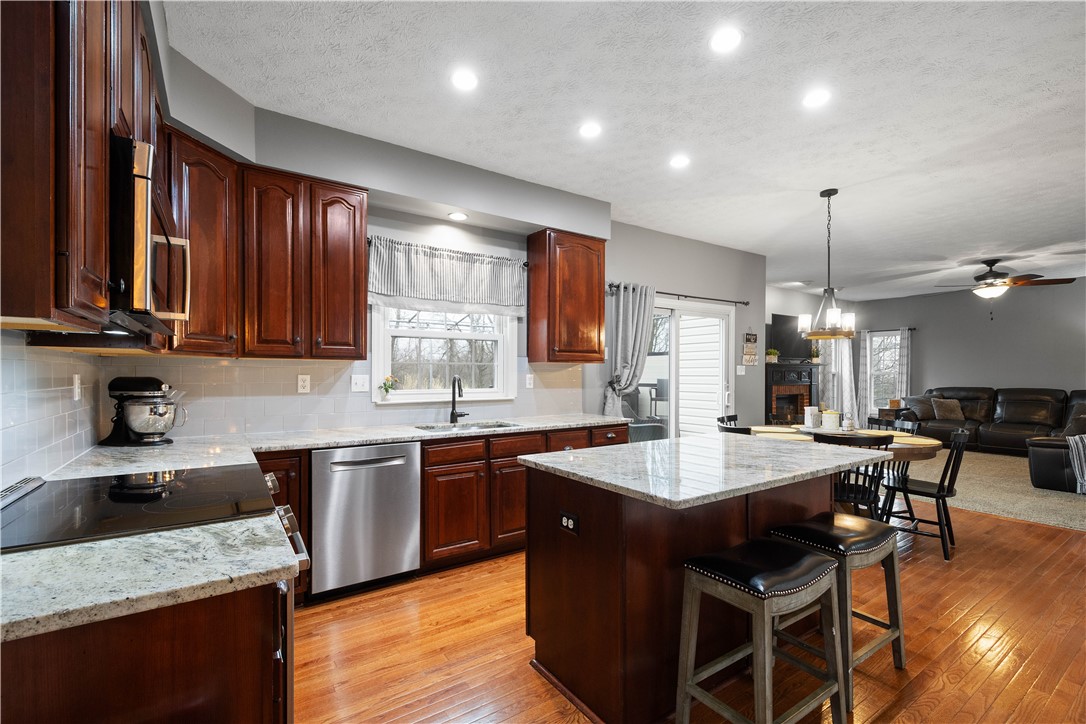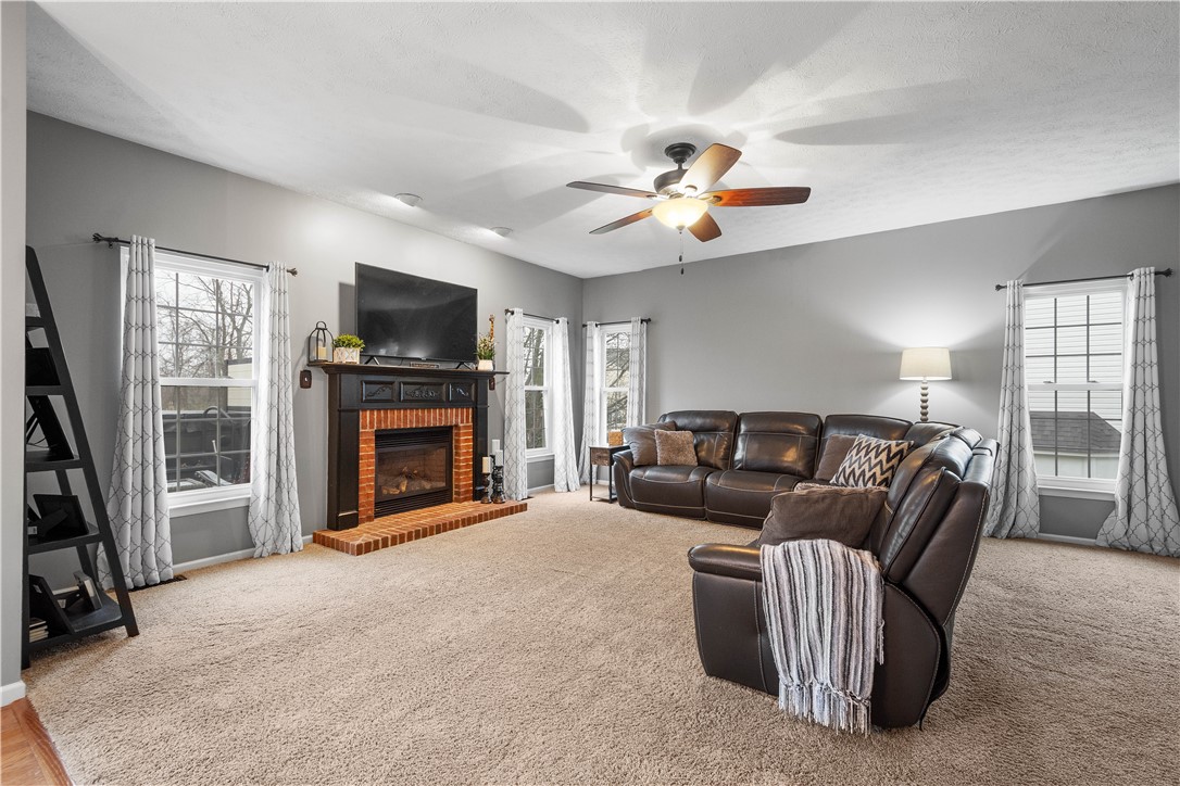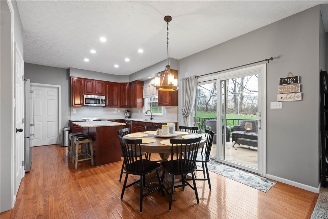 Welcome to this stunning 4-bedroom, 3.5-bath home in the highly sought-after Canon-McMillan School District. Featuring exceptional curb appeal and an inviting covered front porch, this residence offers a perfect blend of elegance and comfort. The main level boasts a spacious, open-concept kitchen that flows seamlessly into a bright family room anchored by a cozy gas fireplace. A versatile flex room serves as the perfect home office or playroom, complemented by a dedicated formal dining room for holiday gatherings. The upper level features a massive owner's suite with dramatic vaulted ceilings, a large walk-in closet, and a spa-like primary bath with a soaking tub and separate shower. Three additional well-appointed bedrooms and a full guest bath complete this level. For even more living space, the finished lower level game room includes a third full bathroom, ideal for a media room or home gym. Step outside to your private outdoor oasis, featuring an expansive deck with a partial awning for shaded dining and a relaxing hot tub. The rare, level backyard backs to a serene woodland view, providing a peaceful and private natural backdrop. This home truly offers the complete package in a prime location.
