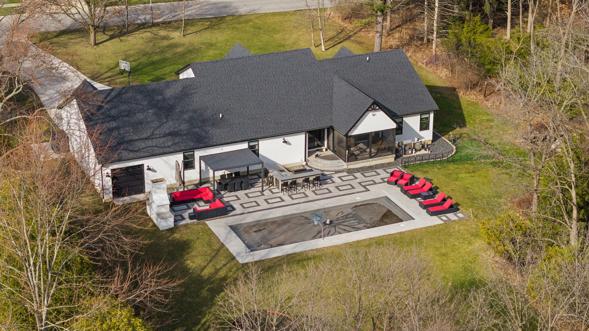 Exceptional 1.86-Acre Estate in Lowell Experience ranch-style living in this custom built 6-bedroom, 4-bath home offering approximately 4,100 sq ft of thoughtfully designed space. Set on a rare wooded estate-sized lot, this home provides a peaceful retreat with no HOA, mature hardwoods, and tranquil wildlife views. Step into your private outdoor haven featuring a 1641 heated in-ground pool, brick wood-burning fireplace, screened porch, and custom Unilock patio with integrated paver lighting. A pergola with dimmable bistro lighting and app-controlled landscape lighting creates an elevated, resort-style setting. The gourmet outdoor kitchen includes a 40 in natural gas grill, stainless sink, and refrigerator, ideal for entertaining. Inside, enjoy a chef's kitchen with a large quartz island, double ovens, pot filler, and a spacious walk-in pantry. The primary suite offers a spa-like retreat with a custom walk-in closet, heated towel rack, soaking tub, and ceramic rain shower. The finished basement provides a true second living space with a large family room, two bedrooms, a full bath, plus approximately 1,000 sq ft of unfinished space--ideal for storage, a home gym, or future expansion. Additional highlights include smart wiring throughout, a Generac 22kW whole-home generator, custom mudroom, and a 3.5-car garage with epoxy floors and pass-through bay. Kubota zero-turn mower and all pool and patio furniture included. A rare opportunity offering both immediate livability and long-term potential.