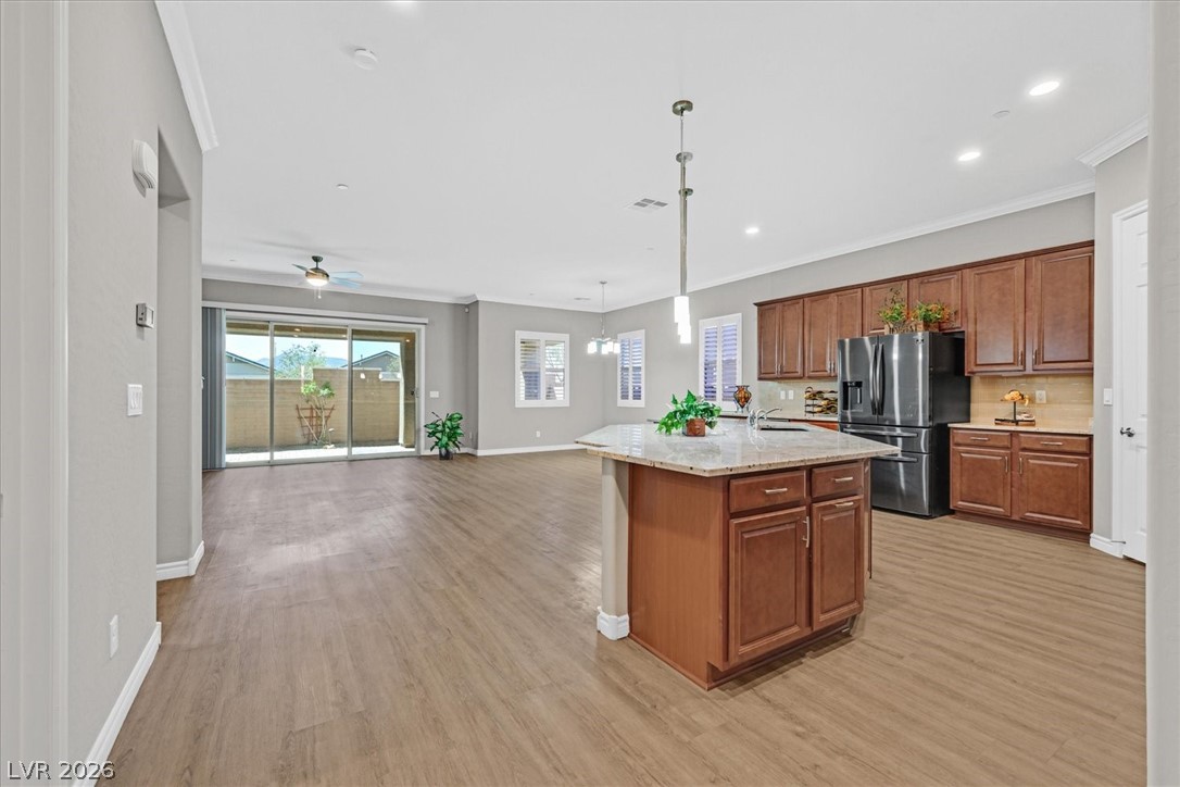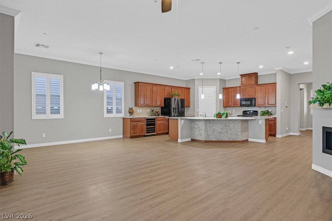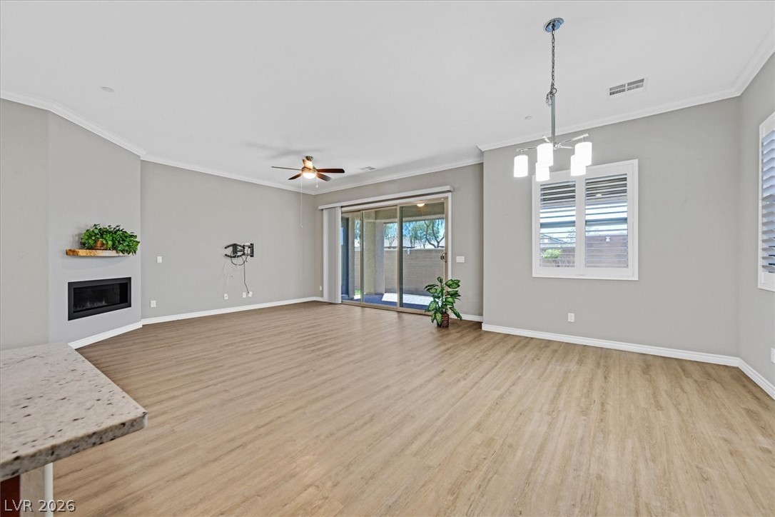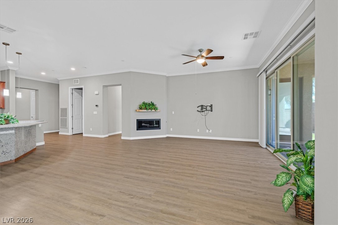 Welcome to this beautifully upgraded home in Heritage at Cadence, a 55+ guard-gated community. A wonderful wonderful Club House with so many amenities- Fitness Club, Cafe, Indoor and Outdoor pools, exercise classes, Bocce Ball, Pickle Ball, Tennis, Art Classes, Game Clubs, Pool Tables, Poker tables, and Bar. This sweet Highly upgraded home has no carpet; it is all wood-like tile floors, Lots of shutters, Crown Molding, a Gas fireplace, Kitchen has Blk and Stainless appliances as well as a wine cooler. Two Bedrooms with their own bathroom. Oversized sliding glass doors for a larger opening to the patio. Large Paver Patio has 3 large electronic pull-down screens to block the sun, and Artificial grass. The primary bedroom has a French door leading to the patio. The Primary Bathroom has a huge shower, a walk-in closet with pass through to Laundry room , two sinks, and vanity. The house also has a Kinetico water filter and softener. Huge Ceiling fan and work bench in the garage