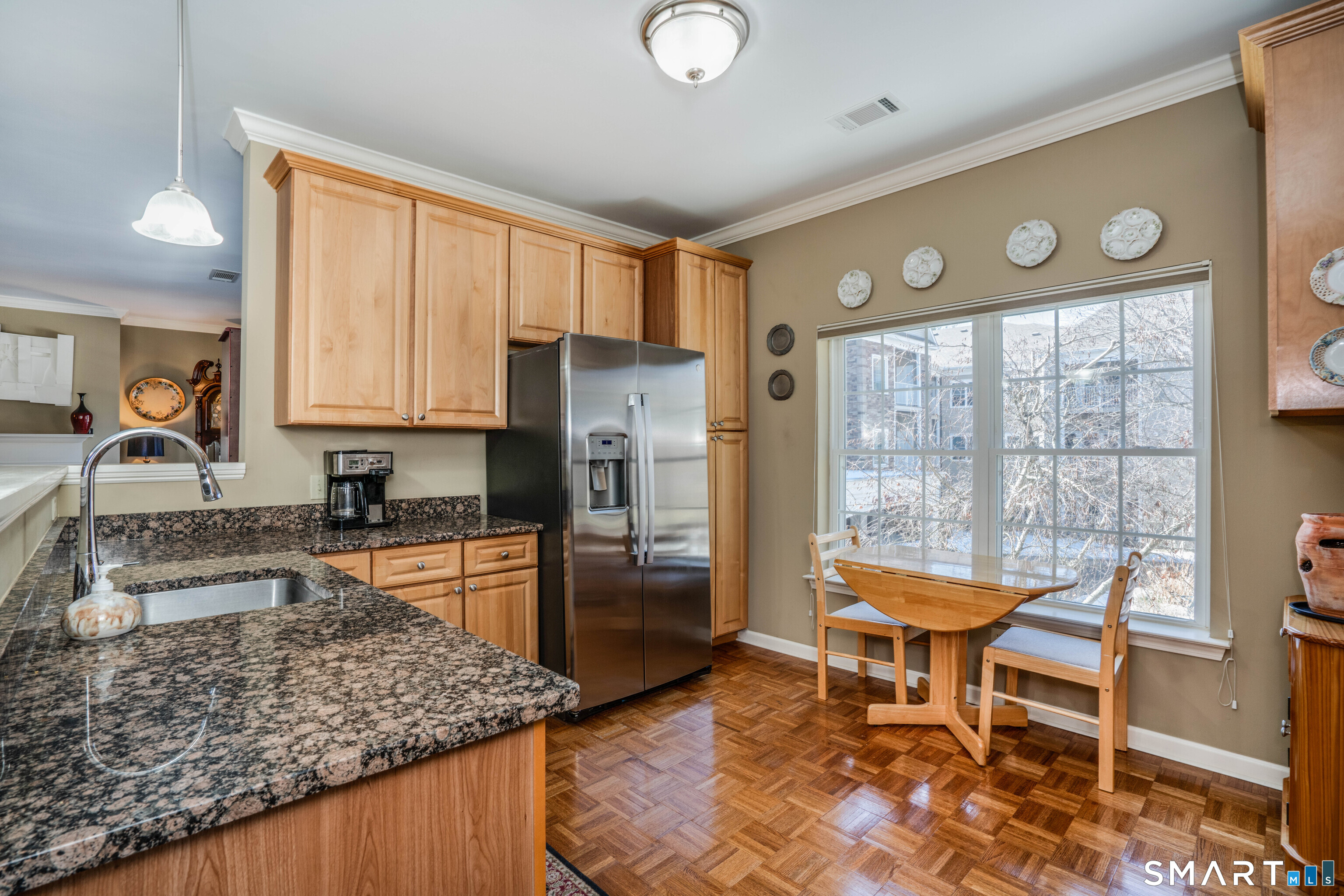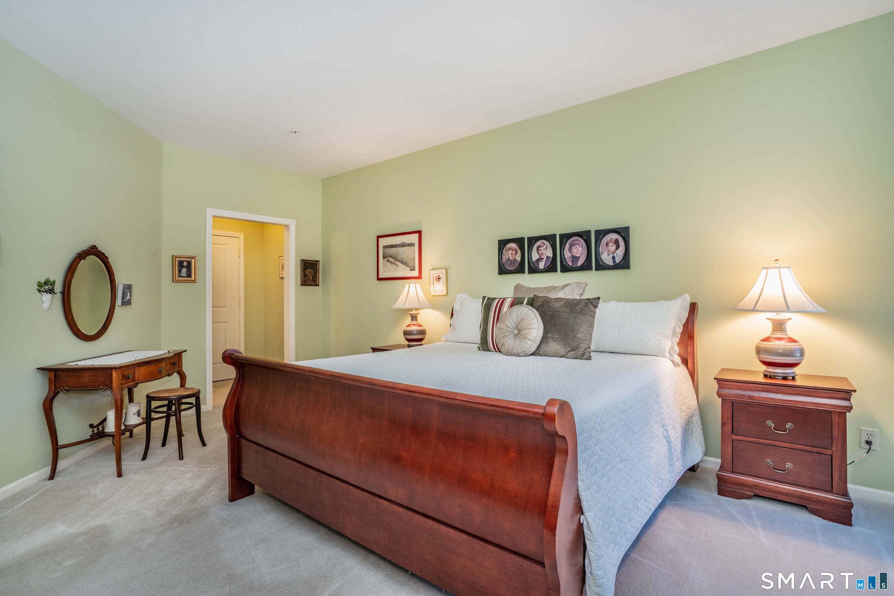 Location, location. Spacious one level living at Hopmeadow Place just steps away from "downtown" Simsbury. With over 2000 sq feet, this bright and airy condo has two spacious, ensuite bedrooms with walk-in closets, a cozy den and a large living/ dining area plus an eating space kitchen. Special features include crown molding, tile bathrooms, maple cabinets, parquet floors in the kitchen area, primary bath with soaking tub and separate shower, and a large private storage area in garage. Very well maintained over the years, this is a move in ready home. Hopmeadow Place is a 55 and over, active adult community with gorgeous Commons area, a well-equipped gym and stunning community patio. There is an onsite, part-time Concierge available to serve resident's needs. Located in the heart of Simsbury, this warm friendly community is within walking distance to shops and stores, bike trails, the Performing Arts Center and Simsbury's new library.