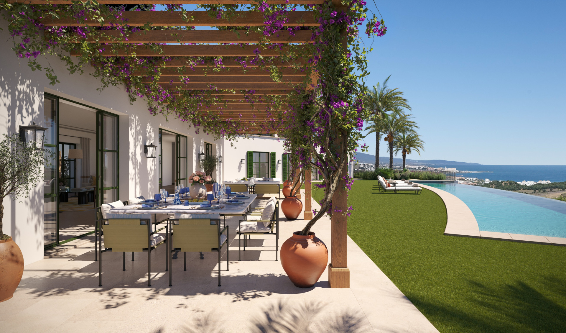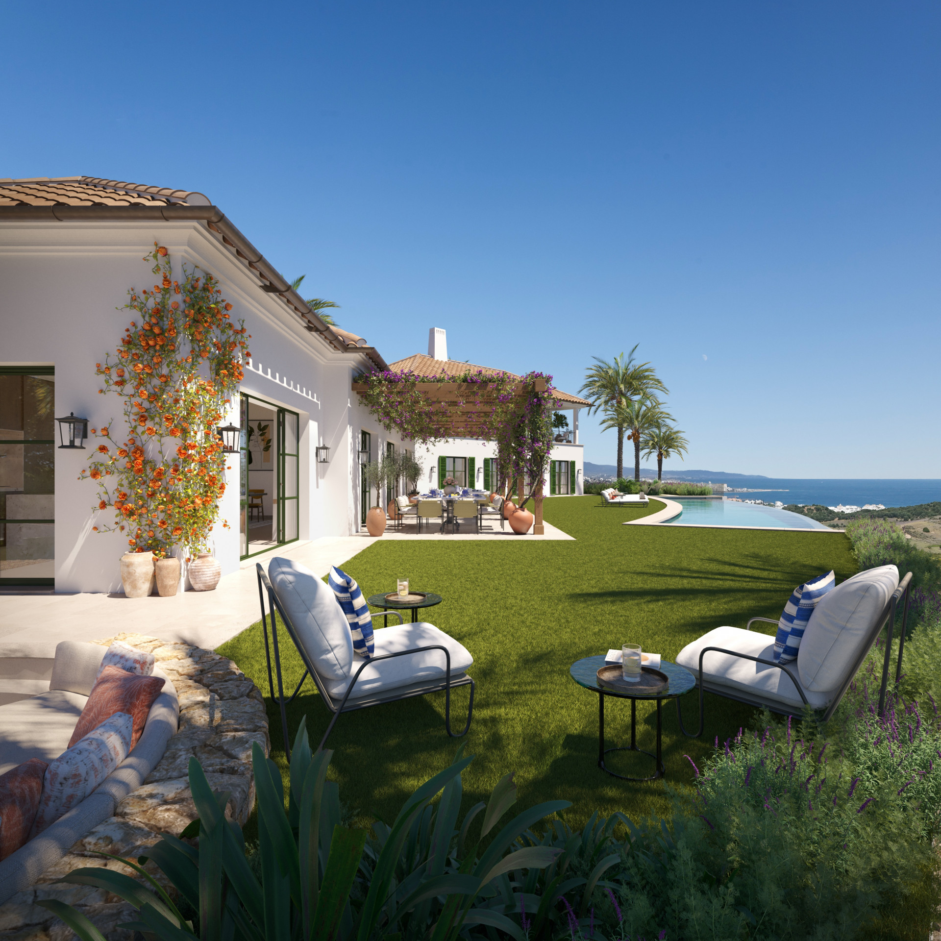 Set within one of the Spanish coast’s best-kept secrets, this exceptional Andalusian-style residence is currently under construction in the prestigious enclave of Finca Cortesin. Renowned for its exclusivity, refined atmosphere, and world-class facilities, this sought-after development offers a unique blend of traditional charm and contemporary luxury, all within a fully gated community with 24/7 security and concierge services.The villa has been meticulously designed to reflect the essence of classic Andalusian architecture, featuring elegant lines, natural materials, and a seamless connection between indoor and outdoor living. At the same time, it incorporates modern comforts and high-end finishes, creating a sophisticated yet welcoming home ideal for both permanent living and holiday escapes.Distributed across three levels, the property offers a thoughtful layout that maximizes space, privacy, and functionality. On the ground floor, the living and sleeping areas are cleverly separated, ensuring a harmonious flow throughout the home. This level hosts three generously sized bedrooms, each with its own en-suite bathroom, designed with attention to detail and premium materials. Large windows allow natural light to fill each room, while offering serene views of the surrounding garden.The upper floor is entirely dedicated to the impressive master suite, providing a private sanctuary within the home. This elegant space includes a spacious bedroom, a luxurious en-suite bathroom, and direct access to a private terrace. From here, one can enjoy tranquil moments while taking in the surrounding landscape and partial sea views, making it the perfect retreat for relaxation and privacy.The lower level of the property has been designed with lifestyle and practicality in mind. It features a spacious entertainment room, ideal for hosting gatherings, creating a home cinema, or a leisure area tailored to personal preferences. In addition, there is a fully equipped laundry room and ample parking space accommodating two to three vehicles, ensuring convenience and functionality.At the heart of the home lies the main living area, where an open-plan concept seamlessly integrates the kitchen, dining, and lounge spaces. This central area has been carefully oriented to take full advantage of the spectacular sea views, creating a stunning backdrop for everyday living. Floor-to-ceiling windows enhance the sense of space and light, while providing direct access to the outdoor terraces.The exterior of the property is equally impressive, set on a generous plot that offers both privacy and beautifully landscaped surroundings. The garden has been thoughtfully designed to complement the natural environment, featuring lush greenery and inviting outdoor spaces. A private swimming pool completes the setting, offering the perfect place to relax, unwind, and enjoy the Mediterranean climate all year round.Living in Finca Cortesin means enjoying access to an array of exclusive amenities, including a renowned golf course, luxury spa, fine dining restaurants, and a beach club, all designed to provide an exceptional lifestyle experience. Its prime location also allows for easy access to nearby coastal towns, international schools, and transport links, making it an ideal choice for discerning buyers.This remarkable property represents a rare opportunity to own a brand-new home in one of the most prestigious developments in southern Spain. Combining timeless Andalusian elegance with modern sophistication, it is a residence that truly embodies luxury, comfort, and the art of Mediterranean living.
