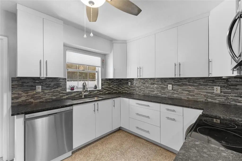 Welcome to your next Gulfport retreat, perfectly positioned just minutes from the vibrant heart of downtown Gulfport where you can enjoy local shops, eclectic restaurants, waterfront parks, and year round events, all while being tucked away high and dry in an X flood zone for added peace of mind. This solid block home exudes 1950's charm with cove ceilings and terrazzo flooring throughout and offers over 1,200 square feet of comfortable living space, complemented by an expansive enclosed sunroom of nearly 800 square feet! Inside, you will find 3 generously sized bedrooms, 1.5 bathrooms, and an updated kitchen showcasing leathered granite countertops, tile backsplash and stainless steel appliances. Situated on a rare and oversized 100 x 133 double lot, the property provides exceptional outdoor space for possible pool or expansion and privacy with brand new PVC fencing surrounding the fully fenced yard. Additional highlights include a one car attached garage, a large carport for extra covered parking and key system upgrades for peace of mind such as a newer electrical panel (2021), rain gutters (2021), water heater (2022), and a full home re pipe with PEX A plumbing (2024). This is a rare opportunity to own an incredibly spacious property in one of Gulfport's most sought after locations, offering character, updates, and room to grow just moments from the waterfront lifestyle.