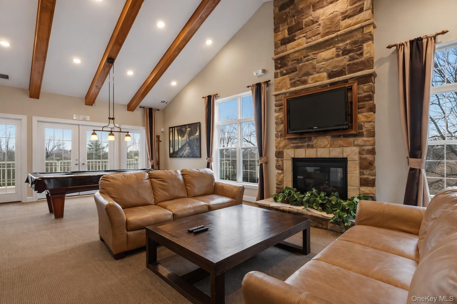 Welcome to this beautifully maintained top-floor condo at 612 Saratoga Lane in Fishkill, offering added privacy, abundant natural light, and easy low-maintenance living. This bright, move-in-ready home features an open-concept layout with wood flooring and crown molding that create a warm, inviting living space ideal for everyday living and entertaining. The layout accommodates a comfortable seating area, dining space for a full-size table, and a flexible area perfect for a home office. The kitchen features cherry wood cabinetry, generous storage, and a seamless connection to the main living area. Both bedrooms are well sized with ample closet space. The primary suite includes a walk-in closet and a private bath with a double vanity, glass-enclosed shower, and soaking Jacuzzi tub. Enjoy an oversized private balcony with park-like views and beautiful sunset scenery, ideal for relaxing or outdoor dining. Additional features include in-unit washer and dryer, central air conditioning, basement storage, and convenient parking with one assigned space plus guest parking. Residents enjoy access to a clubhouse, pool, fitness center, Ideally located just minutes from I-84, Route 9, and Metro-North, this home offers exceptional convenience with nearby shopping and dining including Panera Bread, Starbucks, Walmart, Sam's Club, BJ's Wholesale Club, HomeGoods, and TJ Maxx - everything you need just moments from your doorstep while still enjoying a peaceful residential setting. Property is Vacant and easy to show. Photos are virtually staged to Illustrate potential