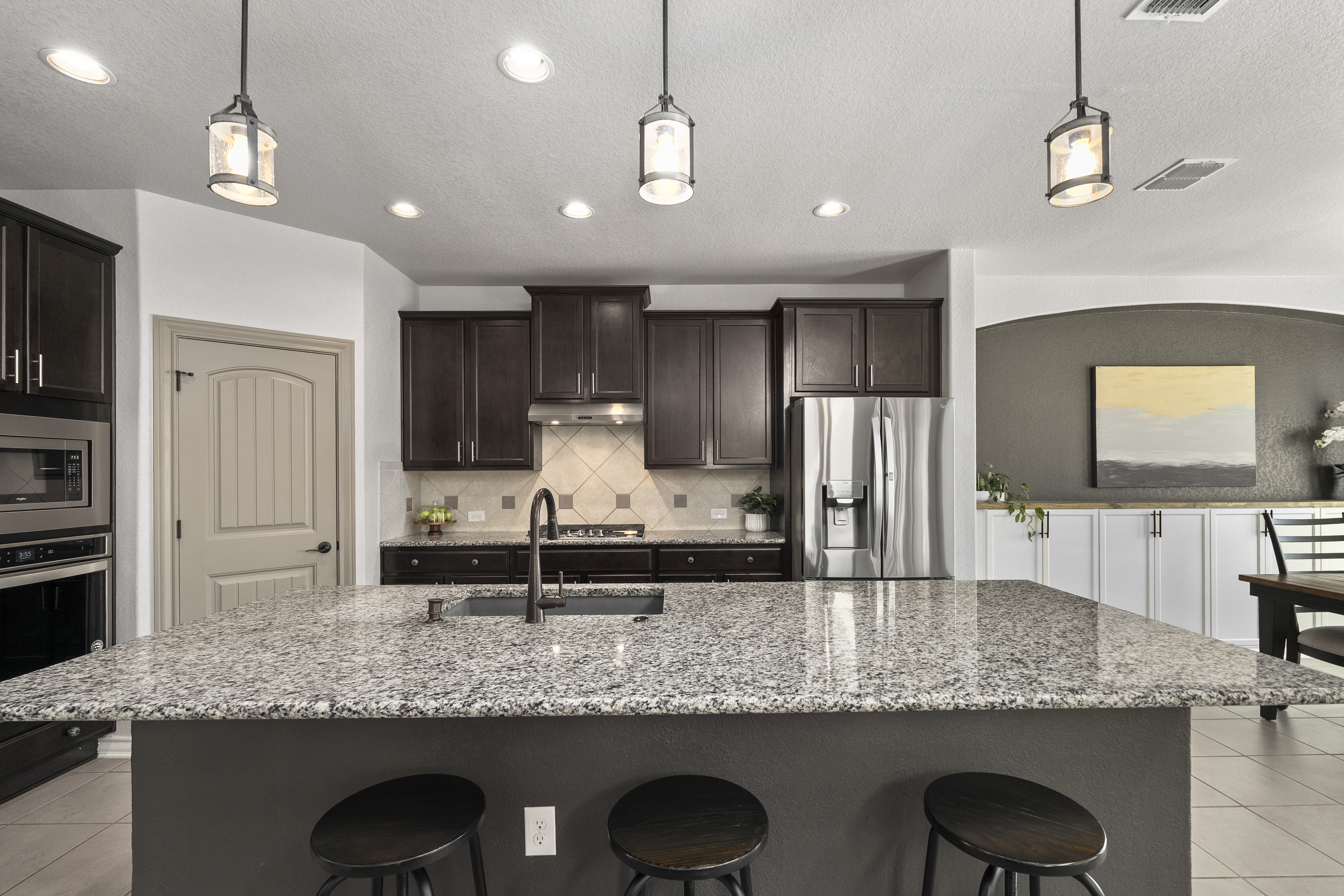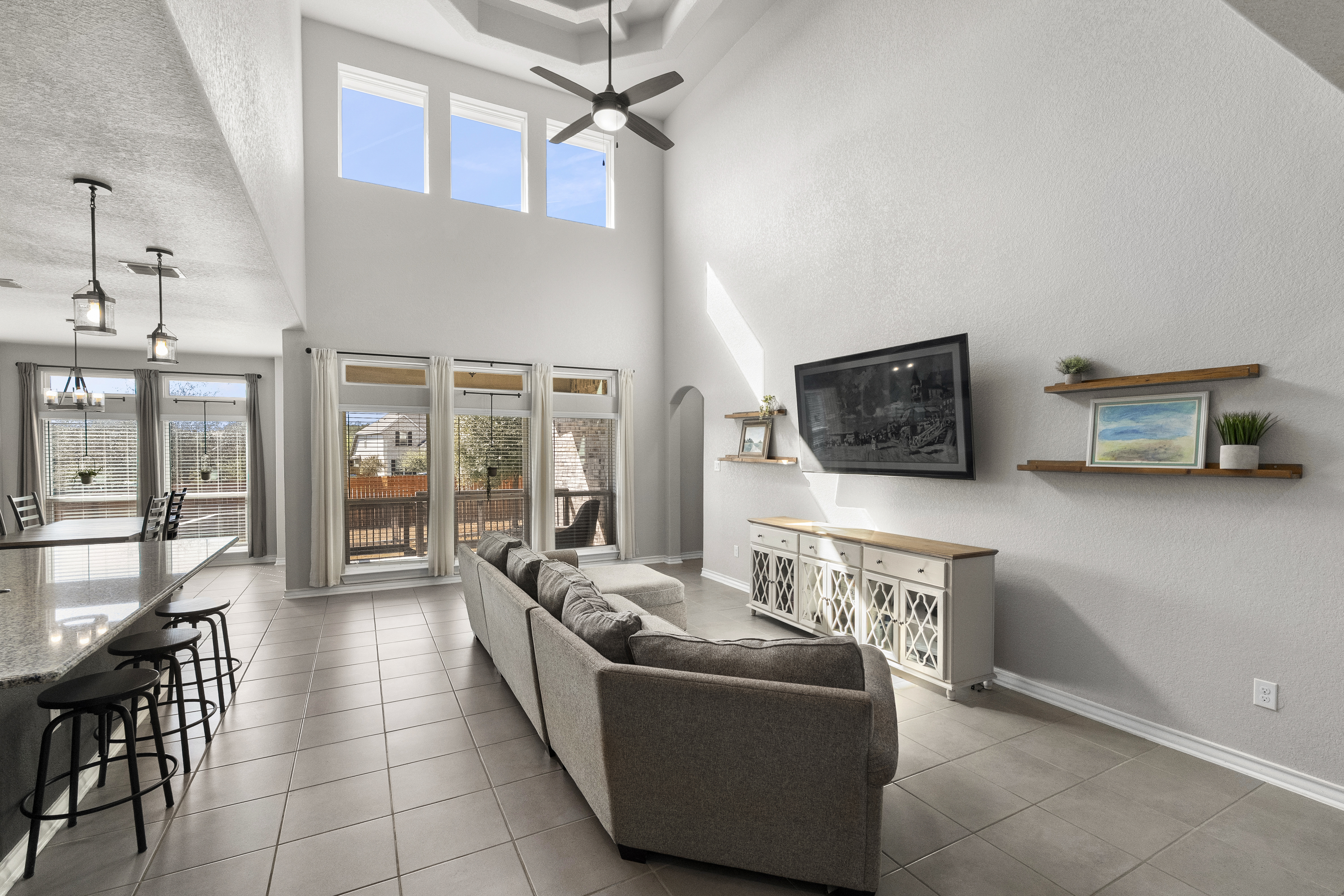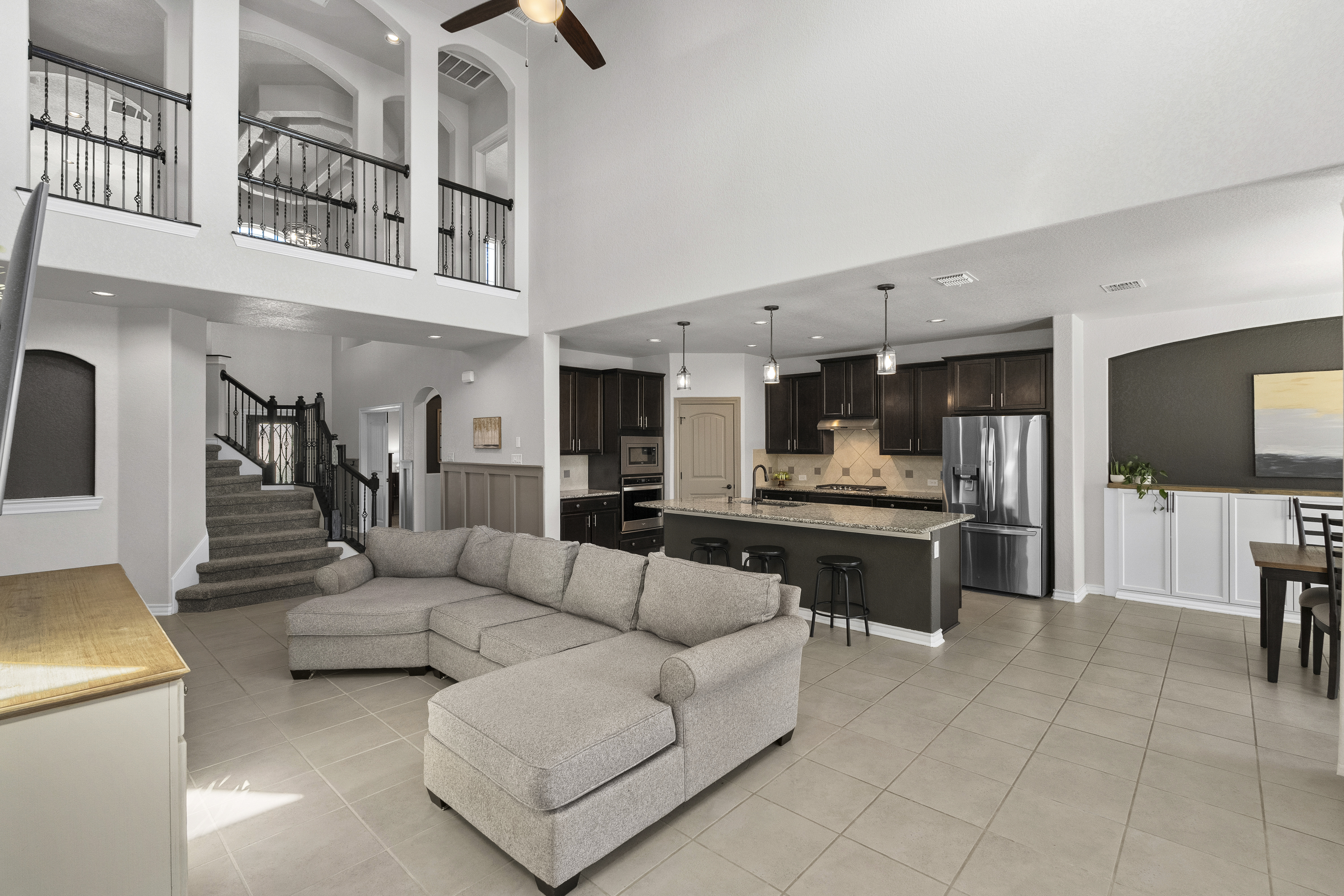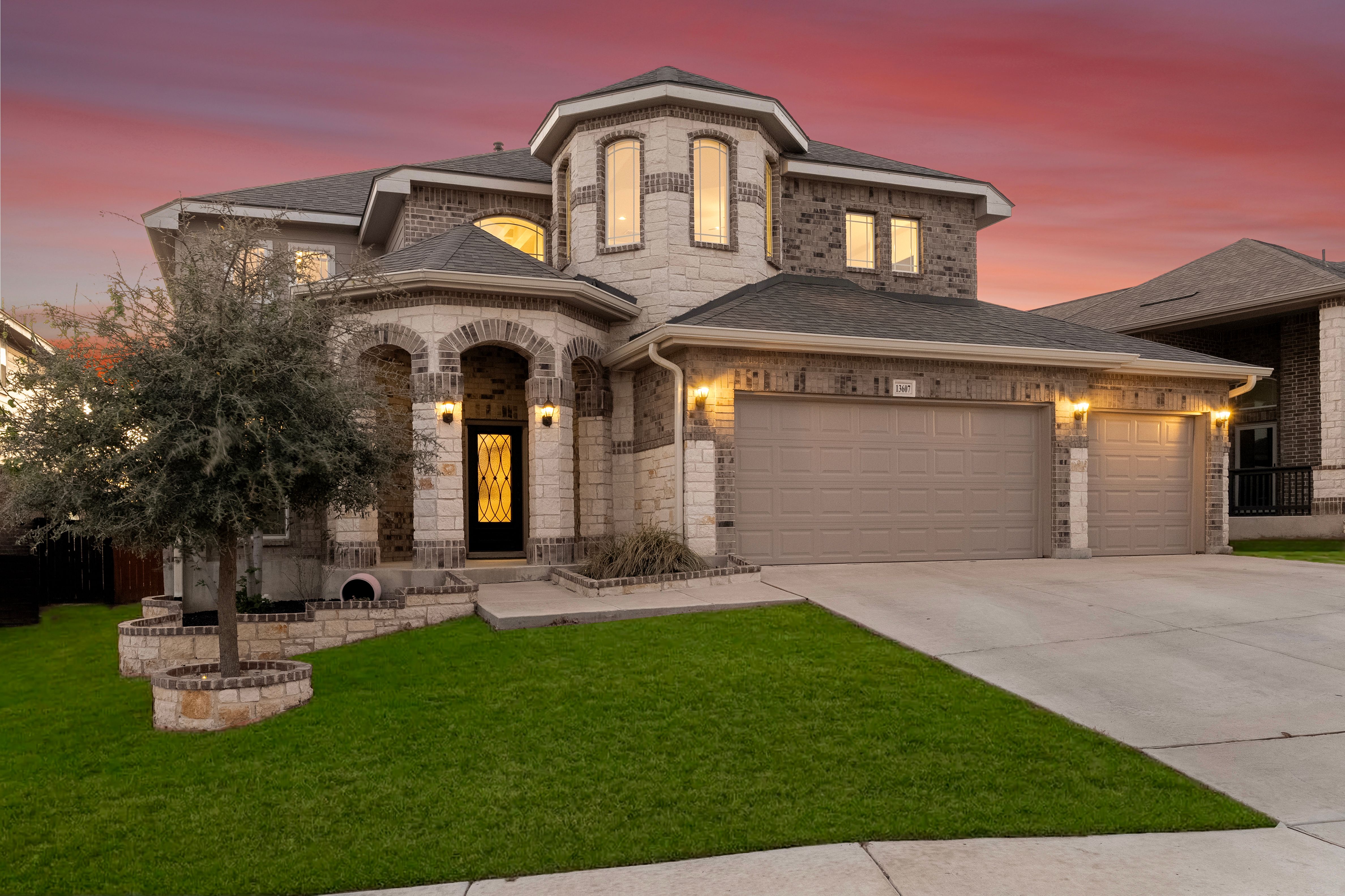 Welcome to 13607 Patronus Way, a beautifully designed home located in the highly sought-after Arcadia Ridge community of San Antonio. Offering 4 bedrooms, 4 full bathrooms, and a spacious 3-car garage, this residence blends modern comfort with impressive architectural details. From the moment you enter, soaring ceilings and abundant natural light create a bright, inviting atmosphere. The open-concept floorplan seamlessly connects the living, dining, and kitchen areas, making the home ideal for both everyday living and entertaining. The gourmet kitchen features granite countertops, stainless steel appliances, custom cabinetry, and an oversized island that overlooks the expansive living room. Thoughtfully designed for flexibility and privacy, the home offers two bedrooms on the first floor, including the spacious primary suite with a spa-like bath featuring dual vanities, a soaking tub, and a separate walk-in shower. Upstairs, two additional bedrooms and bathrooms provide comfortable accommodations for family or guests. Large windows frame views of the backyard and fill the home with natural light, enhancing the airy feel created by the high ceilings and open layout. Located in the desirable Arcadia Ridge community, residents enjoy convenient access to major San Antonio attractions including SeaWorld, Government Canyon State Natural Area, and Alamo Ranch shopping and dining. With quick access to Loop 1604 and Highway 151, commuting to Lackland Air Force Base, downtown San Antonio, and the Texas Hill Country is effortless. Offering space, style, and an exceptional location, this home presents a wonderful opportunity to enjoy comfortable living in one of San Antonio's fastest-growing communities.