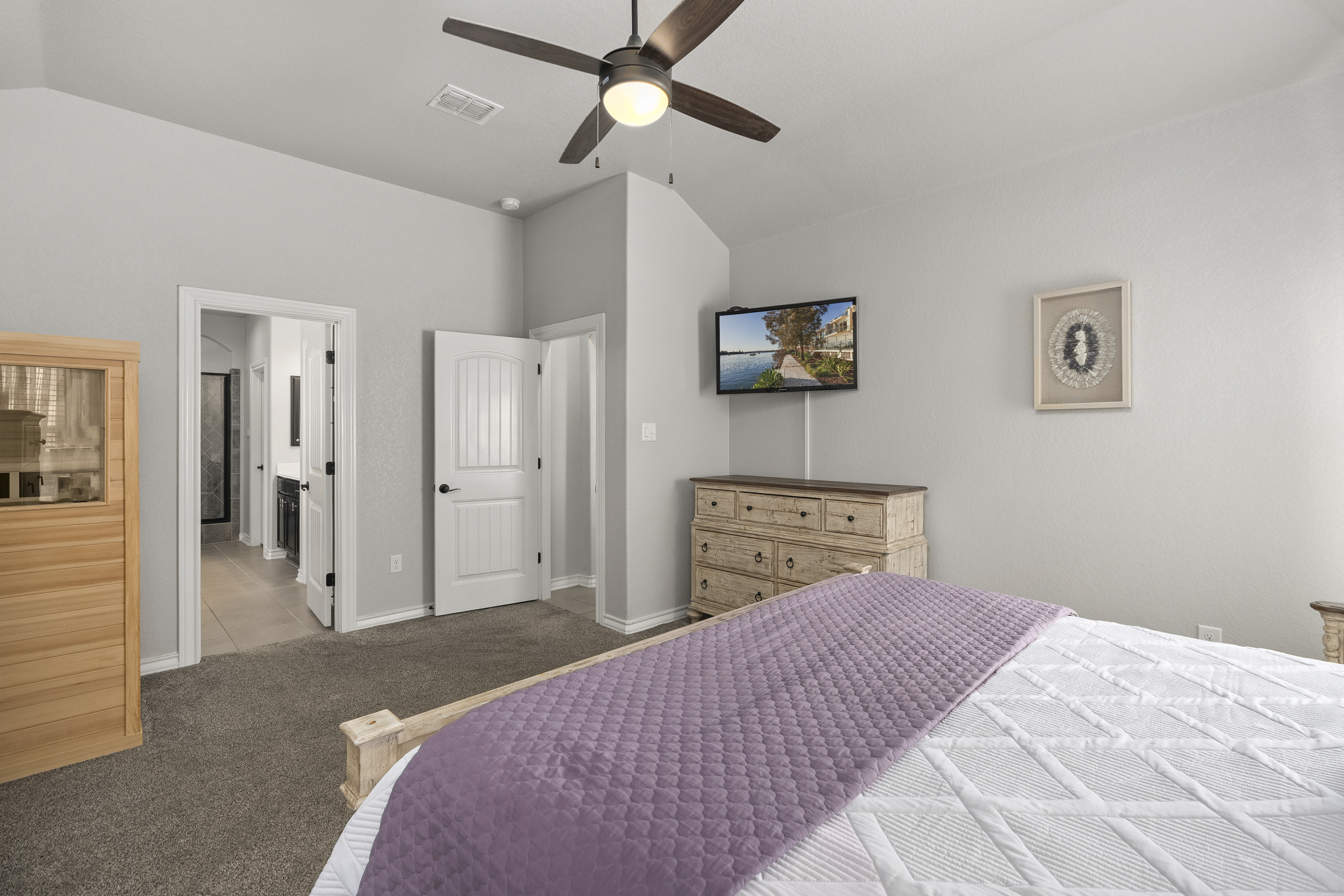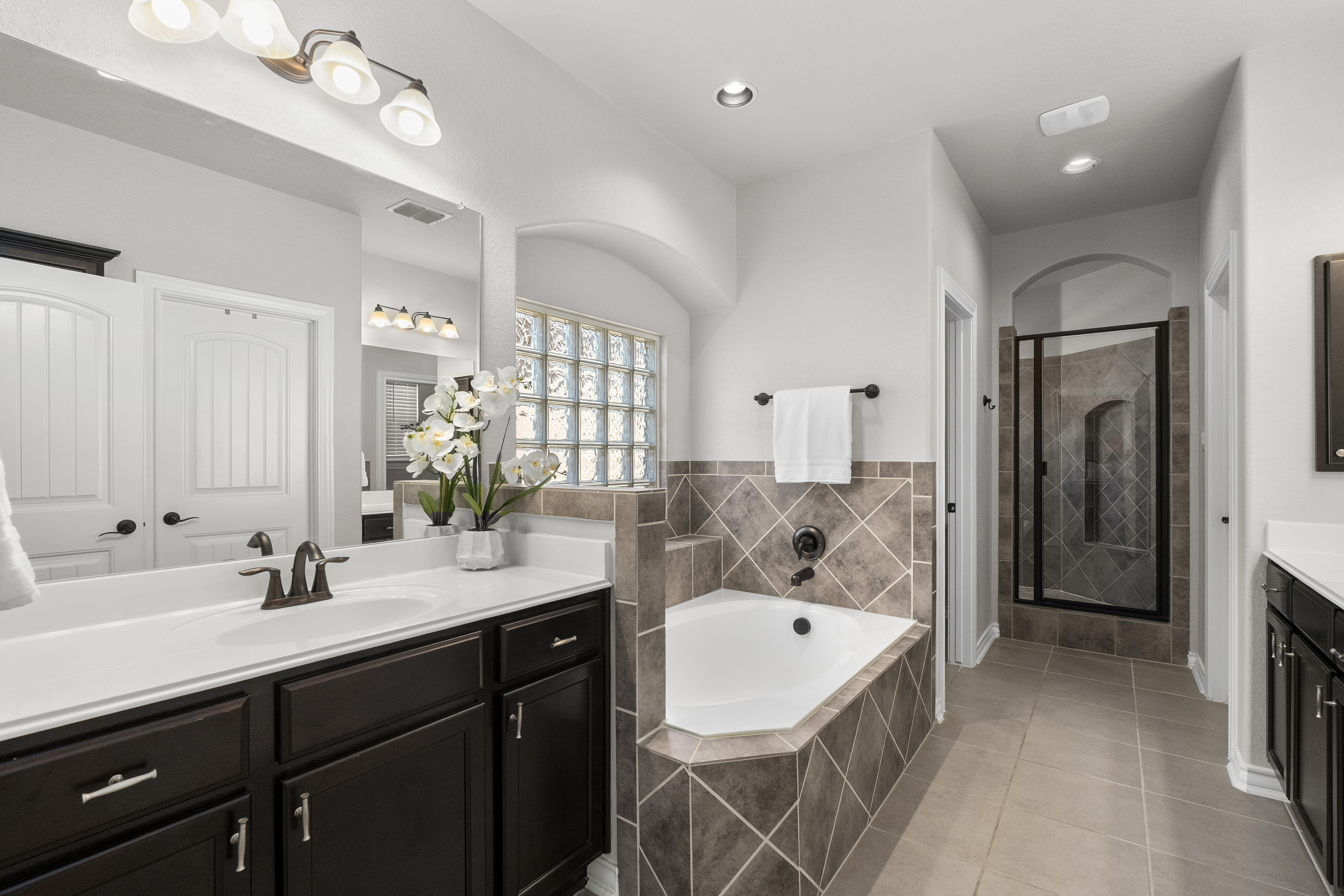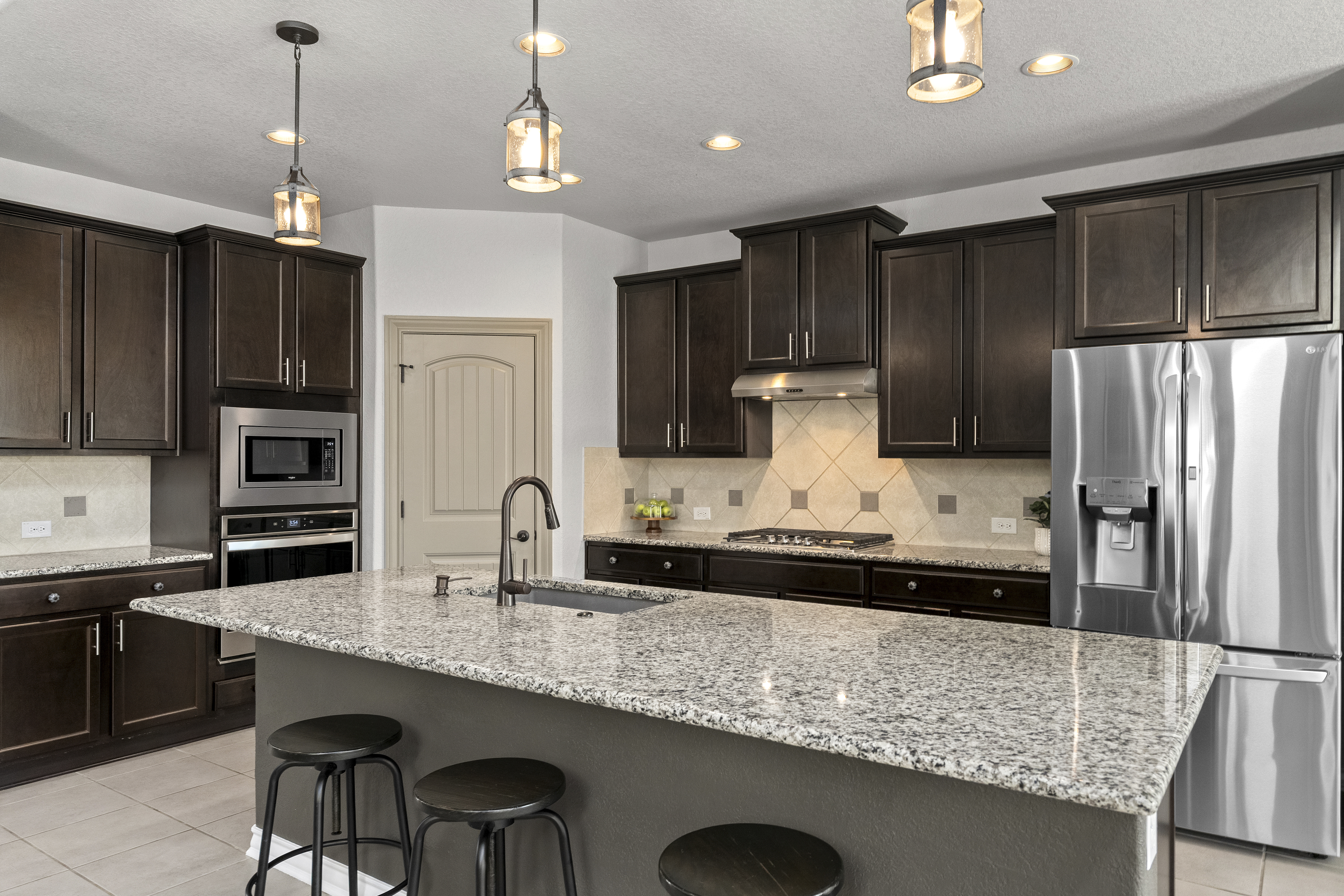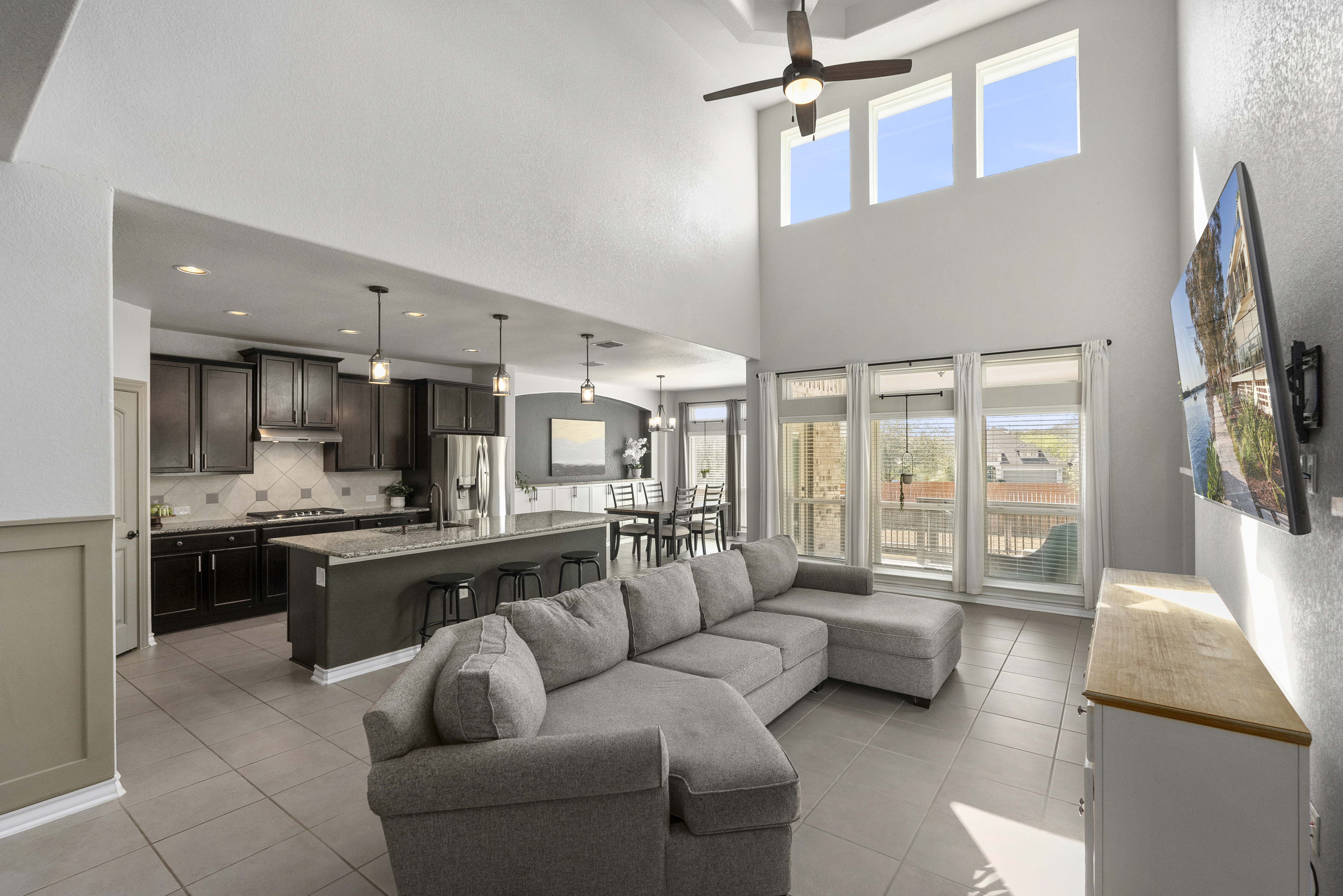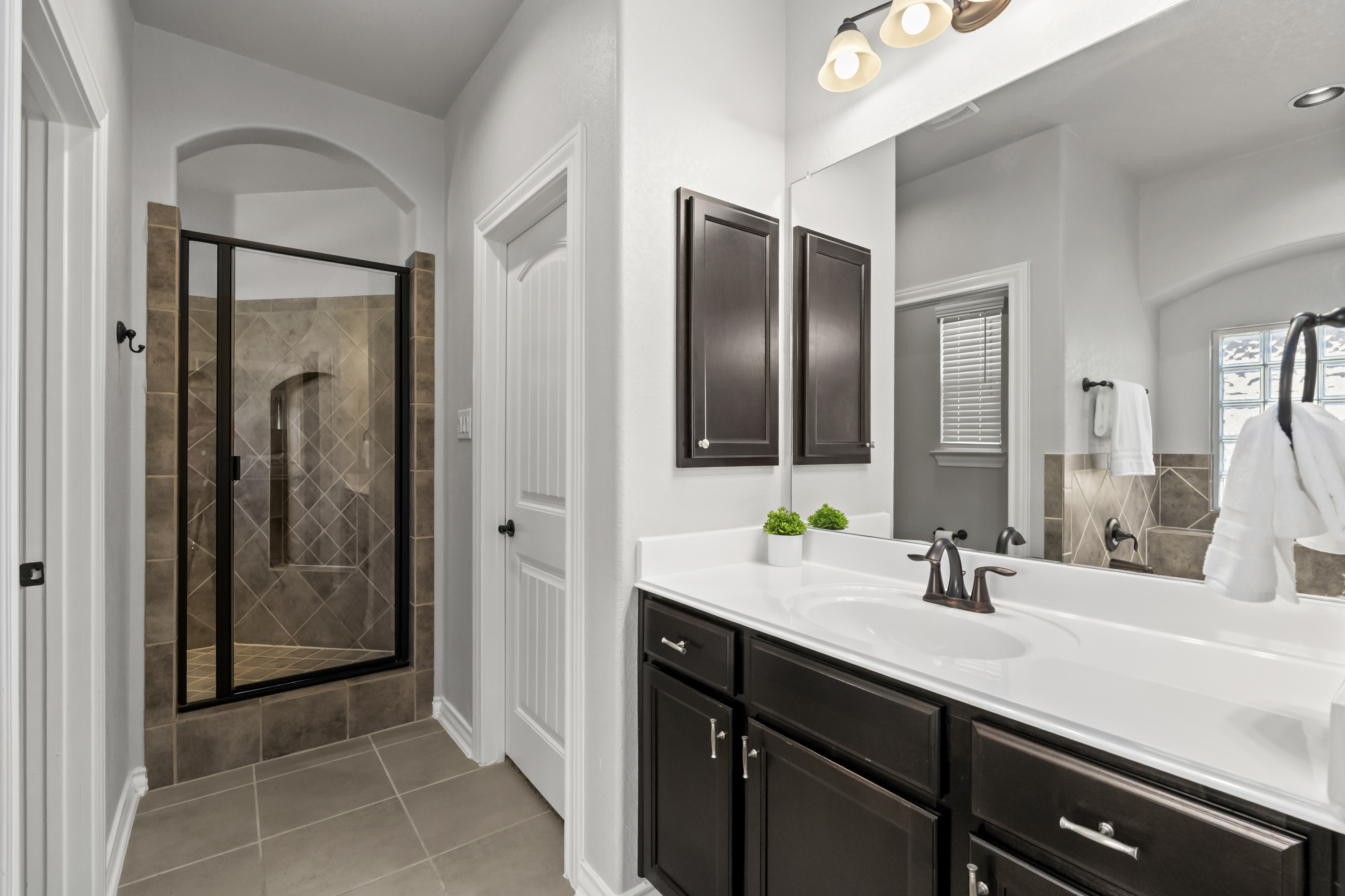Welcome to 13607 Patronus Way, a beautifully designed home located in the highly sought-after Arcadia Ridge community of San Antonio. Offering 4 bedrooms, 4 full bathrooms, and a spacious 3-car garage, this residence blends modern comfort with impressive architectural details. From the moment you enter, soaring ceilings and abundant natural light create a bright, inviting atmosphere. The open-concept floorplan seamlessly connects the living, dining, and kitchen areas, making the home ideal for both everyday living and entertaining. The gourmet kitchen features granite countertops, stainless steel appliances, custom cabinetry, and an oversized island that overlooks the expansive living room. Thoughtfully designed for flexibility and privacy, the home offers two bedrooms on the first floor, including the spacious primary suite with a spa-like bath featuring dual vanities, a soaking tub, and a separate walk-in shower. Upstairs, two additional bedrooms and bathrooms provide comfortable accommodations for family or guests. Large windows frame views of the backyard and fill the home with natural light, enhancing the airy feel created by the high ceilings and open layout. Located in the desirable Arcadia Ridge community, residents enjoy convenient access to major San Antonio attractions including SeaWorld, Government Canyon State Natural Area, and Alamo Ranch shopping and dining. With quick access to Loop 1604 and Highway 151, commuting to Lackland Air Force Base, downtown San Antonio, and the Texas Hill Country is effortless. Offering space, style, and an exceptional location, this home presents a wonderful opportunity to enjoy comfortable living in one of San Antonio's fastest-growing communities.