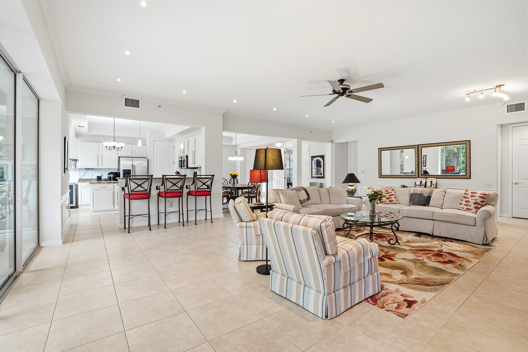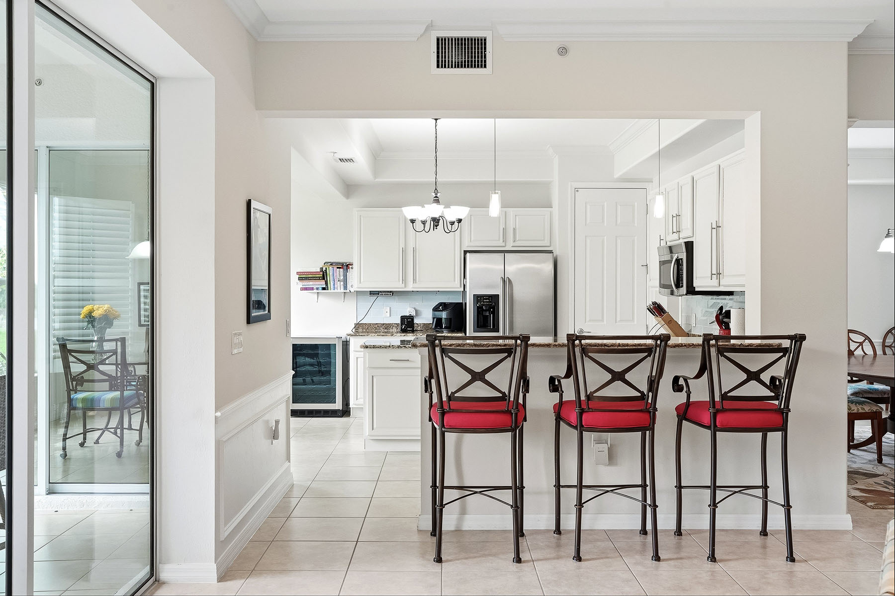 Full golf membership deeded, which is an exceptional value for avid golfers (membership may be sold and converted to sports or social if desired). 12026 Covent Garden Ct is a sophisticated two-bedroom plus den, two-bath home in the prestigious community of TwinEagles in Naples. Boasting 2,367 square feet, the home exudes comfort, offering a serene retreat. Go inside to discover a meticulously designed interior, with plantation shutters, trim work and crown molding. The open-concept layout seamlessly blends the living and dining areas, creating a flow for entertaining and relaxation. The heart of this home is enhanced with beautiful trim work, white cabinetry in the kitchen, complementary granite countertops, a stylish backsplash and an oversized center island with a wine refrigerator. Your primary bath is complemented with a separate tub and shower, dual vanities and a walk-in closet, providing ample storage and organization. TwinEagles is one of the finest communities in Southwest Florida. Enjoy 1,115 acres of natural tranquility, two championship golf courses, the Talon Course designed by the Nicklaus Group, and the Eagle Course designed by Steve Smyers. New clubhouse, bocce courts, Himalayan putting green, fitness center, tennis, pickleball courts, resort pool and tiki bar.