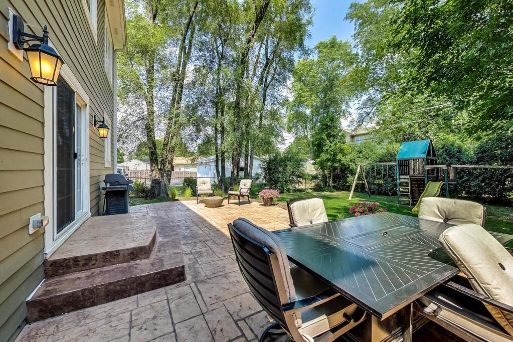 LOCATION! Steps to downtown Arlington Heights! Fully reimagined modern home that truly has it all in desired Patton Elementary, Thomas Middle, and Hersey High School! Fresh updates, picture perfect, and filled with today's most sought-after finishes, this 5 bedroom, 4.1 bathroom stunner delivers style, space, and an unbeatable lifestyle in one of Arlington Heights' most desirable neighborhoods. From the moment you arrive, the brick paver walkway and adorable covered porch invite you inside, setting the tone for the timeless appeal throughout. Step inside to bright, wide-open living spaces highlighted by gorgeous coffered ceilings, crown molding, and gleaming hardwood floors. The layout flows seamlessly from the living room with a cozy fireplace, into the open kitchen, and adjacent dining area, making everyday living and entertaining effortless. The light-filled kitchen is a chef's dream, featuring exquisite custom cabinetry, quartz countertops, center island with storage, and a dedicated eat-in area, complete with high-end stainless steel appliances. Direct access to the backyard is makes indoor/outdoor entertaining a breeze. First-floor den offers the perfect home office or flex space, while the first floor laundry and mudroom provide plenty of custom storage, and leads a passage to the 2-car garage. Powder room adorns this level. Upstairs, you'll discover four generous bedrooms, including a serene primary suite with an impressive, custom walk-in closet, and spa-like ensuite featuring a walk-in shower, separate soaking tub and dual-sink vanity. Two additional bedrooms with ample closet space share a beautifully appointed hall bath, while another bedroom offers its own ensuite bathroom. The finished lower level expands your living space, offering a rec area, 5th bedroom, and full bathroom, ideal for movie nights, exercise, play space, or guests. Outside, a stunning patio creates the ideal setting for lounging or dining al fresco, surrounded by mature trees and green space with plenty of room to run and play. All of this is minutes from vibrant downtown Arlington Heights, dining, shopping, parks, Metra, and award-winning schools, including Patton Elementary, Thomas Middle, and Hersey High School. Steps to the state-of-the-art Arlington Ridge Center (THE ARC), featuring a fitness center, pool, playground, basketball, volleyball, outdoor soccer, and all sorts of sports! Modern updates, timeless details, and a location that truly checks every box, this is the lifestyle you've been waiting for! Welcome home!
