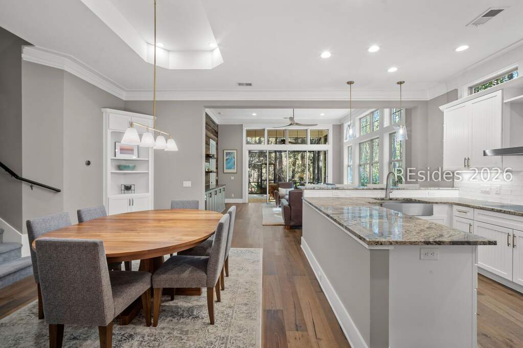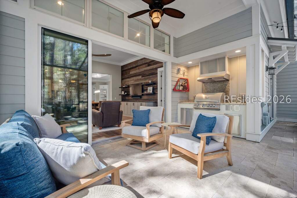 Welcome to 18 Pine Shadow Court, where refined Lowcountry living meets effortless luxury in the award-winning community of Hampton Lake in Bluffton. From the moment you step inside this meticulously maintained, fully updated 3-bedroom, 3-bath residence, you'll find over 2,200 square feet of thoughtfully designed living space, elevated finishes, and a true model-like feel throughout. At the heart of the home, the beautifully renovated kitchen showcases stainless steel appliances, custom finishes, granite countertops, and a seamless flow into the spacious great room. High ceilings and beautiful windows allow natural light to pour in, enhancing the open, airy feel. Complete with built-ins and a wine cooler, this space is perfect for both entertaining and relaxed everyday living. Updated bathrooms, upgraded flooring, and a new water filtration system add to the home's move-in-ready appeal. Designed to embrace the Lowcountry lifestyle, the screened lanai is a true standout, featuring travertine flooring, a water feature, and sliding glass doors that open to an outdoor kitchen, hot tub, and peaceful wooded preserve views. Whether hosting guests or enjoying a quiet evening, this indoor-outdoor space delivers. Adding to the home's versatility is a climate-controlled two-car garage with a split unit and epoxy flooring, along with a walk-in attic featuring spray foam insulation-ideal for additional storage and enhanced energy efficiency. Life in Hampton Lake offers more than just a home. It's a lifestyle. Residents enjoy access to a lakefront clubhouse, swimming lake, resort-style pools, fitness center, kayaking, boating, scenic trails, dining, pickleball, and much more. Whether you're searching for a full-time residence or a lock-and-leave retreat, 18 Pine Shadow Court delivers the perfect blend of luxury, comfort, and lifestyle all in one of Bluffton's most sought-after communities.