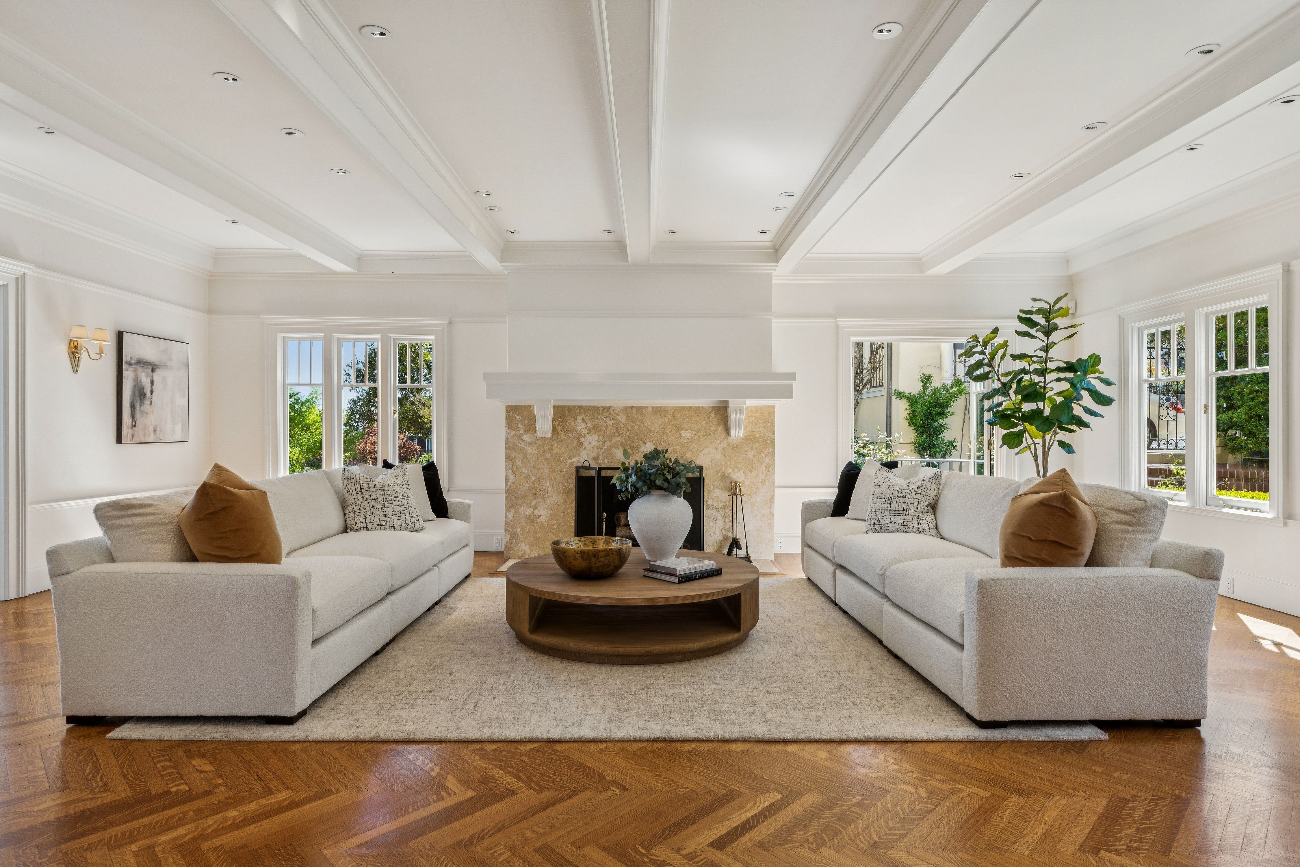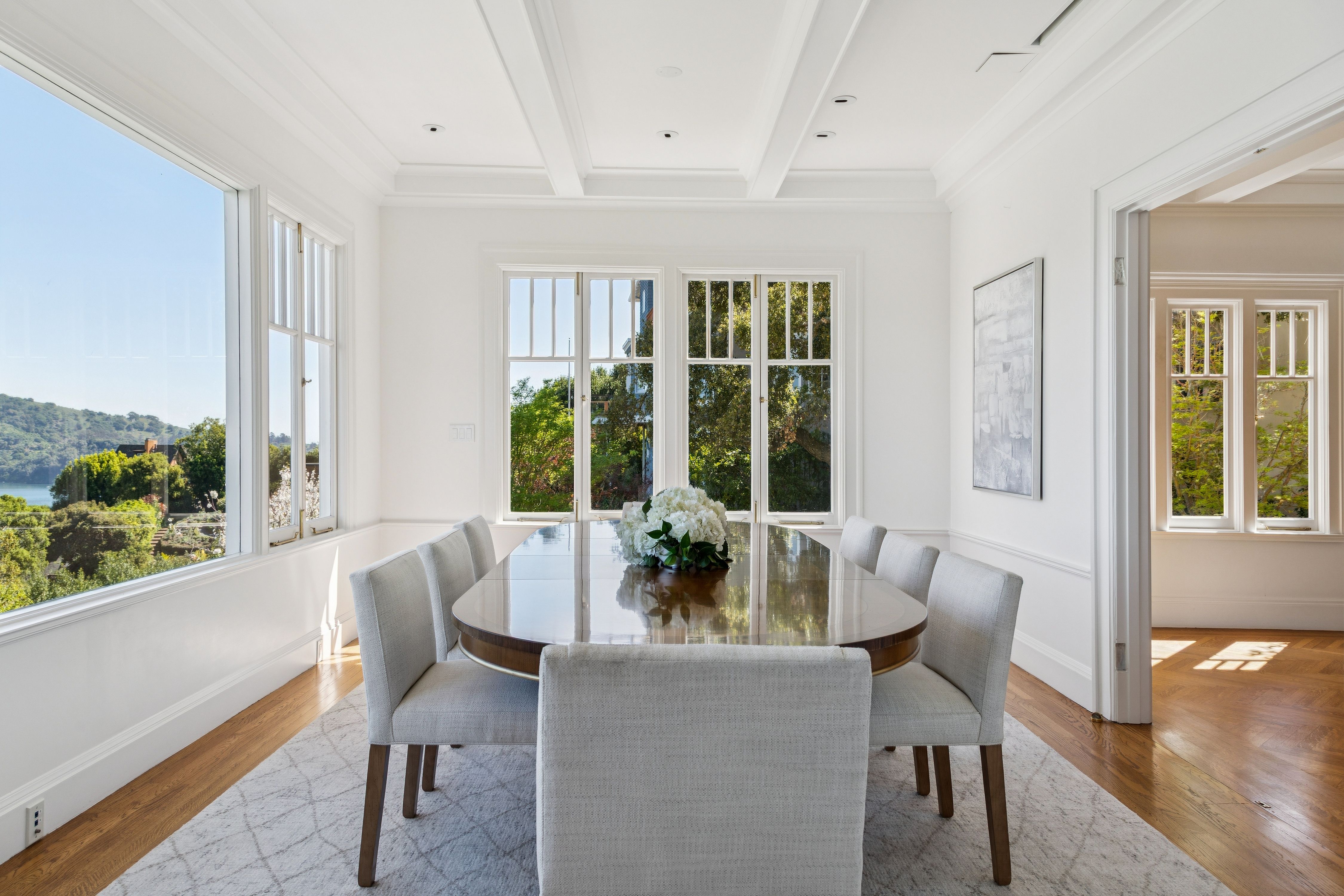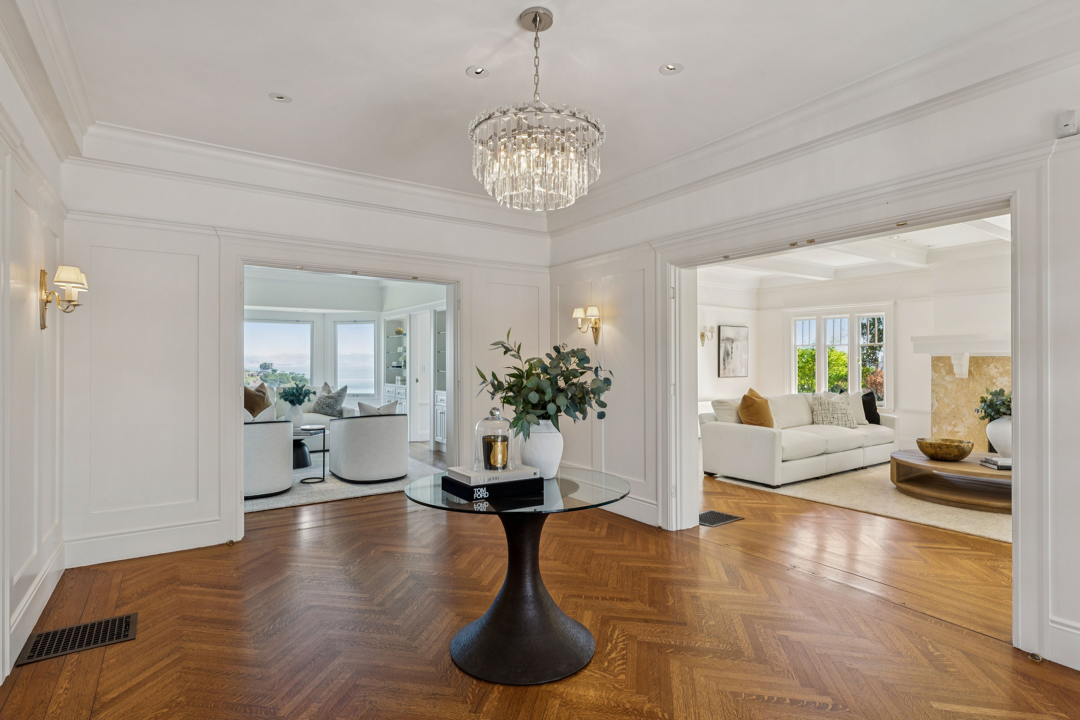 Set high above the shimmering Bay, this iconic Belvedere estate embodies the pinnacle of coastal luxury, commanding sweeping, uninterrupted views across Corinthian Island, Belvedere Cove, Old Town Tiburon, Raccoon Strait, and the San Francisco Bay. From sunrise to sunset, the ever-changing panorama offers a truly cinematic backdrop.Thoughtfully reimagined, the residence seamlessly blends timeless architecture with modern refinement. At its heart, a spectacular chef’s kitchen anchors the home—both elegant and inviting—framed by dramatic floor-to-ceiling glass doors that dissolve the boundary between indoors and out. The adjoining dining area opens effortlessly to the Bay, where breathtaking vistas become part of everyday living. From the moment of arrival, the home reveals itself with a striking sense of scale and light, offering an unforgettable first impression.Beyond a gracious courtyard entry with a tranquil fountain, approximately 7,700± square feet unfold with a sense of quiet grandeur. Classic architectural details—coffered ceilings, five wood-burning fireplaces, and walls of oversized windows—are paired with expansive terraces, a pool, and lush gardens, creating a seamless indoor-outdoor lifestyle designed for both intimate living and grand-scale entertaining.The primary suite is a private sanctuary of exceptional comfort and elegance, featuring dual dressing rooms and spa-inspired baths, radiant heated floors, and a steam shower. A secluded view lounge with kitchenette offers a peaceful retreat, all set against a backdrop of sweeping Bay vistas.In total, the estate offers eight bedrooms, seven full baths, and two half baths, including a separate au pair suite and a private-entry office or guest residence—providing flexibility and privacy for a variety of lifestyles.The resort-inspired grounds are equally compelling, with mature gardens, manicured lawns, a pool, and beautifully appointed terraces. Additional amenities include a wine cellar, a fitness and yoga studio with ballet barre, and a sauna—creating a true sanctuary for wellness and relaxation.Modern infrastructure enhances the home’s livability, with integrated security, CAT-6 wiring throughout, multiple laundry rooms, three separate entrances, abundant storage, and a two-car garage with additional carport.Ideally located just moments from downtown Tiburon, yacht clubs, scenic waterfront pathways, and an effortless ferry commute to San Francisco, this is a rare offering—where timeless design, extraordinary views, and an unparalleled setting converge to create a true legacy estate.