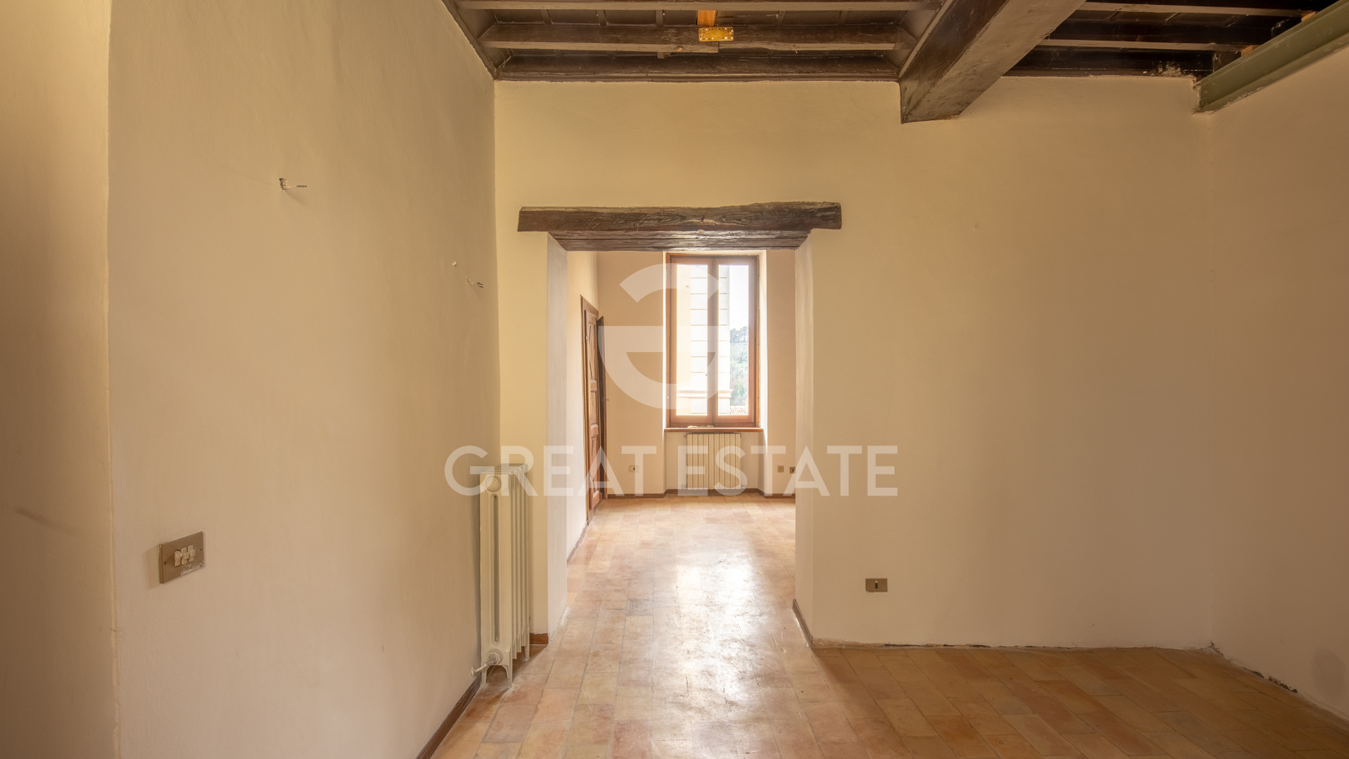 Historical building subject to complete restoration of its common areas and structural elements. The ceilings with exposed wooden beams represent a distinctive feature, capable of conveying character and continuity with the history of the building. Possibility of restyling to achieve a more contemporary and refined result.