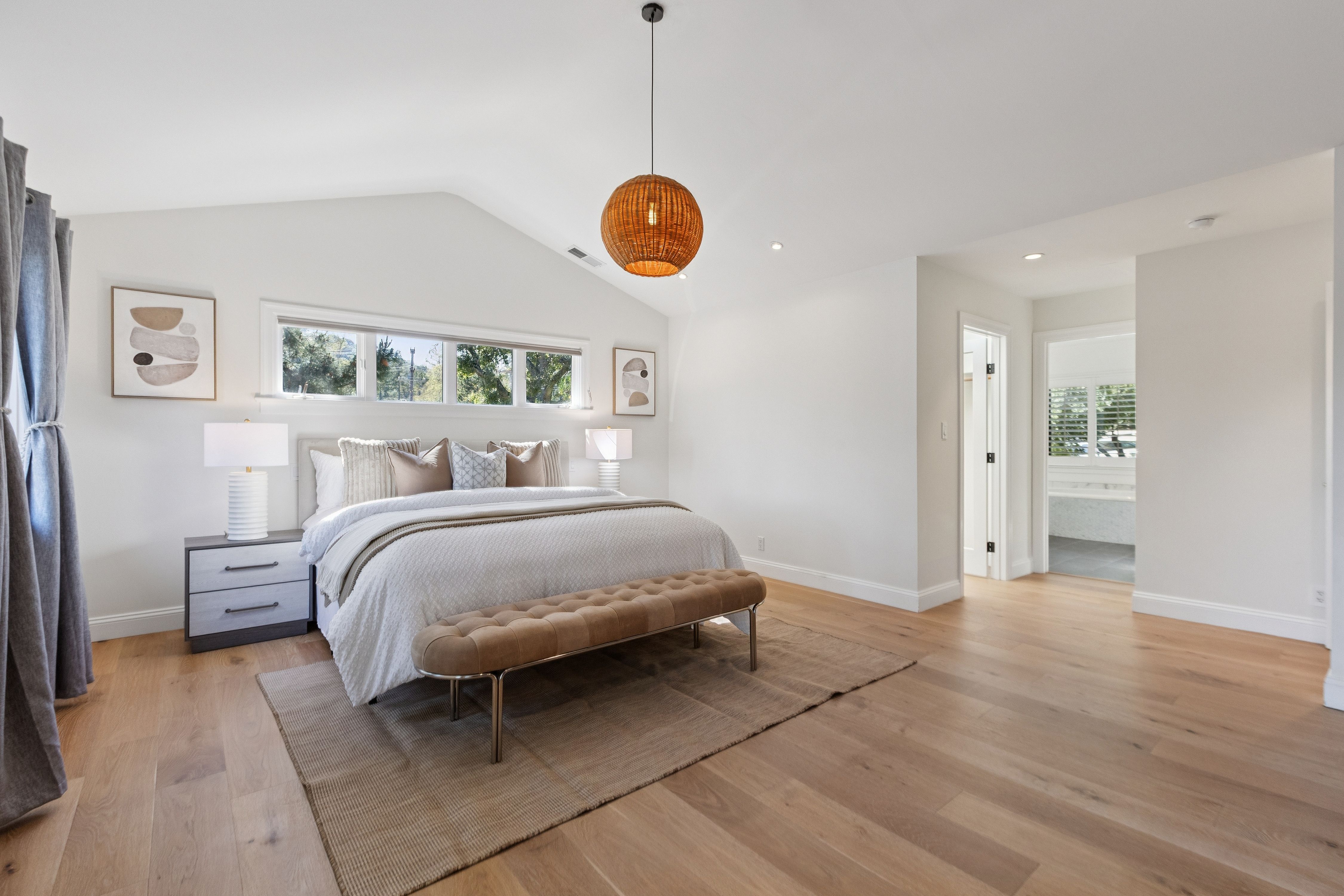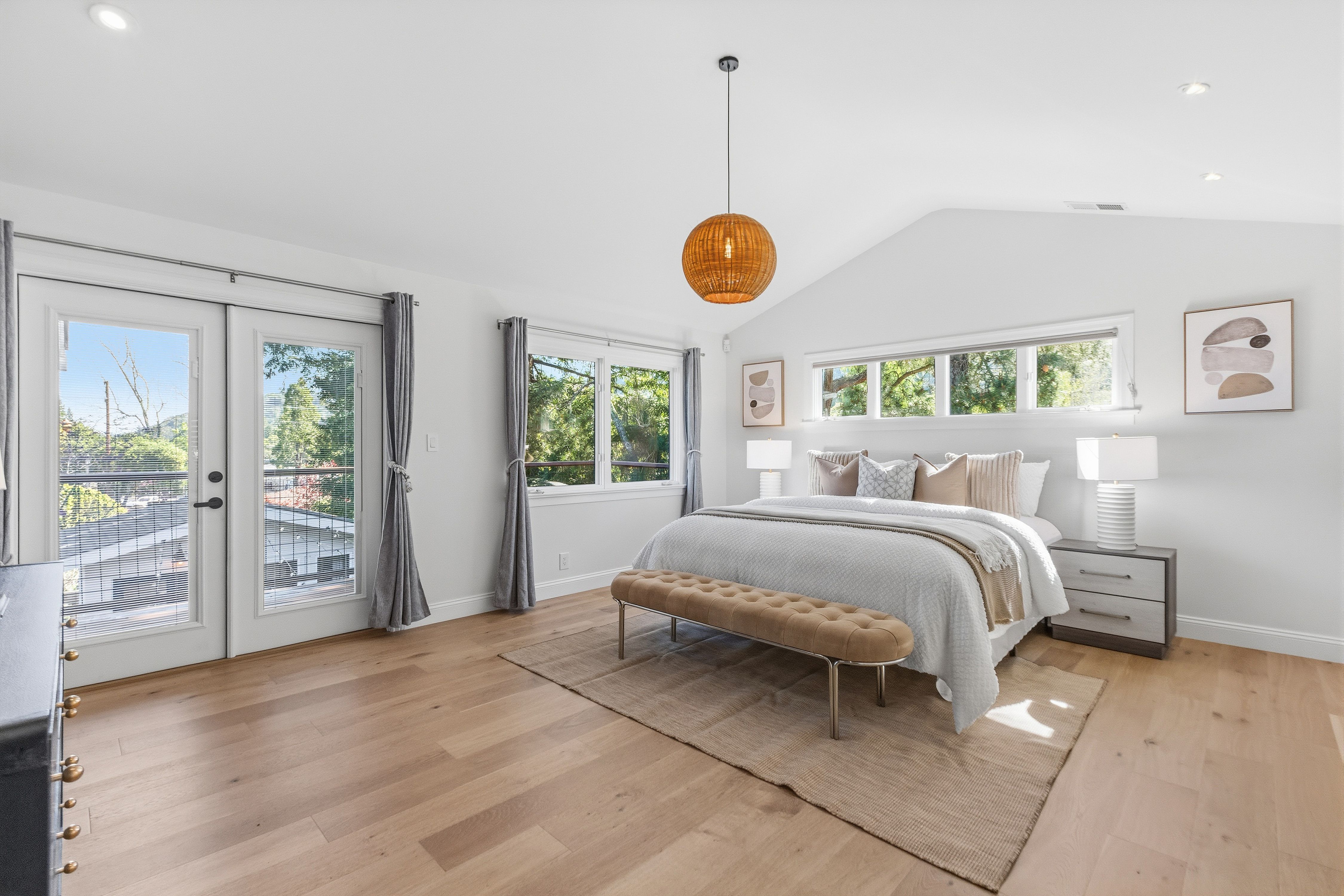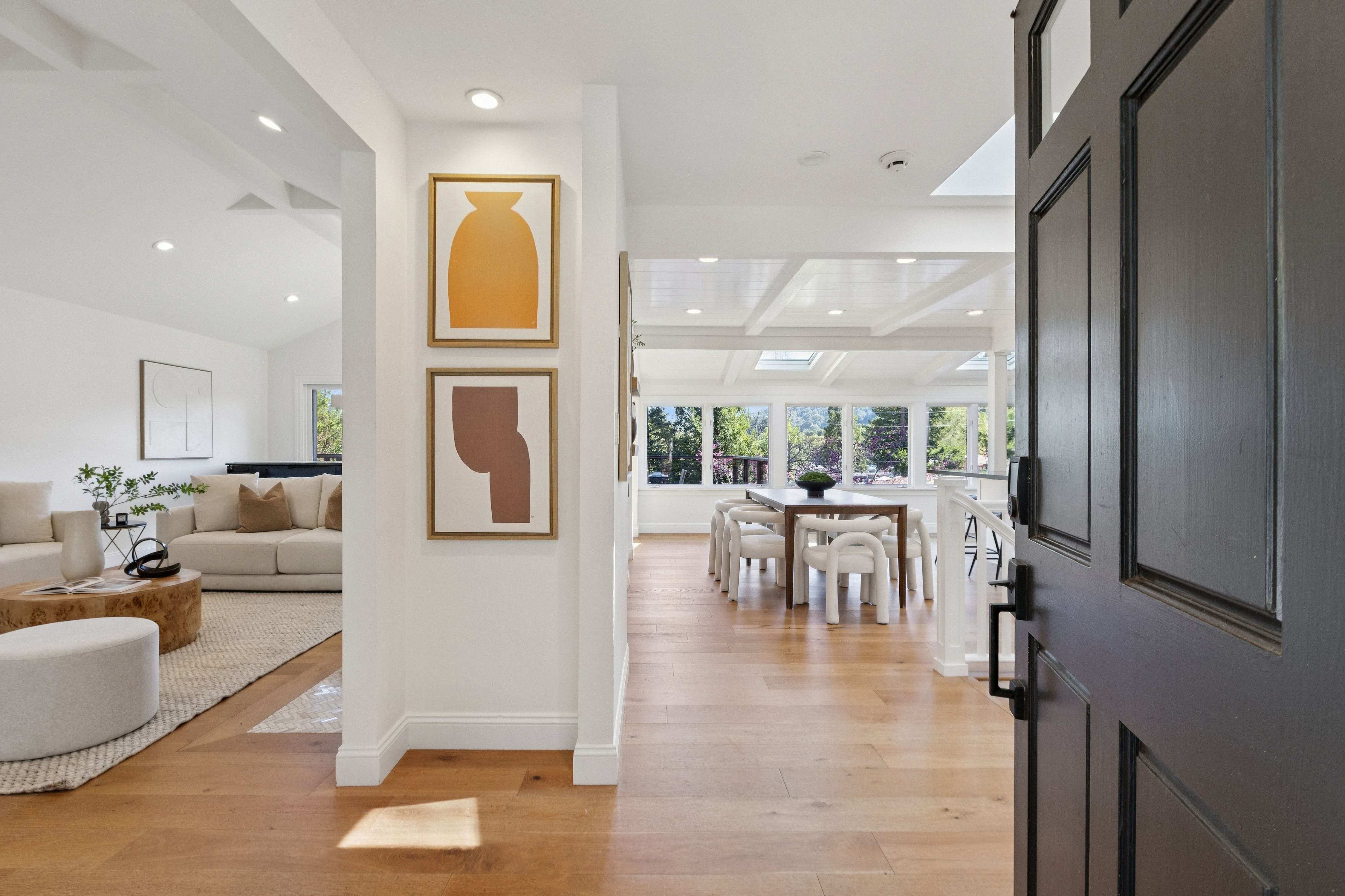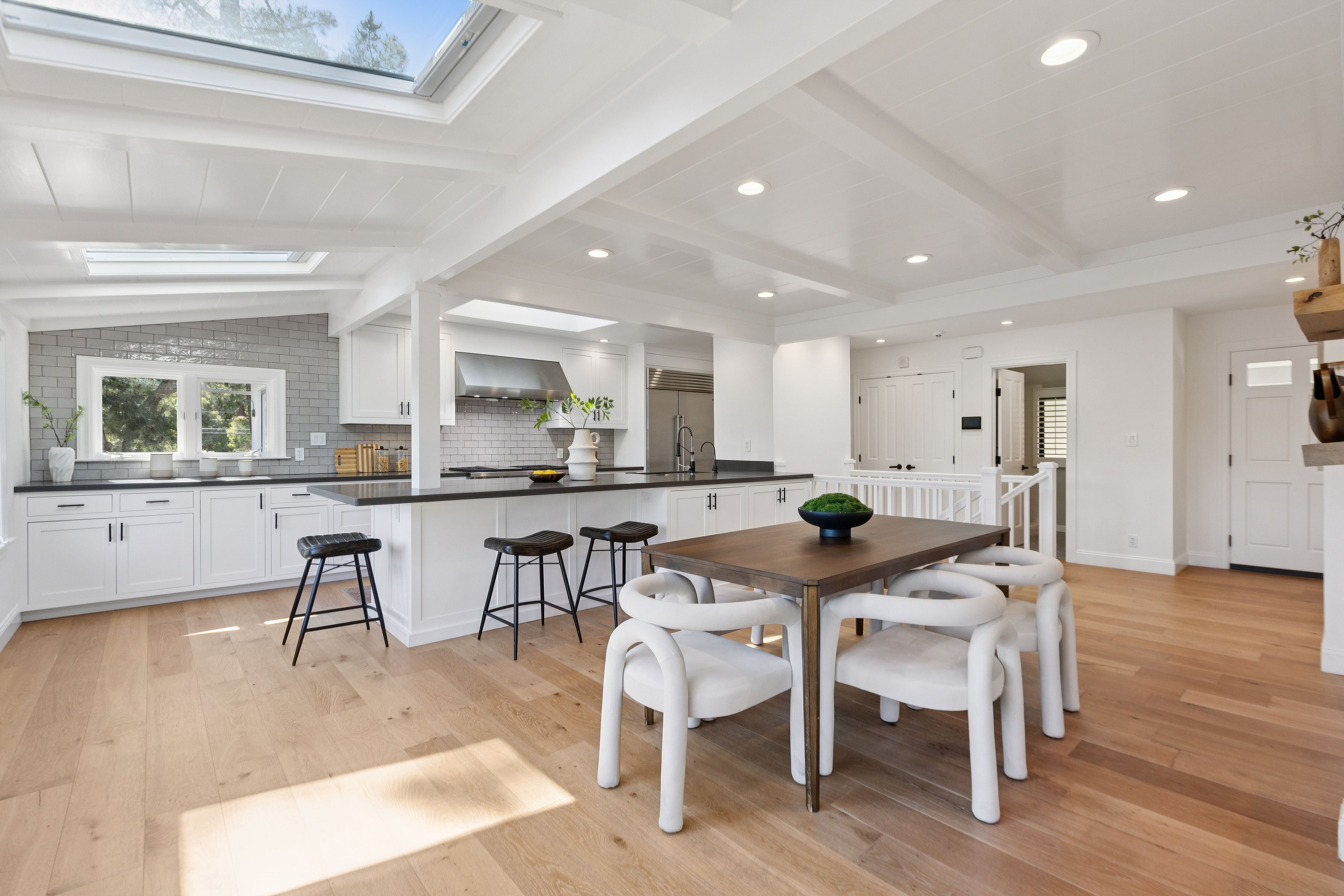 Set quietly in one of Orinda’s most desirable residential enclaves with close proximity to all three award winning public schools, this beautifully reimagined California Ranch style home offers an exceptional balance of refined living. The residence blends timeless character with modern systems, finishes, and amenities.Freshly painted and framed by stylish whitewashed brick, the home presents a welcoming presence from the moment of arrival. The front grounds were completely replanted and reseeded anchored by a magnificent historic oak cork tree whose sculptural form provides both shade and a sense of permanence. Automated irrigation and drip systems, ensure ease of maintenance while preserving the beauty of the landscape year-round. New Pella Impervia fiberglass windows in the front enhance both energy efficiency and architectural clarity while allowing natural light to fill the interior spaces.Inside, the home unfolds across approximately 2,789 square feet. Wide-plank engineered oak flooring runs throughout, fresh interior paint and carefully selected finishes that create a cohesive and calming environment. The kitchen serves as both a functional centerpiece and a place of gathering. Outfitted with a professional-grade Wolf range featuring double ovens, six burners, and integrated griddle, the space is equally suited for everyday meals or larger culinary pursuits. A Sub-Zero refrigerator, Bosch 800 Series panel-integrated dishwasher, and built-in Wolf microwave reflect a commitment to quality and performance. Ample cabinetry with integrated organizational systems provides exceptional storage, while expansive work surfaces and a large sink with filtered water ensure practical ease. The adjacent dining area introduces warmth and character through a distinctive brick accent wall and integrated bar area, complete with quartz countertop, shelving, and cabinet storage. Wall-to-wall sliding glass doors in the living room create a seamless transition to an expansive elevated deck overlooking the private rear yard and surrounding hillside. This elevated vantage point provides both visual openness and privacy. The living room itself is anchored by a mosaic tile fireplace and framed by custom floor-to-ceiling built-in shelving that offers both display and storage.The primary suite is a quiet retreat, defined by generous proportions, elevated ceilings, and French doors that open directly to a private deck. The walk-in closet offers ample storage, while the fully updated primary bath introduces spa-like elements through mosaic tile finishes, quartz surfaces, Kohler fixtures, skylight illumination, and an oversized jetted soaking tub designed for relaxation.Additional bedrooms provide flexibility for family, guests, or workspace, including a main-level bedroom equipped with a custom Murphy bed for a hybrid office/guest suite and three lower-level bedrooms featuring built-in shelving and direct access to the rear yard. Bathrooms throughout the home have been carefully remodeled with contemporary finishes, including quartz vanities, mosaic tile flooring, and tiled showers.The rear yard is designed for both leisure and utility. A six-person Jacuzzi hot tub surrounded by custom wood decking offers a peaceful place to unwind beneath the open sky. Raised planter beds, integrated with WiFi-controlled irrigation, provide opportunities for gardening while maintaining ease of care. A fully fenced perimeter ensures privacy and security, complemented by a gated dog run and drought-resistant landscaping.A detached 120-square-foot fully finished auxiliary structure offers exceptional flexibility as a home office, fitness studio, or creative workspace. Additional outdoor amenities include a bocce ball or horseshoe court.Set within a peaceful hillside setting yet steps from award-winning schools, Moraga Country Club, and commuter access, this property offers a rare combination of privacy, usability, and connection.