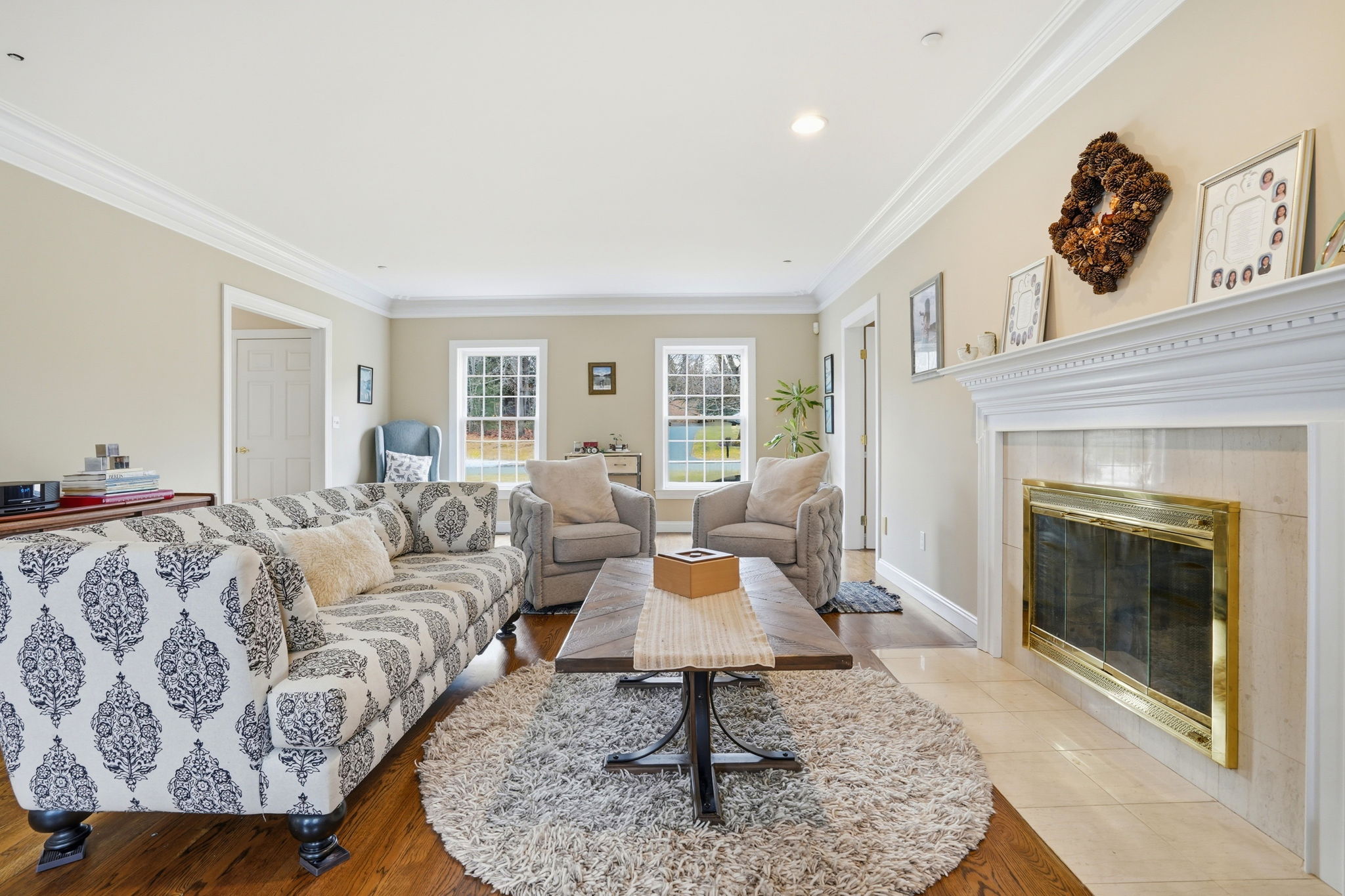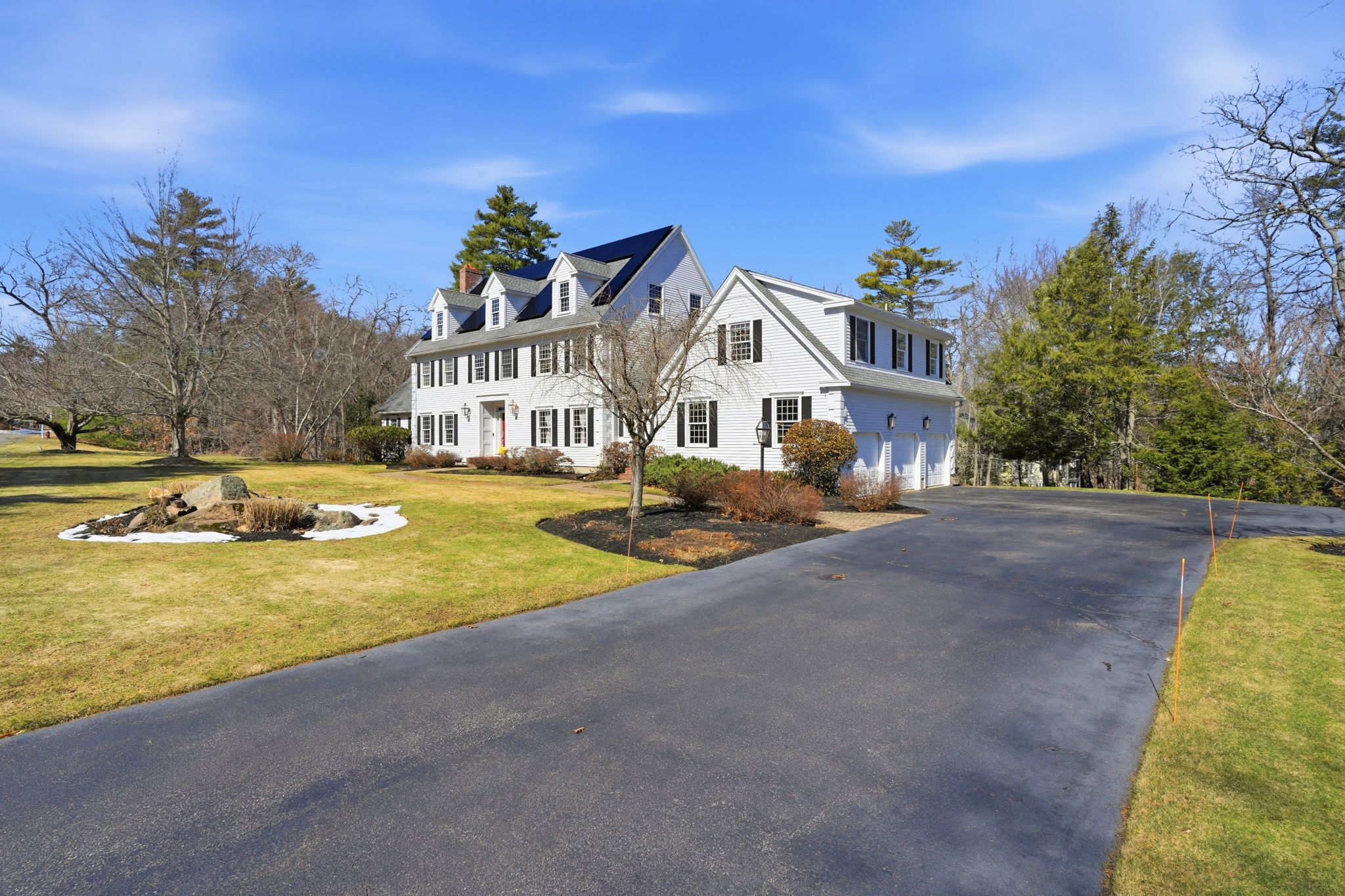 Set in the timeless charm of Wenham, this exceptional home blends classic elegance with modern luxury on nearly 2 private acres. A stately Colonial in an executive enclave, it features a grand marble foyer and thoughtfully designed living spaces throughout. The chef’s kitchen impresses with a 12’ island, high-end appliances, and opens seamlessly to a fireplaced family room with built-ins and wet bar—perfect for entertaining. Upstairs offers 4–5 bedrooms and 3 full baths, including a well-appointed guest suite and laundry room. The walkout lower level provides a flexible floor plan, ideal for a game room, den, or meditation and yoga room. Complete with a 3-car garage, this home offers refined living in one of the North Shore’s most sought-after settings.