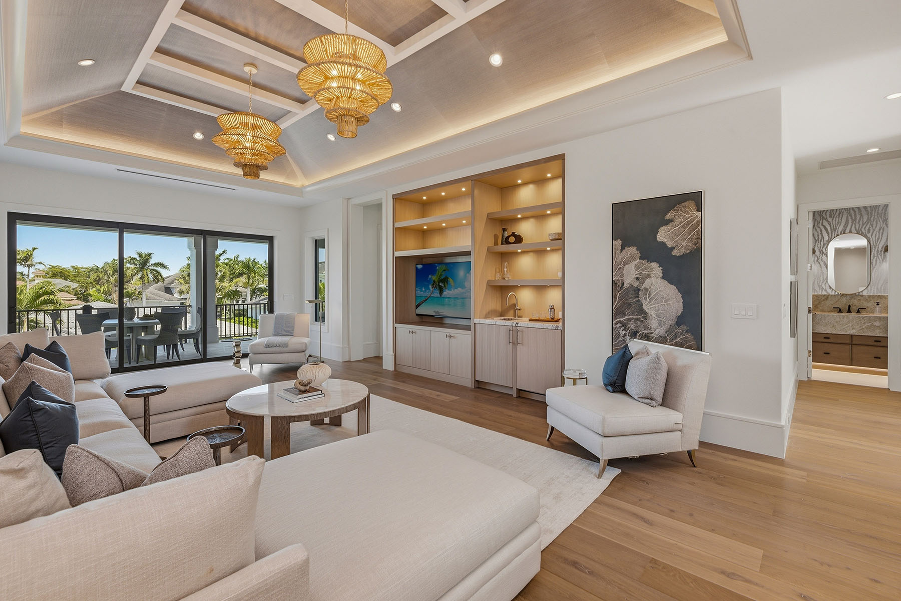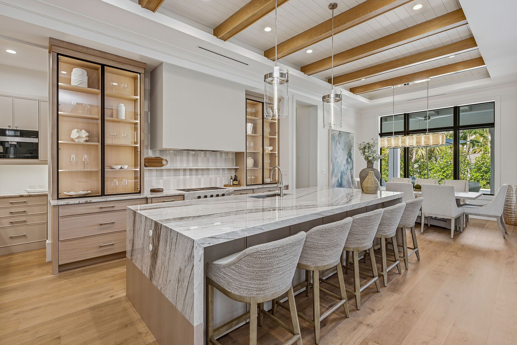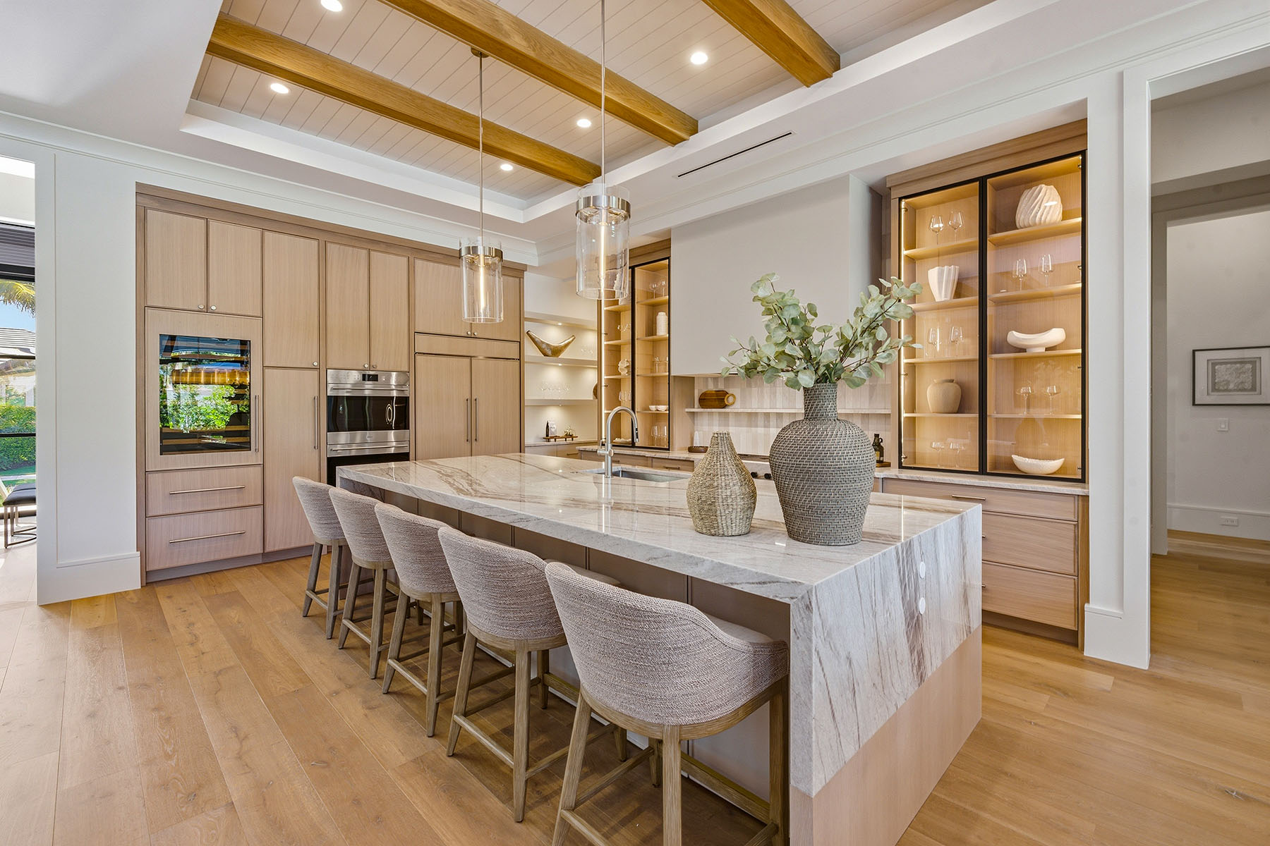One or more photo(s) has been virtually staged, AI generated or rendered. One or more photo(s) has been virtually staged, AI generated or rendered. Welcome to 529 Neapolitan Way, a newly constructed residence by Borelli Luxury Homes centered around gathering, hosting and coastal living in beautiful Park Shore. Offered furnished, this home is curated for immediate enjoyment, where natural light filters through expansive living areas, drawing attention to the central gathering spaces where conversation and connection take shape. The kitchen is designed as a functional workspace and a visual anchor, featuring waterfall-edge quartzite surfaces, warm oak cabinetry with metal and glass accents, and a full suite of Wolf and Sub-Zero appliances, including gas cooking. A dual-zone wine refrigerator and additional refrigeration drawers are seamlessly integrated, allowing for effortless hosting. Nearby, the living room is framed by a gas fireplace feature wall, while a glass-front, climate-controlled wine vault creates a striking focal point that invites discussion and display. The first-floor primary suite offers a private retreat that reflects the experience of a five-star hotel. The bedroom includes a dedicated sitting area, elevated ceiling heights and abundant natural light. The expansive en-suite bath is beautifully finished with refined materials and a layout designed for daily comfort, complemented by two custom walk-in closets that provide scale and organization. Guest accommodations are arranged to provide comfort and privacy across two levels. Two guest suites are positioned on the main floor, while the second level introduces an additional layer of livability with two more suites and a spacious social room. Complete with a wet bar and access to a balcony, this upper-level retreat offers a secondary gathering space that transitions easily to the whims of its guests. Outdoor living extends the narrative of the home, where the covered lanai becomes a natural extension of the interior. A gas fireplace and full summer kitchen set the stage for open-air dining and conversation, while the large pool and spa are framed by a landscaped backdrop designed to enhance privacy. Positioned within Park Shore, this residence includes access to the private beach park and is near the waterfront shops and dining of Venetian Village. For those seeking a boating lifestyle, eligibility for boat slip ownership or lease at the Park Shore Yacht Club offers an additional layer of access to the Gulf. A three-car garage, private elevator and full-home generator complete the offering. This residence presents a cohesive living experience, where architecture, design and location come together to support a lifestyle defined by connection, comfort and coastal access.