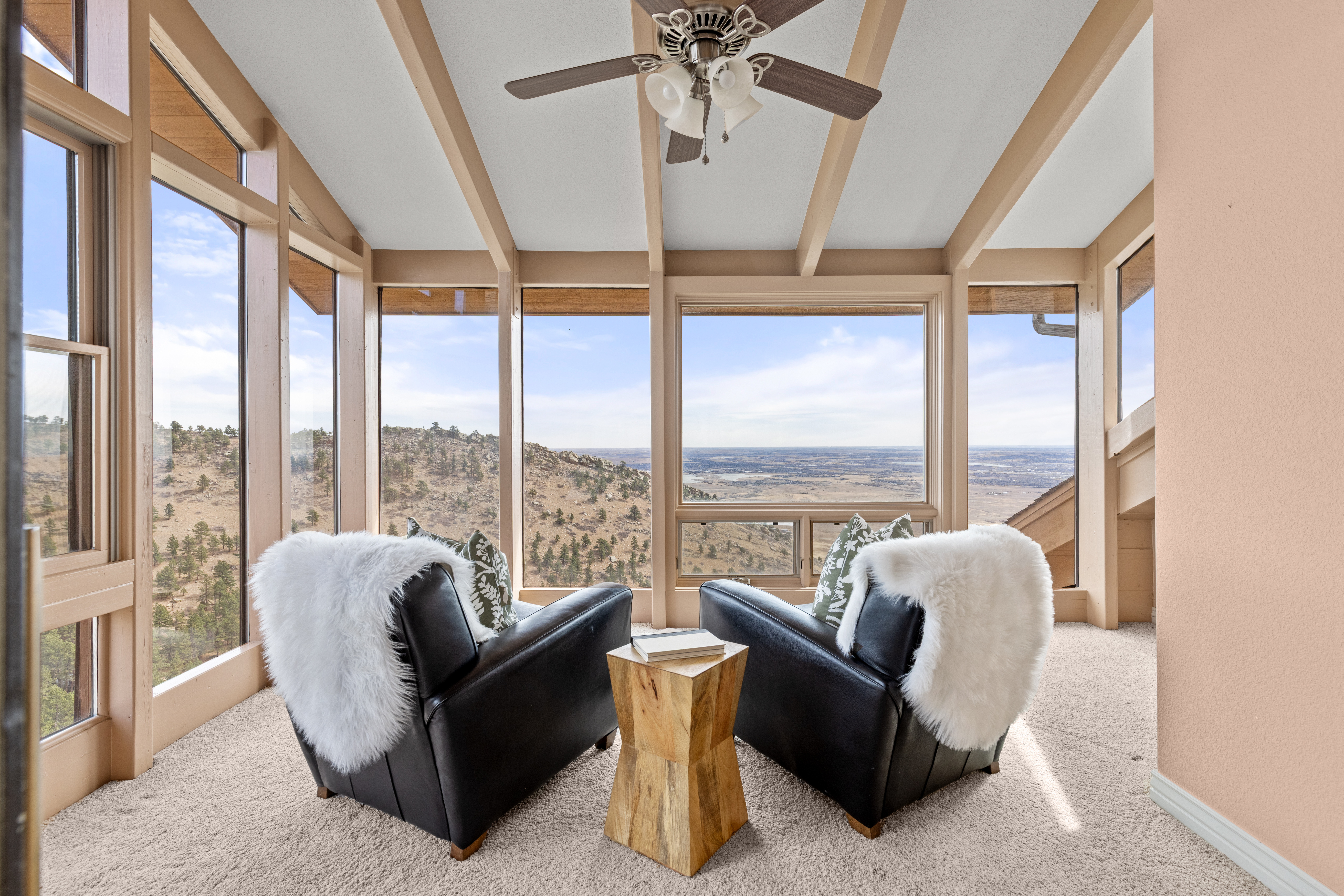 Welcome to 6183 Red Hill Road! A stunning mountain retreat where privacy, design, and sustainability converge and situated just minutes from Broadway. Integrated into the surrounding landscape, this 4,238-square-foot residence offers 4 bedrooms, 4 bathrooms, and a dedicated office space, all set against a dramatic backdrop of unobstructed views. The main level boasts vaulted ceilings and a functional layout with defined living, dining and kitchen areas and also a bonus sunroom that blurs the line between indoor and outdoor living. There are two spacious primary suites connected by elevator and ideal for multi-generational/communal living or hosting guests in comfort and privacy. A private hot tub room awaits off of the upper primary where you can unwind while taking in the panoramic scenery. The 2nd story lower level boasts 2 additional bedrooms, a shared full bath, and a generous recreation room or flex space with natural rock outcroppings and new engineered hardwood floors. Multiple decks and patios extend the living spaces outward, offering countless vantage points to enjoy the surrounding beauty and tranquility. An additional elevator from the garage to the 3rd floor provides extra convenience when having to bring things upstairs. Designed with efficiency and ease of mind, the home includes radiant heated floors, a Generac 22kw backup generator, owned solar, and the 2 elevators mentioned above delivering both comfort and long-term sustainability. A rare offering that blends luxury with mountain charm-6183 Red Hill Road is more than a home, it's an elevated Colorado lifestyle. Come make this home your own today!