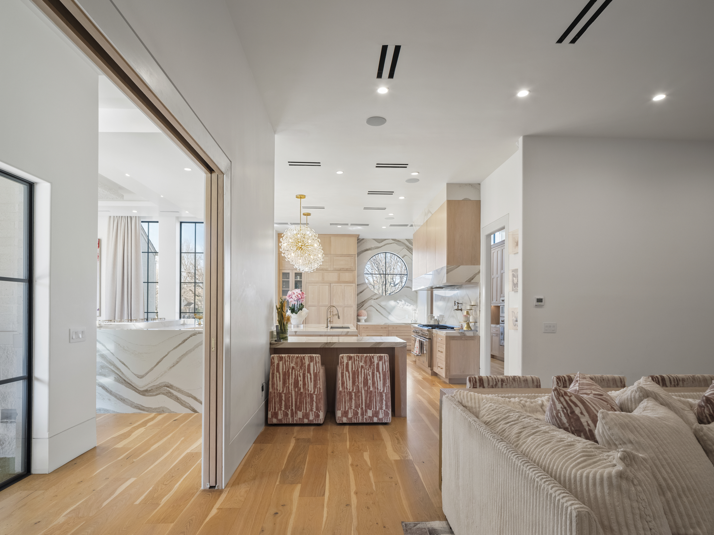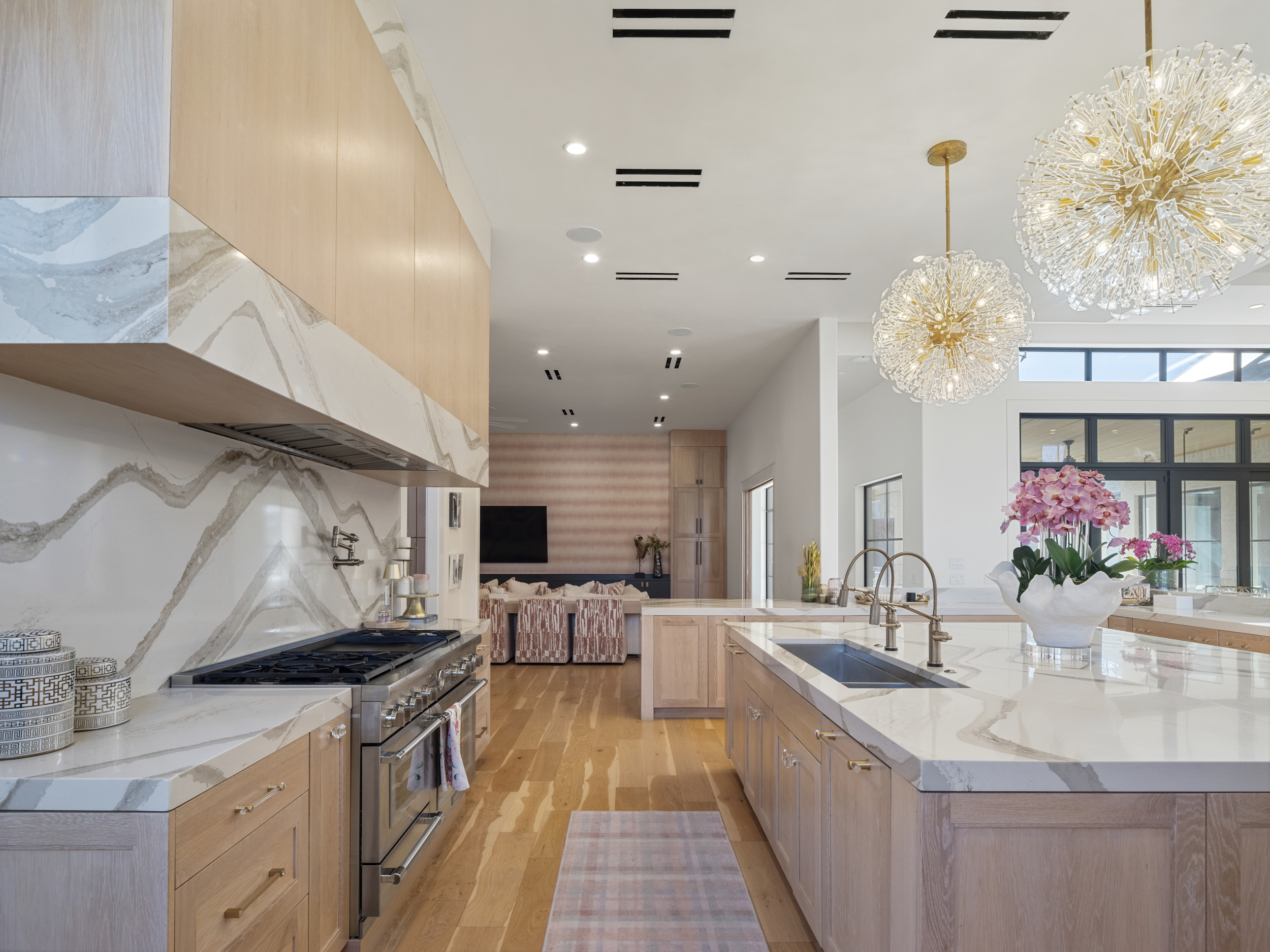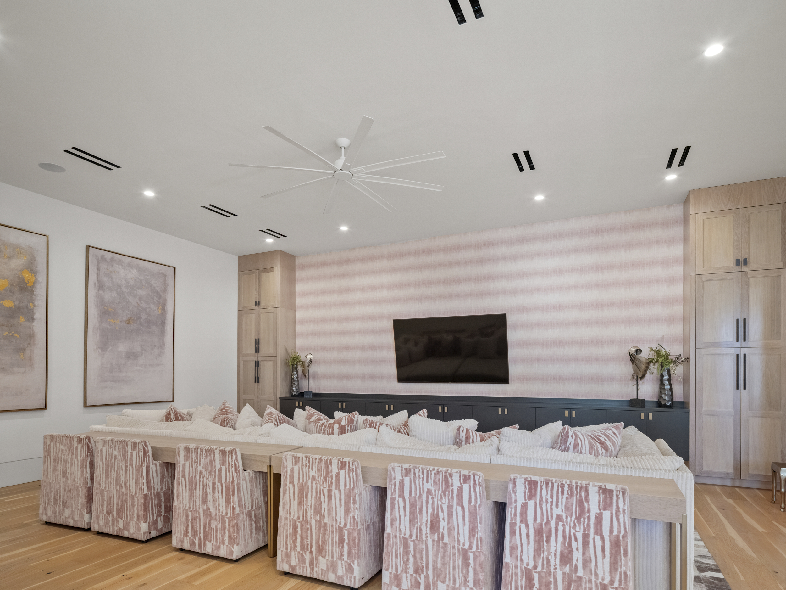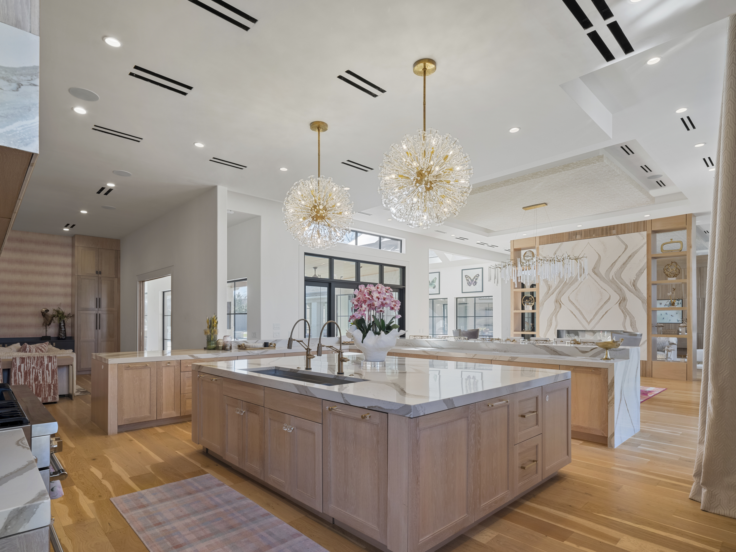 This is the one that stops you in your tracks.Spanning 8,649 square feet — all on a single level — this home delivers the scale of an estate with the effortless flow of a modern retreat. From the moment you step inside, it feels less like a house and more like a five-star hotel. Clean lines, inset baseboards, recessed vents, and top-of-the-line finishes reflect an uncompromising level of craftsmanship rarely found at this scale.The design is sleek and contemporary with warm transitional touches, striking the perfect balance between sophistication and comfort. Floor-to-ceiling windows frame the courtyard-style backyard, flooding the interior with natural light and creating seamless indoor-outdoor living throughout.The heart of the home is a showpiece kitchen designed for both everyday living and serious entertaining. An oversized quartz island anchors the space, complemented by a professional-grade six-burner gas range and a Sub-Zero refrigerator. A full-length butler’s pantry runs the entire span of the kitchen — complete with its own additional Sub-Zero — offering incredible storage, prep space, and functionality without compromising the clean, streamlined aesthetic.The layout is as thoughtful as it is impressive. Five true bedrooms — each with its own ensuite bath and walk-in closet — provide privacy and comfort for everyone. An oversized executive office creates a quiet, dedicated workspace, and a fully equipped home gym brings wellness home.Outside, the resort-level experience continues.The zero-maintenance backyard features premium turf, a stunning pool with an expansive sun deck, a half basketball court, and an in-ground trampoline — designed for entertaining, play, and effortless enjoyment year-round.A six-car garage completes the estate, delivering rare functionality to match the home’s scale and style.Single-story. Meticulously detailed. Truly exceptional.