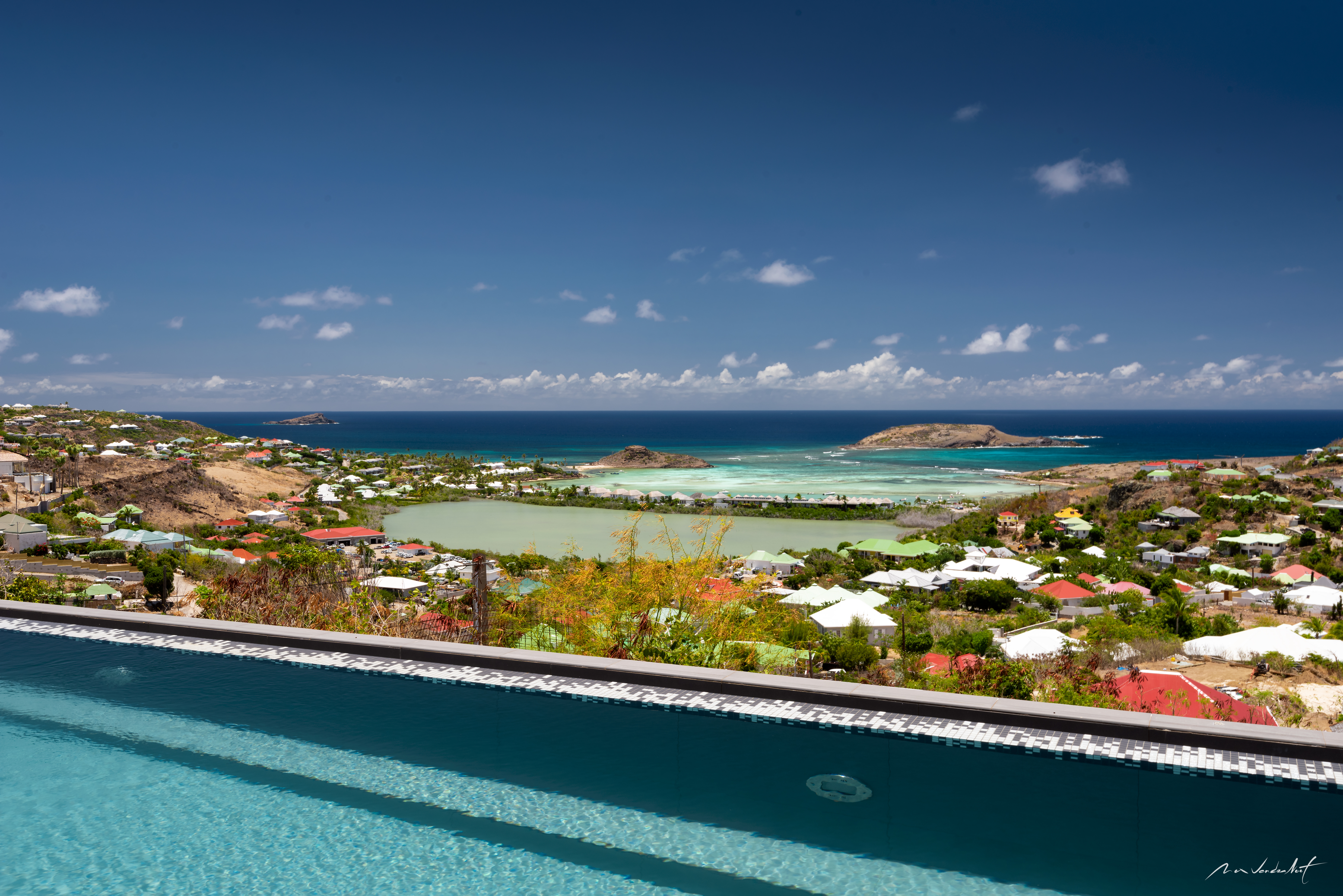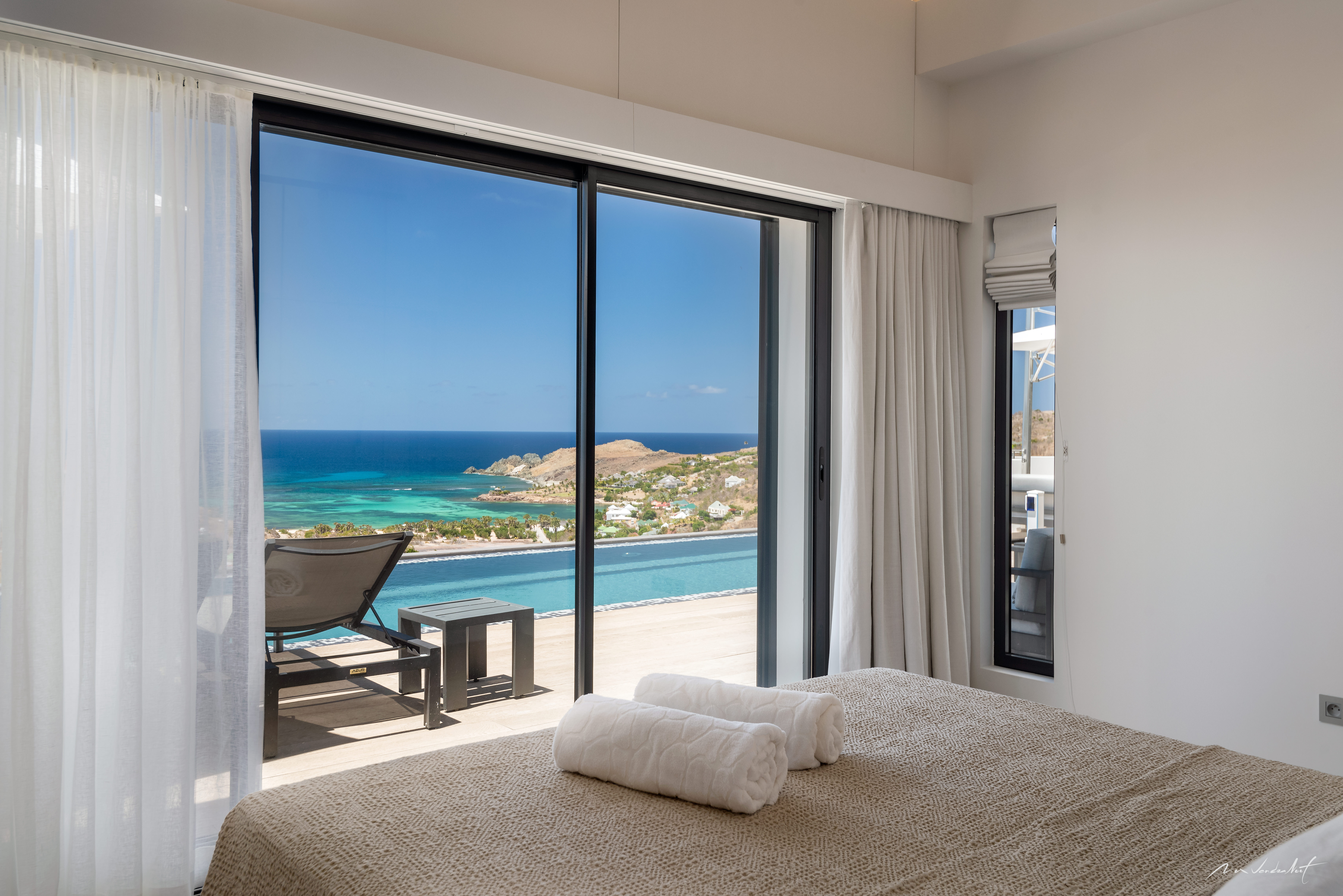 Perched above the turquoise lagoon of Grand Cul-de-Sac, Villa Iris is a refined three-bedroom retreat that captures the essence of contemporary Caribbean luxury. This elegant property offers sweeping panoramic views over the lagoon, and the open ocean beyond, creating a breathtaking backdrop.