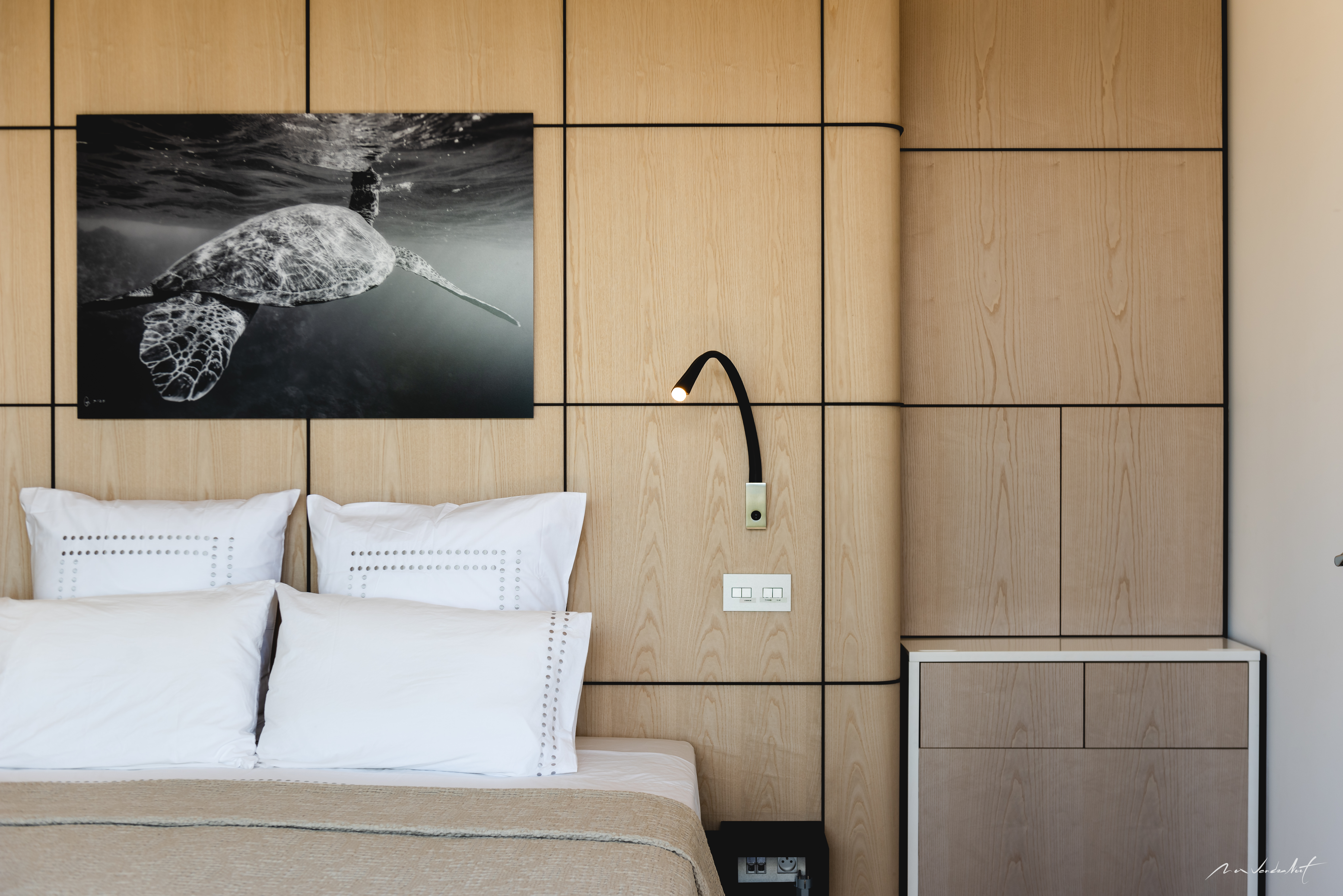 Villa Iris offers three air-conditioned king bedrooms, each with its own en-suite bathroom. Two suites are located on either side of the main living area with direct terrace access, while the third, set on a lower level, offers privcy and a unique perspective with a window into the pool above.