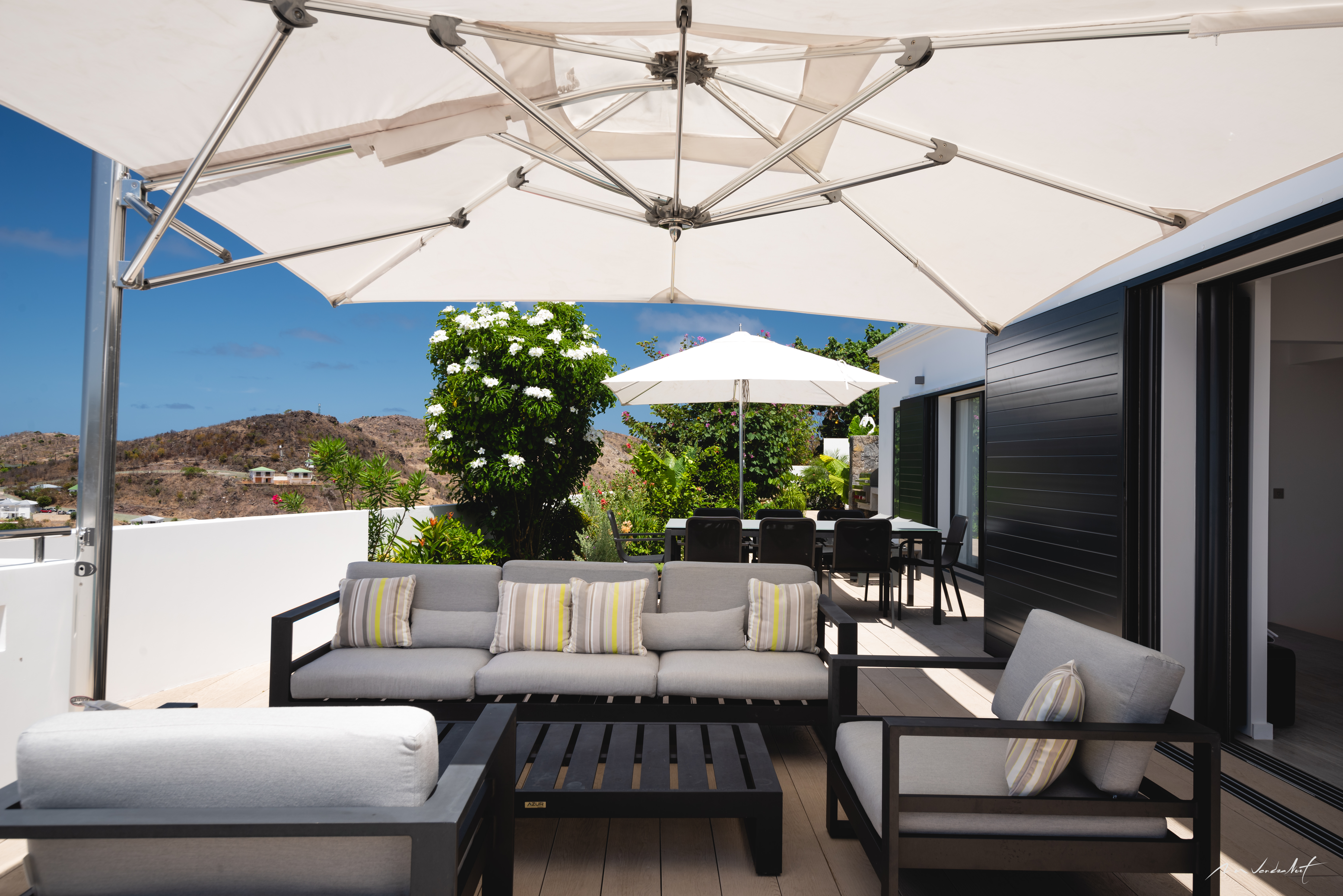 Additional amenities include a private cinema room and fitness area, enhancing both comfort and entertainment. Blending modern design with natural surroundings, Villa Iris is the ideal place to enjoy life on St. Barth.