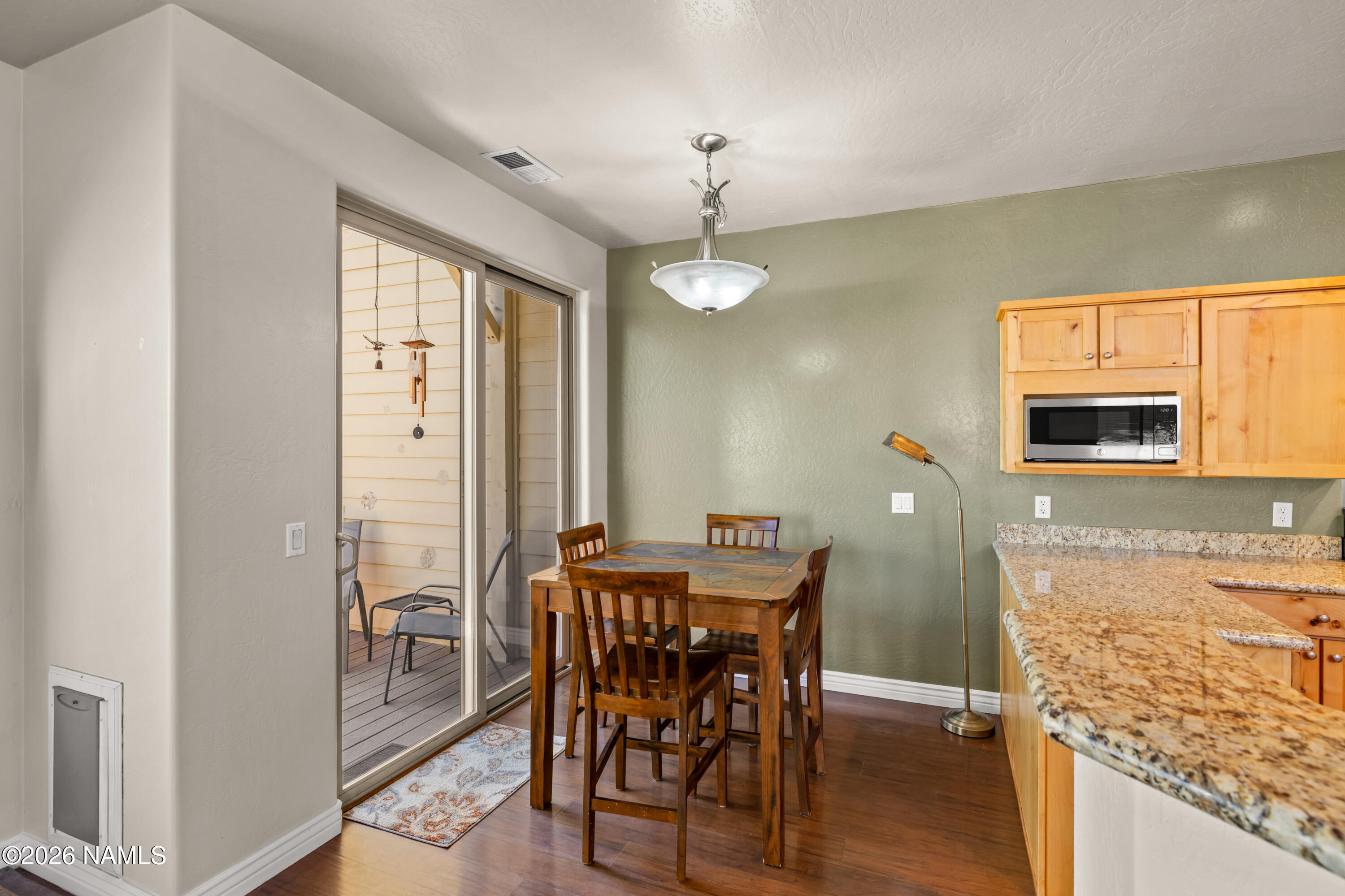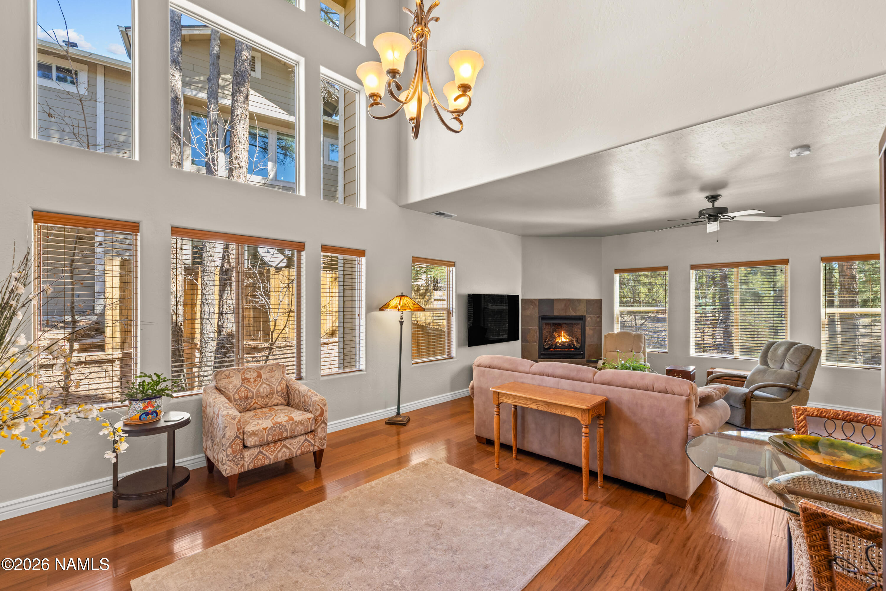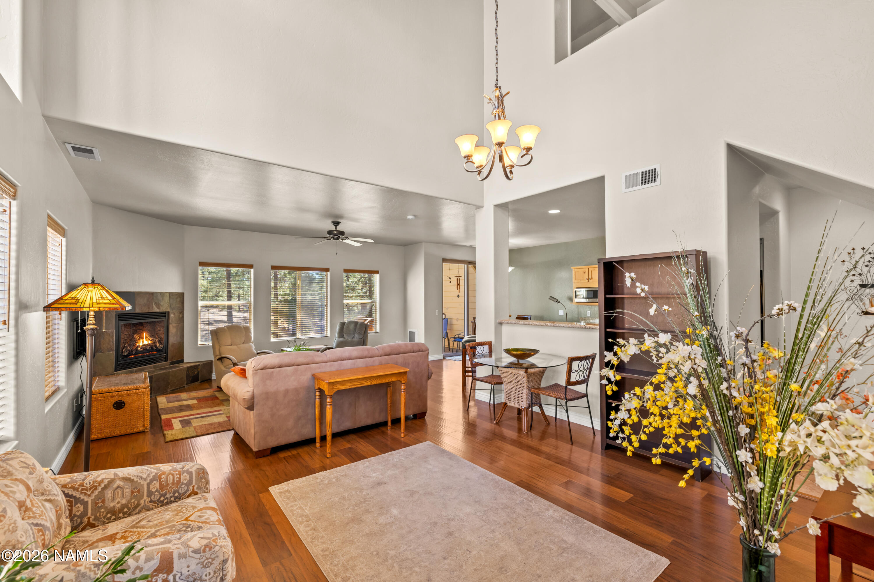 Do you dream of a welcoming, open, light-filled mountain oasis in the cool pines of Flagstaff, centrally located near Flagstaff's best amenities, that feels like you are in your own private, magical forest? 1152 Flowing Springs is your dream come true! Walk into the artrium-style entryway with soaring ceilings and clerestory windows that fill the home with natural light. Enjoy views of the lush pines and your landscaped garden through the greatroom windows. It's like being tucked away in the forest! Cook and create to your heart's content in the spacious, open kitchen. Indoor-outdoor living is effortless here. Dine, relax, entertain, garden, and play in the uniquely large fenced yard, thoughtfully curated and privately set apart from the outside world by a beautiful berm. This impeccabl maintained 3-bedroom, 2.5-bath townhome is move-in ready, with the inspection completed and repairs already made. The beauty and privacy of the large forested yard in a low-maintenance, centrally located Flagstaff home is a rare find! Please note: some photos are digitally staged.