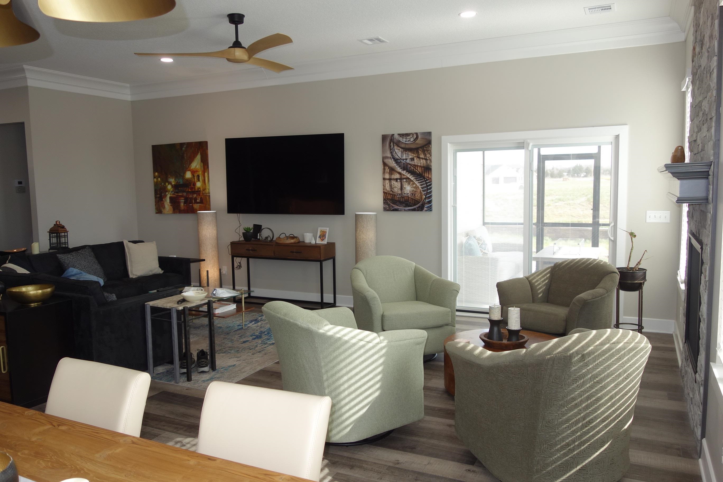This beautiful 4 bedroom - 3 Bathroom home is just over a year old. The home has 2659 sq ft of living space. 2069 sq ft on the main floor and 590 sq ft in the bedroom/bonus room above the garage. As you enter the home, the open concept boasts 10 ft ceilings - Crown Molding throughout - Living Room area - Hearth area with a gas fireplace (that open out to a screened-in patio) - Spacious Dining area. The 14 ft and 14 ft Kitchen area has it all. It has upgraded cabinets - Granite Counters - Top of the line GE Cafe Serial Appliances - Coffee Bar - Large Pantry/Storm Room - Large Island - Gas Range Cook Top - Built-In Oven and Microwave - abundance of storage. Next is the Main Bedroom. It has 10ft ceilings with crown moldings - Amazing main bath (10'0" x 14'6") with tile heated floors - Roll-In shower - 2 Large vanities with double sinks. Then it flows into the main closet (9'0" x 14'0") - then the laundry room - then the drop zone next to the garage entrance. The additional 2 bedrooms on the main floor are a good size with spacious closets. The bedroom on the upper level opens up numerous options. The room is (18'2" x 22'0") with 10'0" ceilings. This could be a second bedroom suite - studio - play room - etc. This home is a must see. Priced below market value. Call me for your private showing