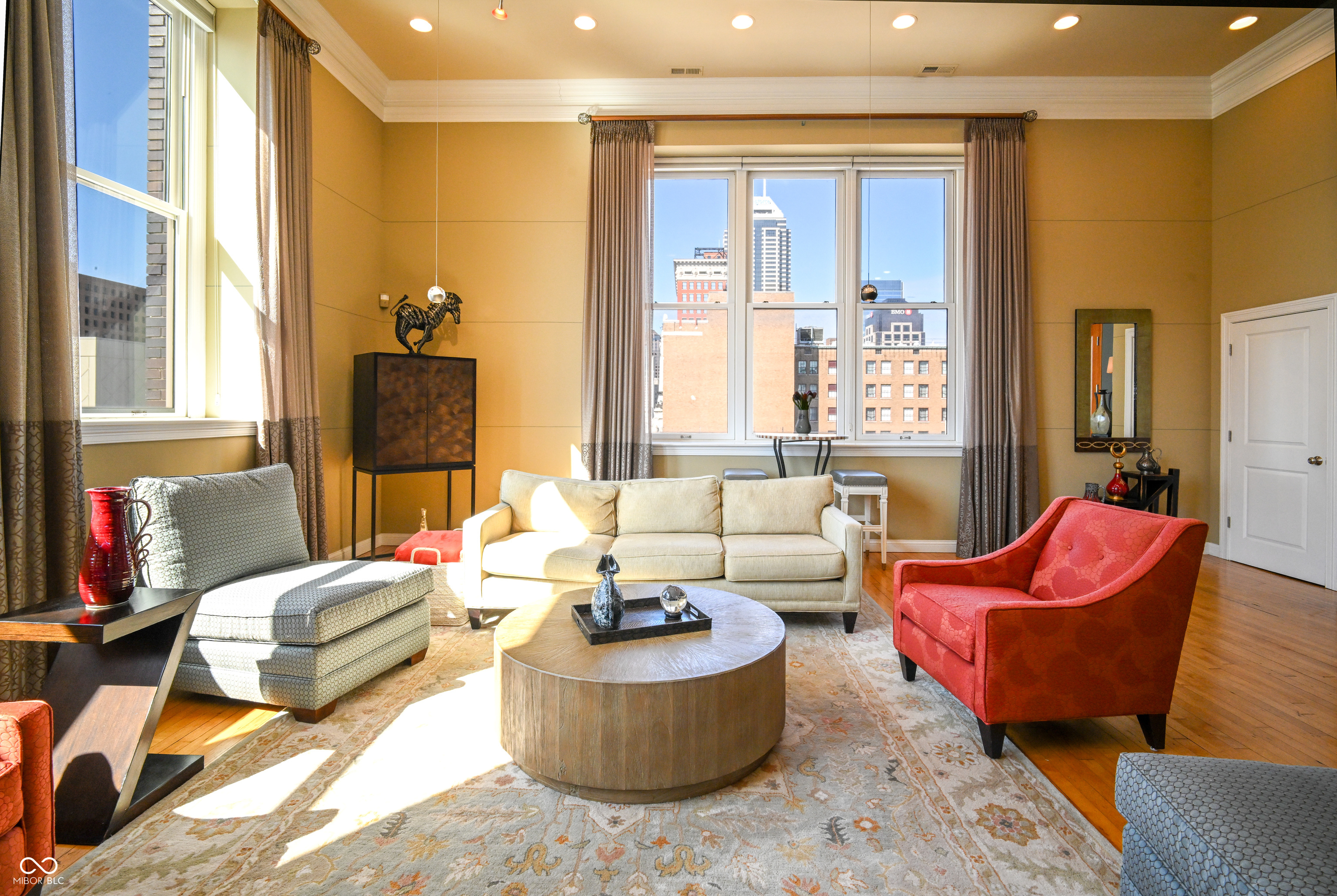 Experience elevated downtown living in this rare top-floor penthouse condo (Unit 601) offering over 2,000 sq ft of single-level luxury in the heart of Indianapolis. One of only six exclusive units on the floor, this northwest corner residence delivers unmatched privacy, panoramic sunset views, and front-row access to the city's most iconic moments. Soaring 14-foot ceilings and expansive windows flood the space with natural light, creating a true urban showcase. Enjoy breathtaking skyline views-from July 4th fireworks right from your living room to glimpses of the Indianapolis Monument-and direct sightlines to the ever-changing visuals on the JW Marriott. From the massive NCAA tournament bracket to iconic displays like the Indy 500 pole sitter, Super Bowl graphics, and even Taylor Swift's Eras Tour wrap, your windows become a living canvas of Indianapolis culture and events. Designed for both entertaining and everyday living, the gourmet kitchen features Viking appliances, a rare Wolf indoor grill burner, and a breakfast bar that flows seamlessly into the open-concept living area. The home offers two generously sized bedrooms, each providing ample space rarely found in urban condos. In addition, a versatile flex space is perfect for a library, work-from-home office, or can easily be converted into a third bedroom to suit your needs. The ultimate urban lifestyle-just moments from Gainbridge Fieldhouse, top restaurants, nightlife, and year-round events. This secure building offers controlled access with doorbell entry, plus the convenience of three deeded underground parking spaces and a private storage area-an exceptional find downtown. **** PRO Tip: Take advantage of built-in event parking for your guests during major downtown events. If you've been waiting for a true penthouse experience with space, views, and walkability-this is it.